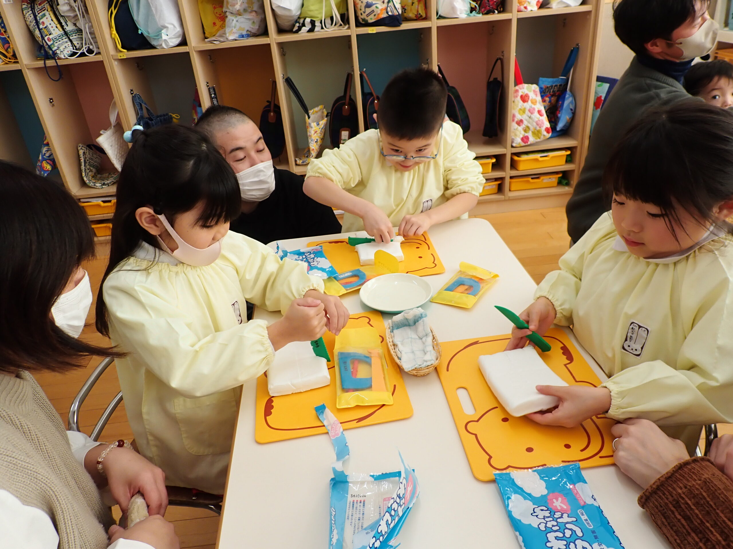 年長組は「卒園記念製作~6歳のぼくのかお・わたしのかお~」を製作しました。紙粘土で形にするのは難しかったけどお家の人とどう作るか作戦会議!!さすが年長さん!アイディアがたくさん詰まった「自分のかお」ができました。年長さんは製作の最後の仕上げをして素敵な作品に仕上げますのでお楽しみに😊