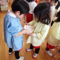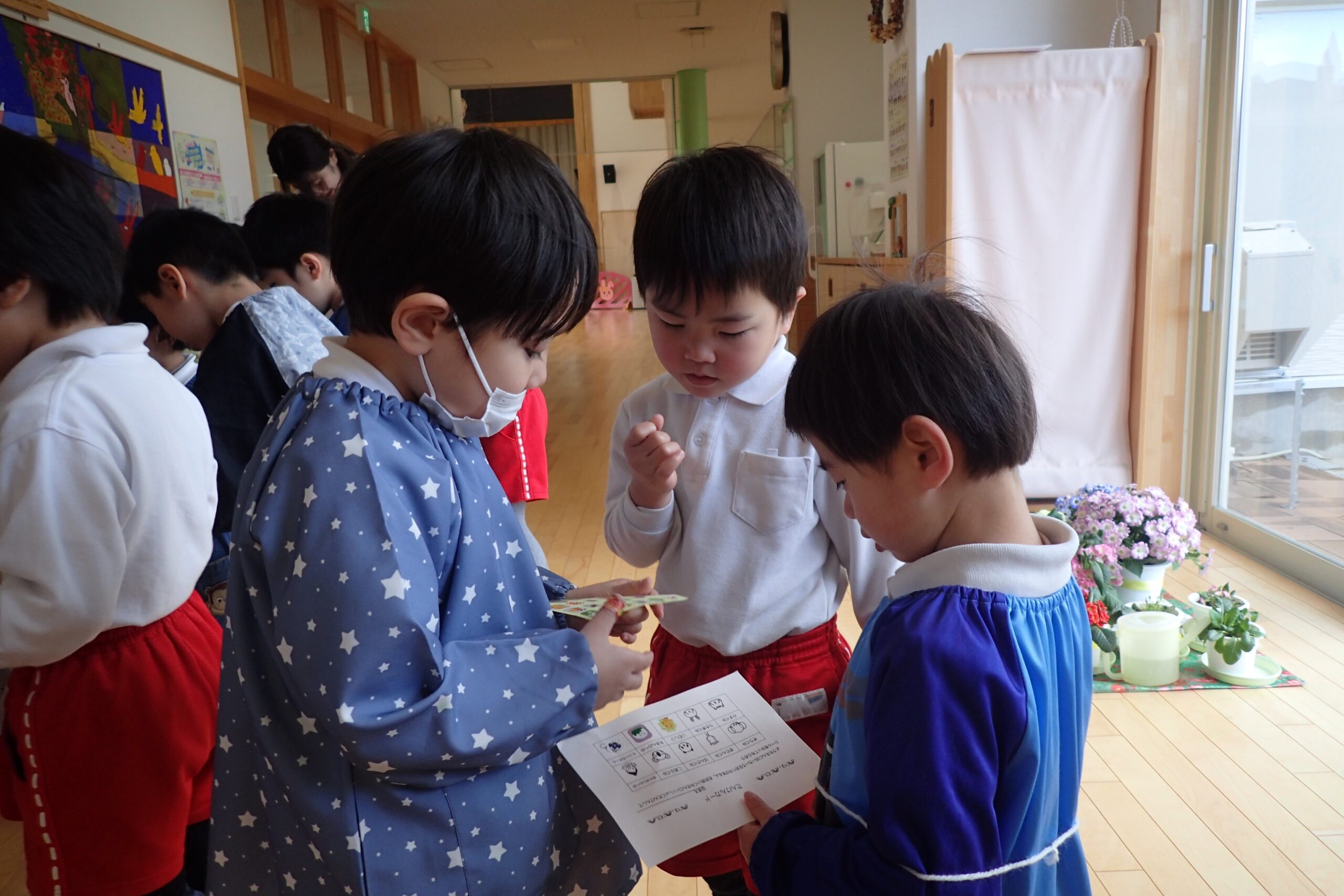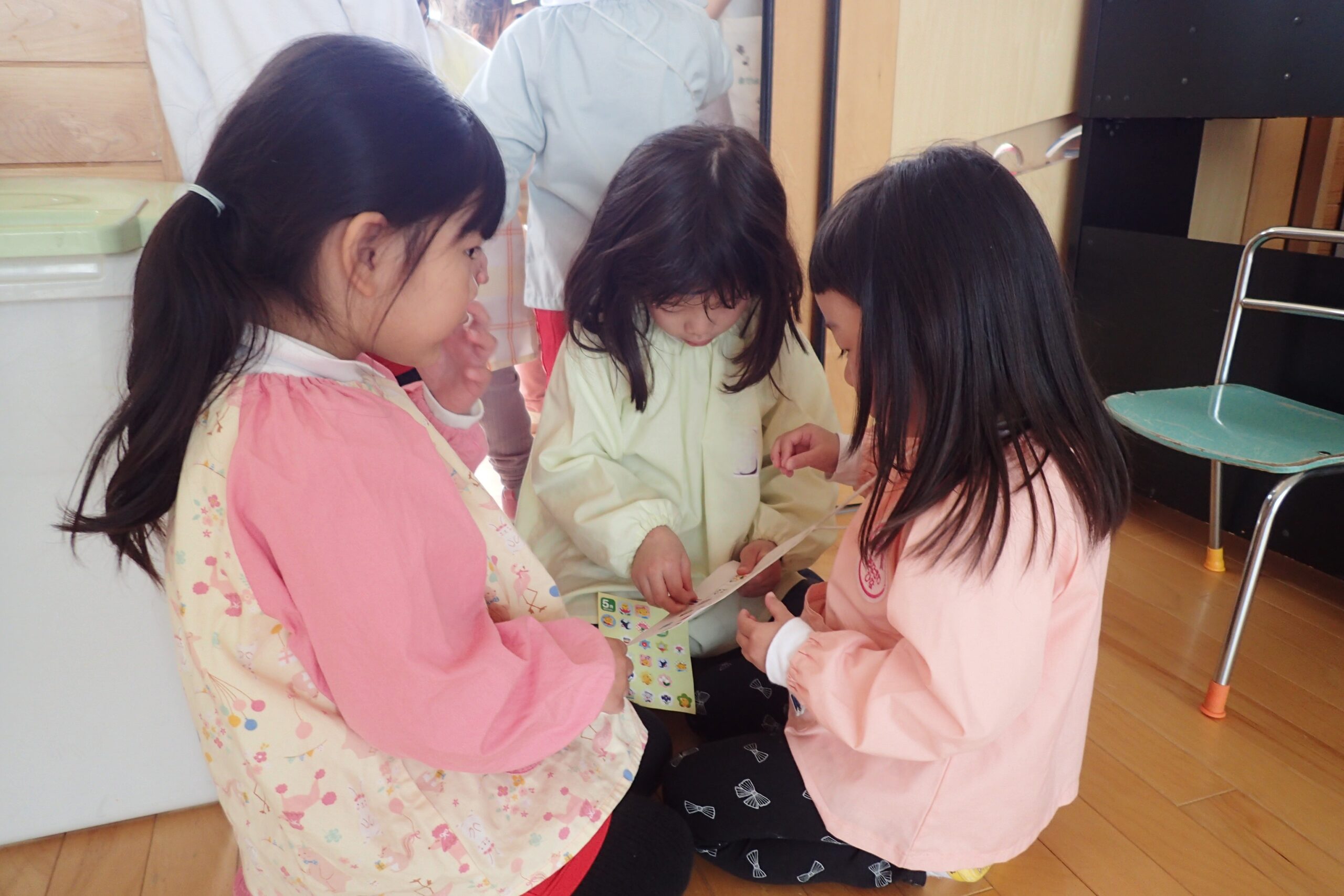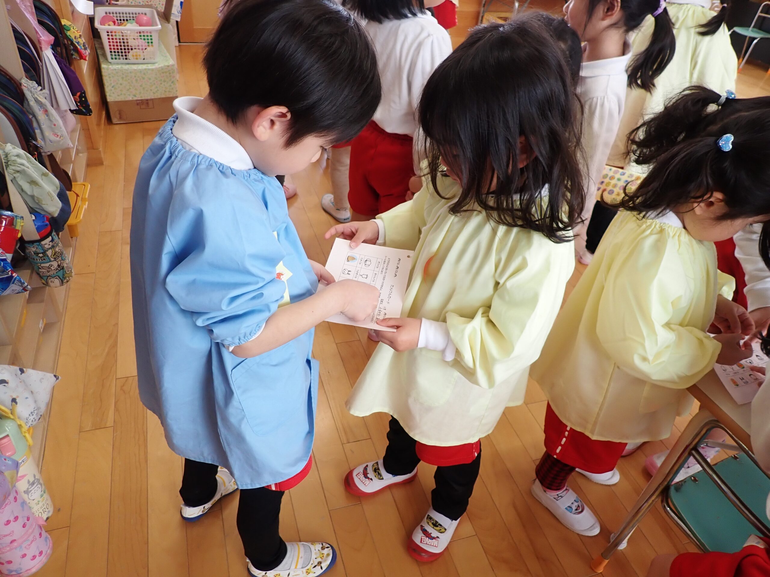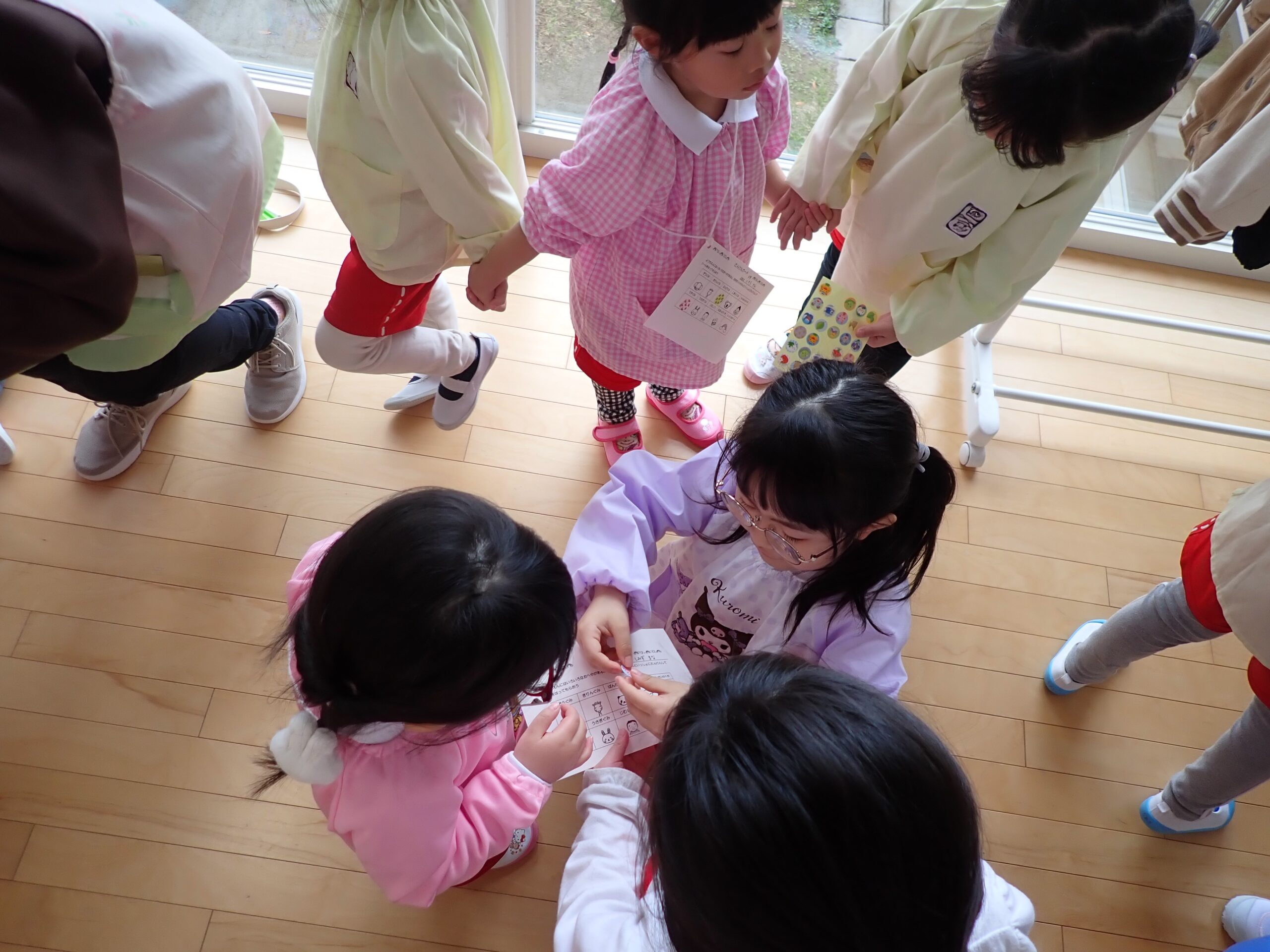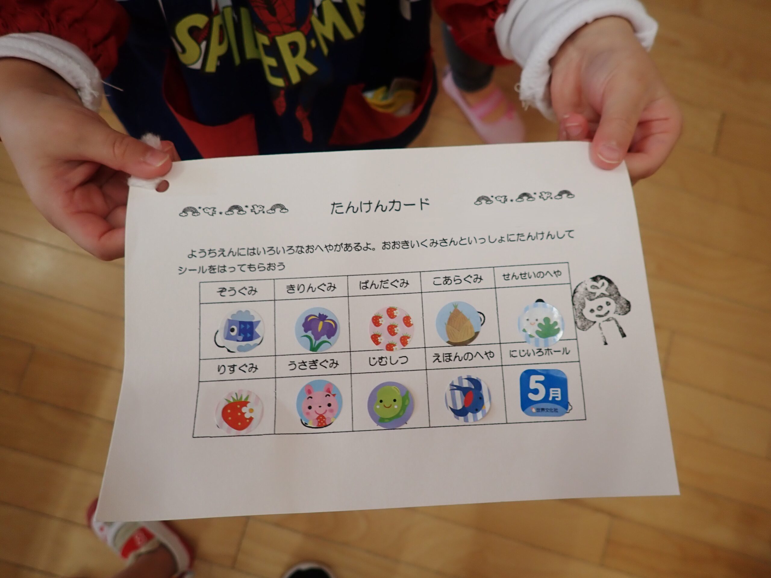 「たんけんカード」にシールをたくさん集め、こども園探検は無事終了!!