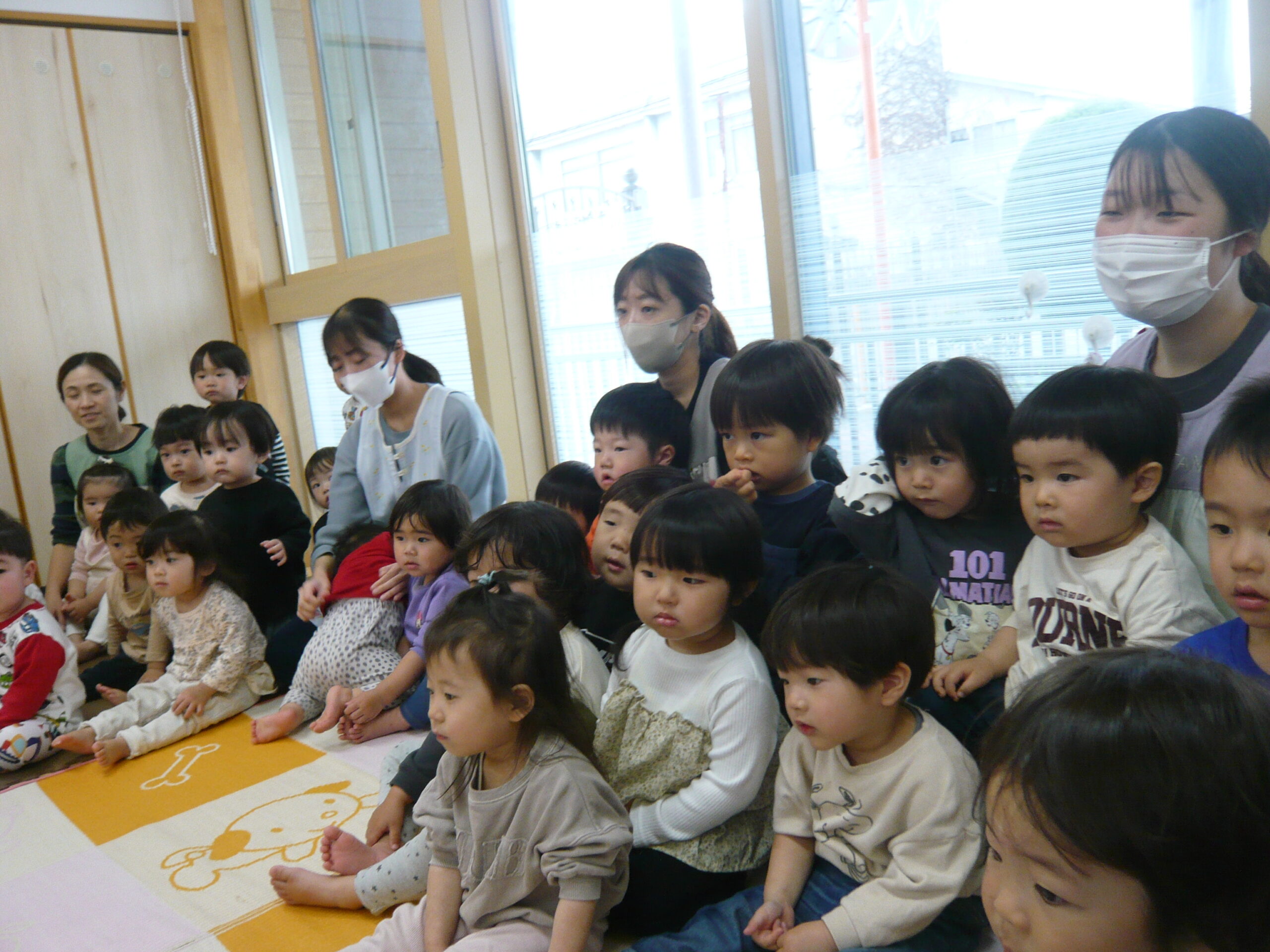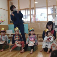 2025.04.28 保育園部 4月 お誕生会 4月23日(水)に4月生まれのお友達の誕生会をしました☆ つばめ組の保育室に保育部のお友達全員が集まり、歌を歌ったり、「おめでとう♪」と拍手をしたりしながら、4名のお友達をお祝いしました♡ また、先生からもお祝いのプレゼントとして、楽しい出し物も見せてもらいました♬ 4月生まれのお友達お誕生おめでとうございます♡ 5月はどんな誕生会になるのかな?楽しみですね☆ ※4月生まれのお友達が会に参加している様子をアルバムにアップしましたのでぜひご覧ください。 一覧へ戻る