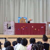 子ども達が楽しみにしていた指人形劇が行われました!今回のお話は”3匹のこぶた“🐷🐺