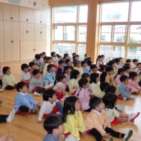 劇にちなんで、始まる前にみんなで一緒に3匹のこぶたの手遊びをしましたよ☻