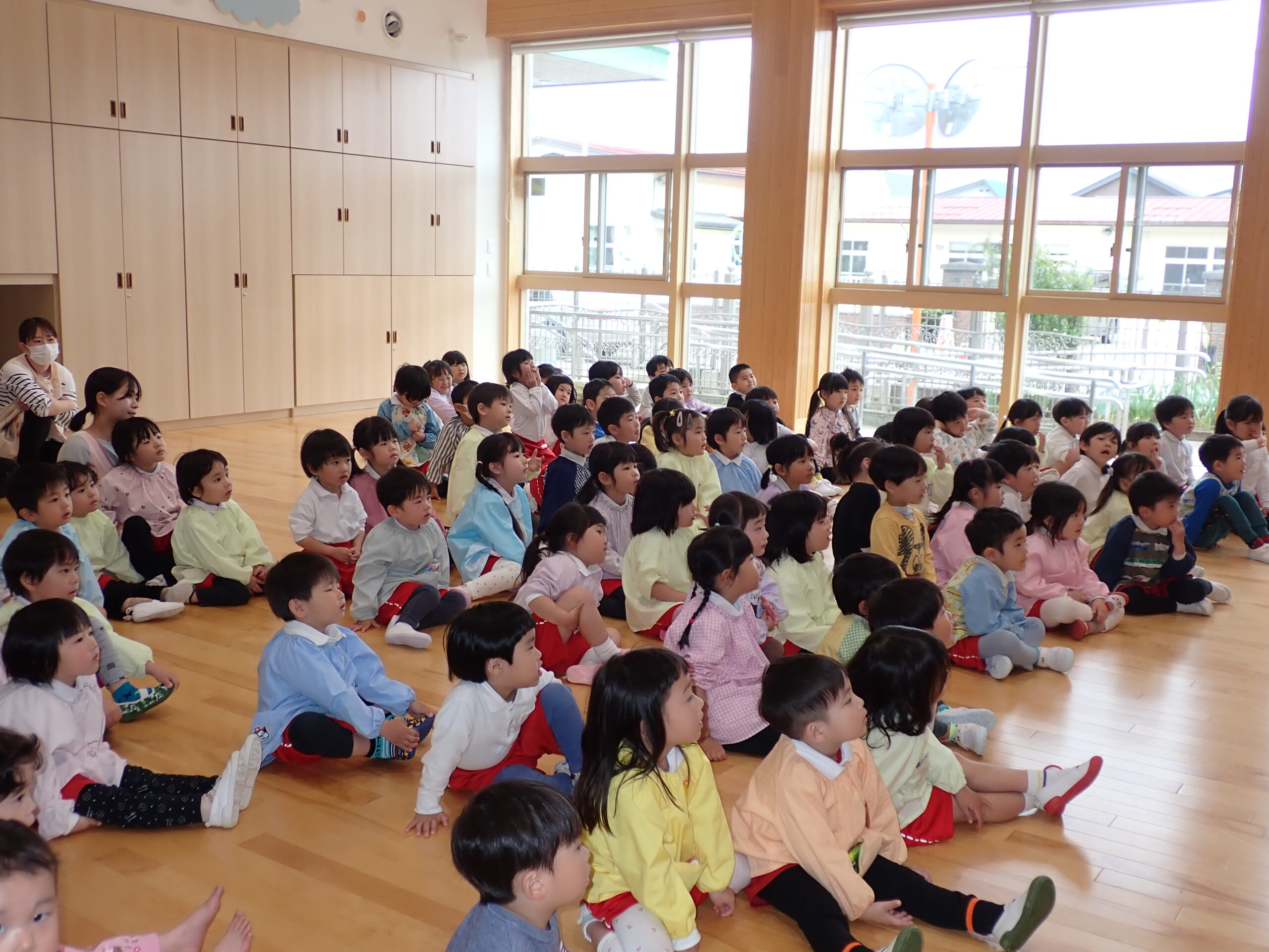 劇にちなんで、始まる前にみんなで一緒に3匹のこぶたの手遊びをしましたよ☻