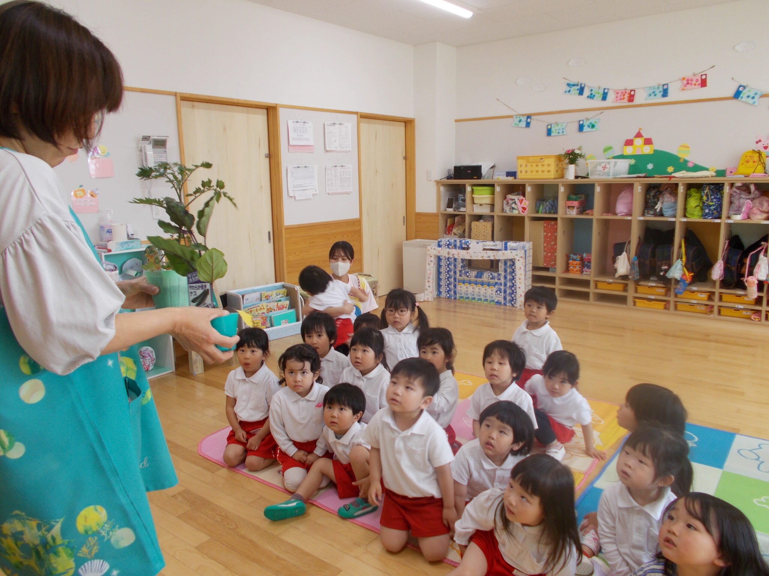 年少さんが植えた野菜はミニトマト🍅とナス🍆です。