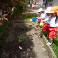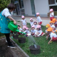 翌日からは、ジョウロに水を汲み、みんなでかわるがわる水やりをしてお世話をしています👌