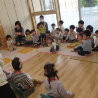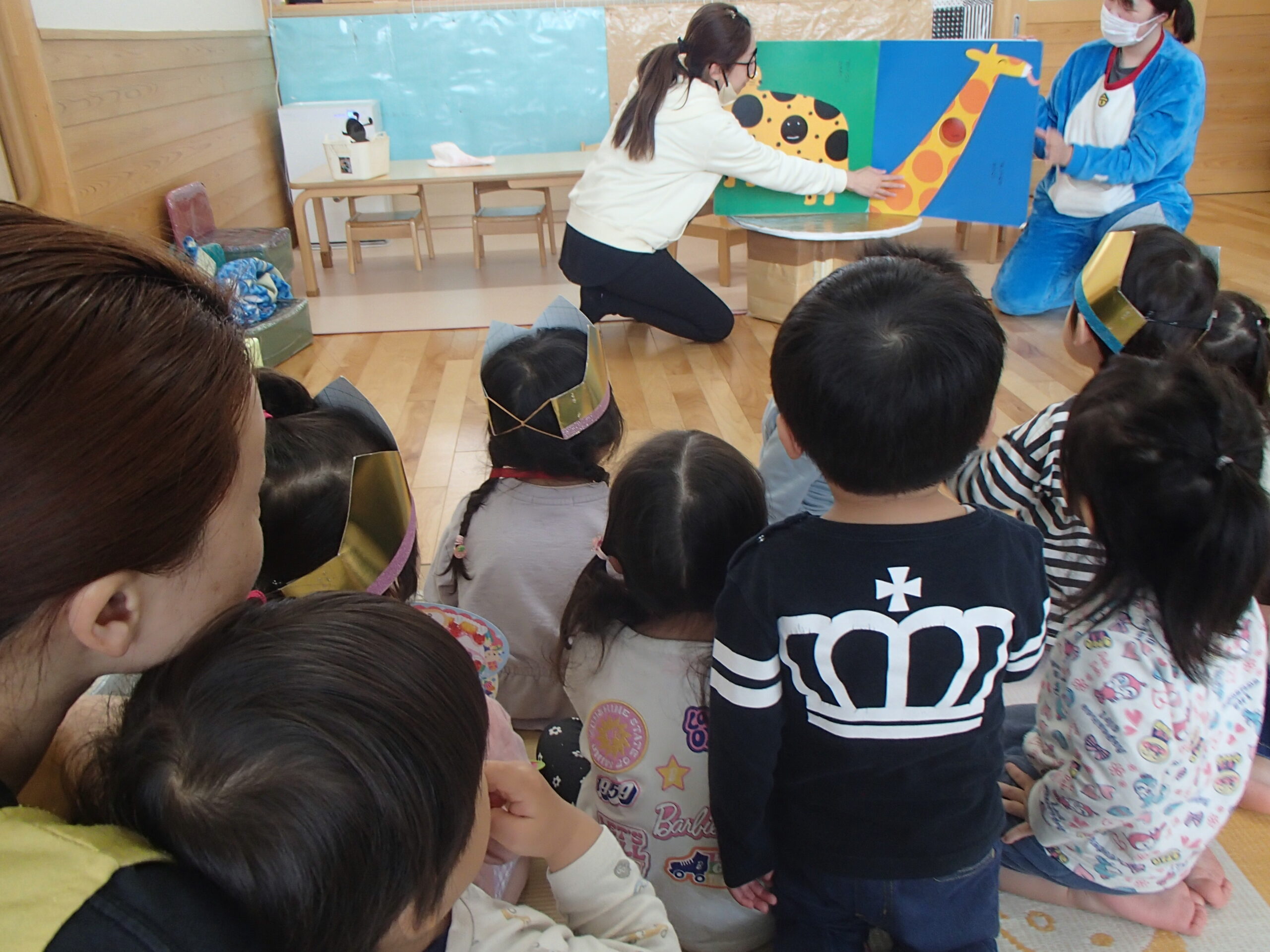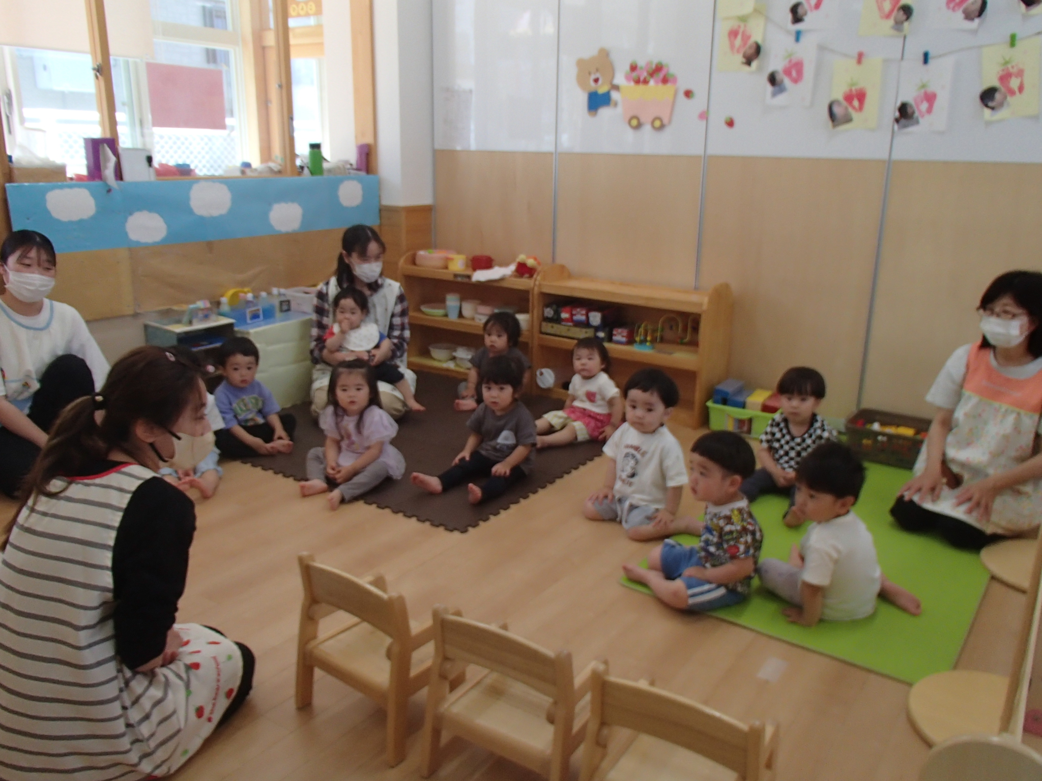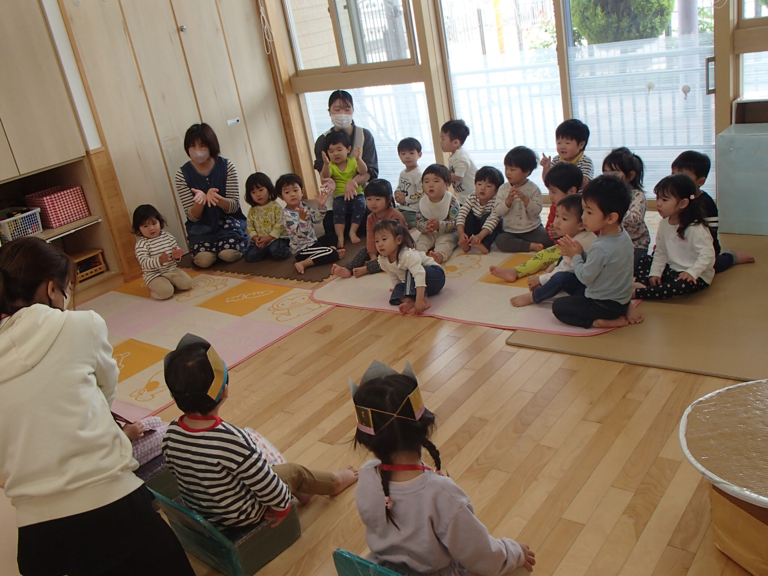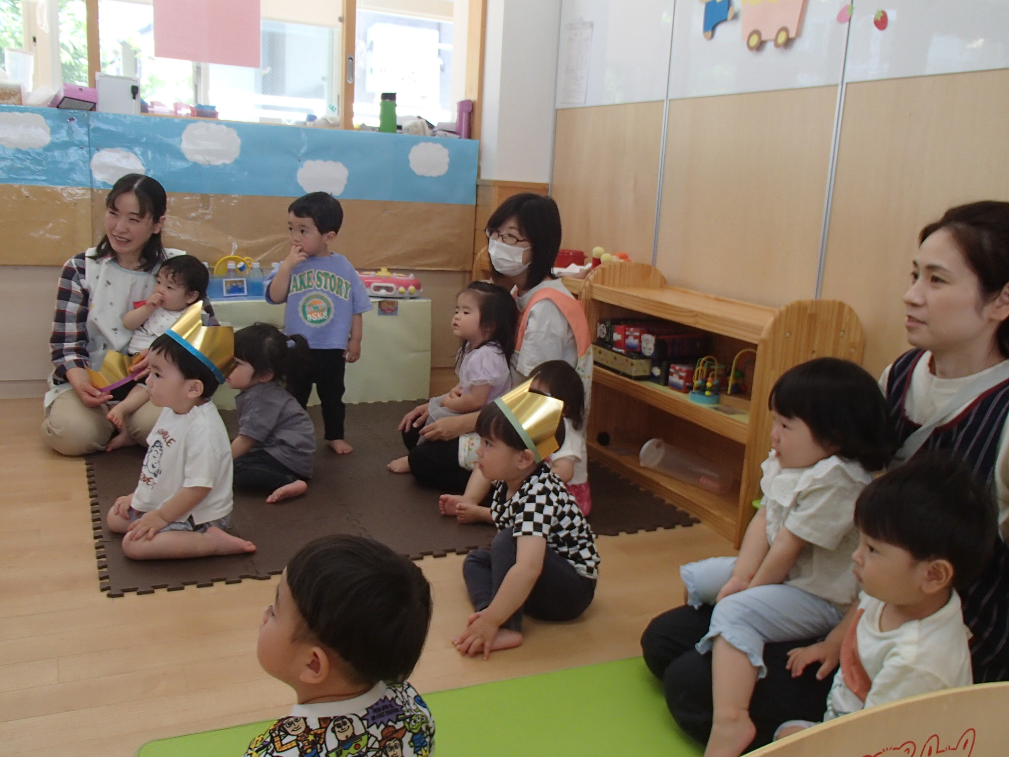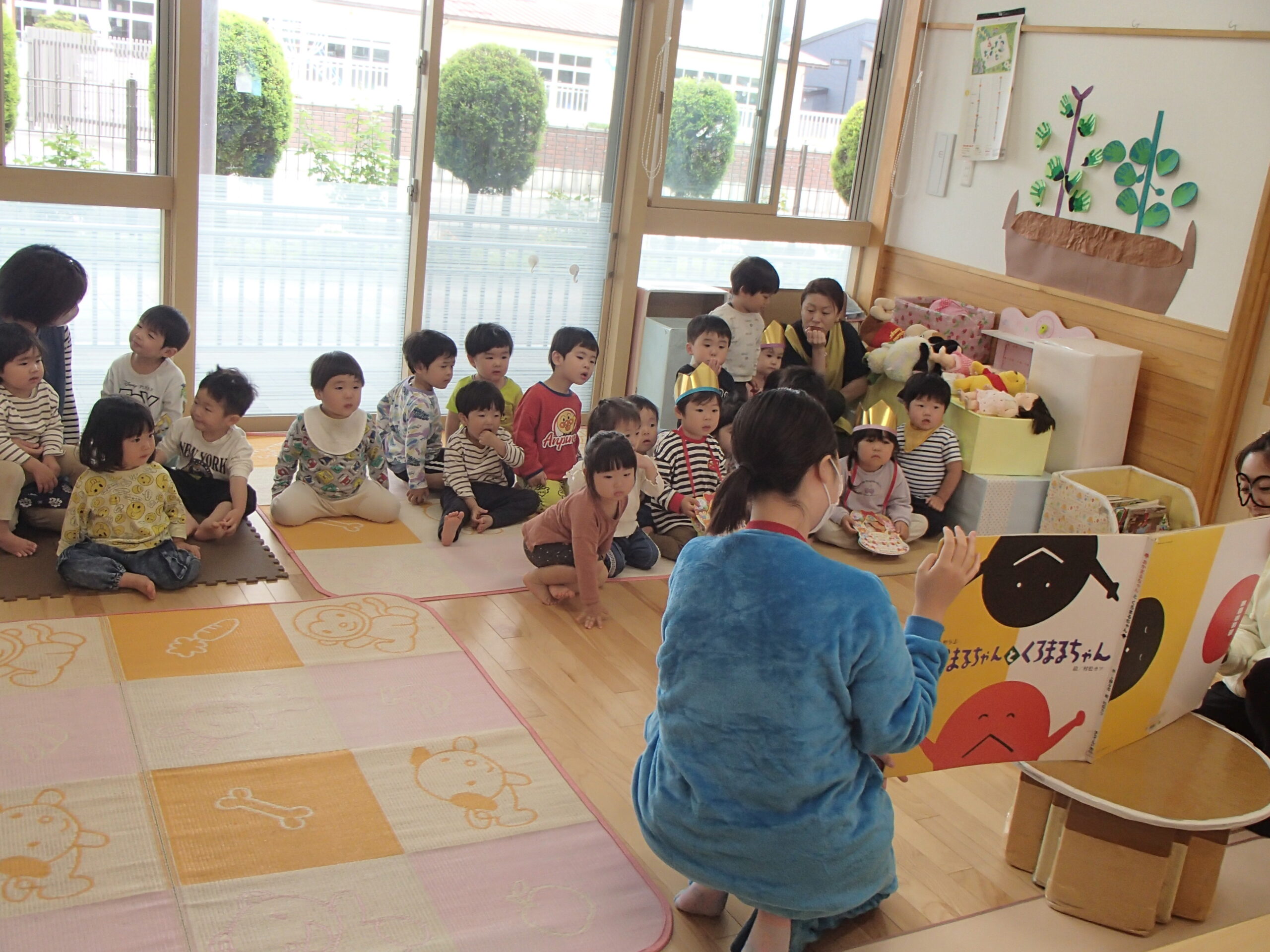 29日はひよこ組さんとはと組さんが保育室に集まり、いつもとは違う特別な雰囲気を感じながら、お友達をお祝いすることができました。