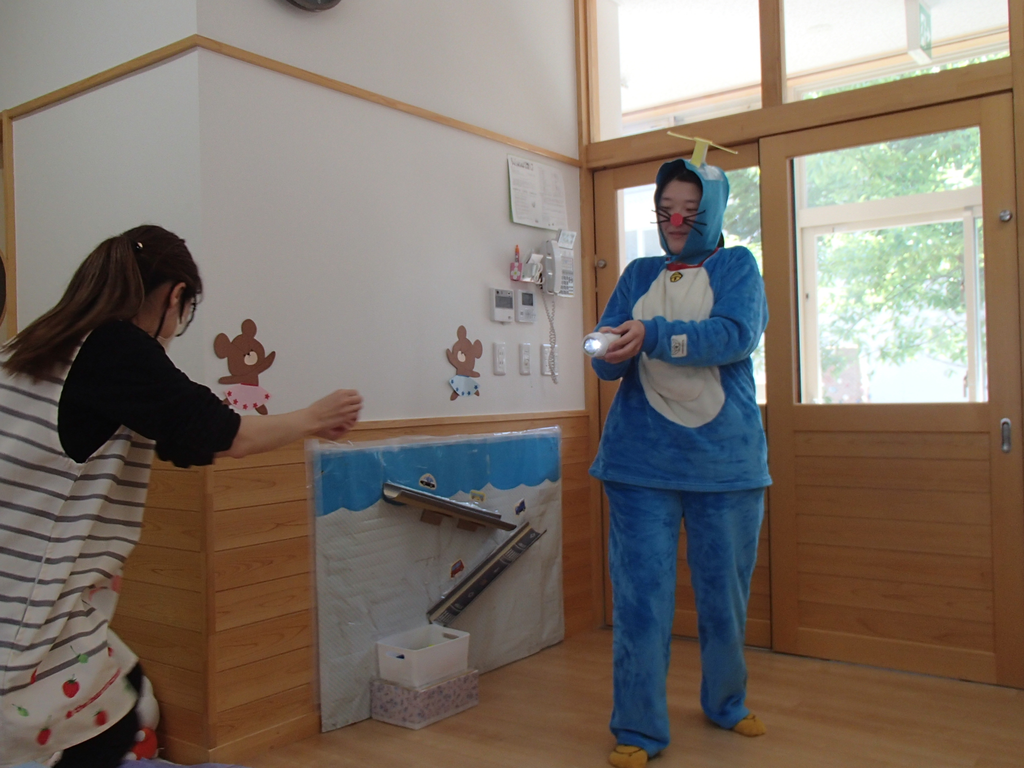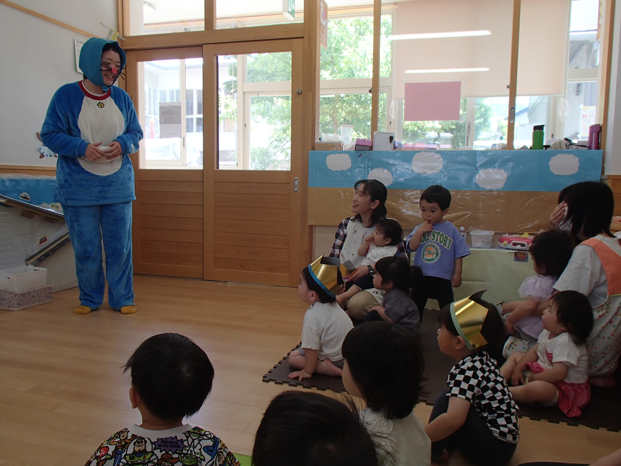 ドラえもんの登場に少し驚いていた様子も見られましたが、小さな絵本がドラえもんのビックライトで大きな絵本に変身すると「わぁー!」と歓声が上がっていました☺