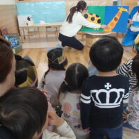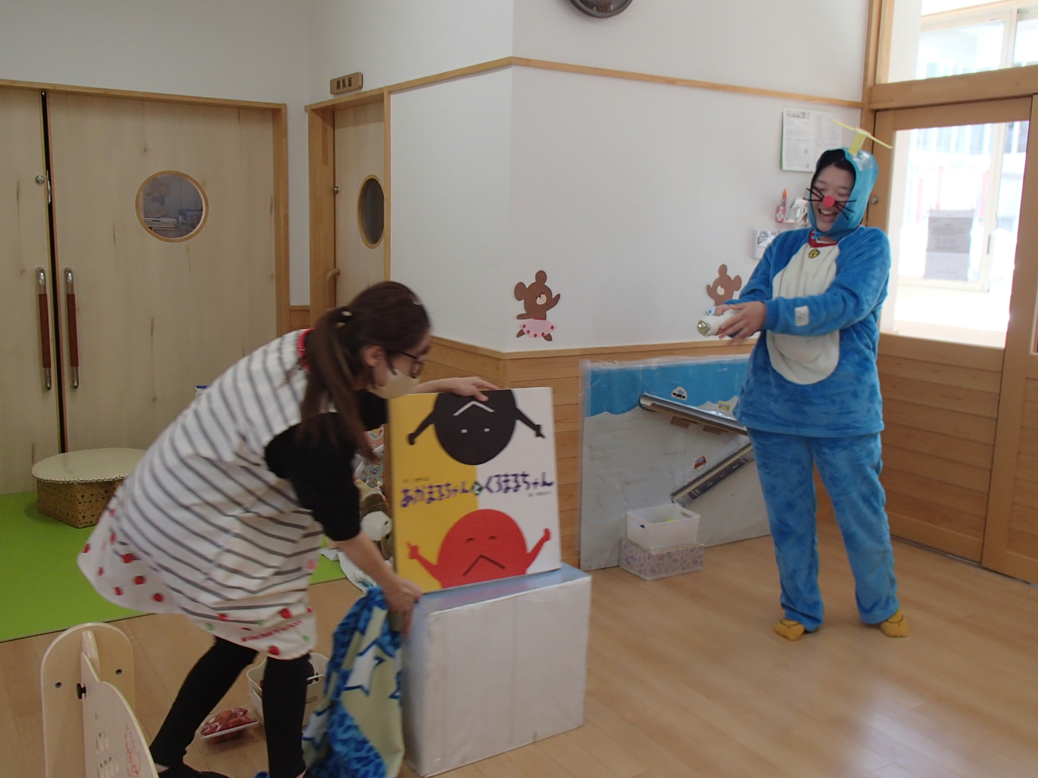 まず27日はつばめ組さんとあひる組さんが保育室に集まり、みんなで「たんたんたんじょうび」の歌を歌ったり、おめでとうの気持ちを込めて拍手をしたり、先生たちからの楽しい出し物をみたりと、とっても楽しい時間を過ごしていました。