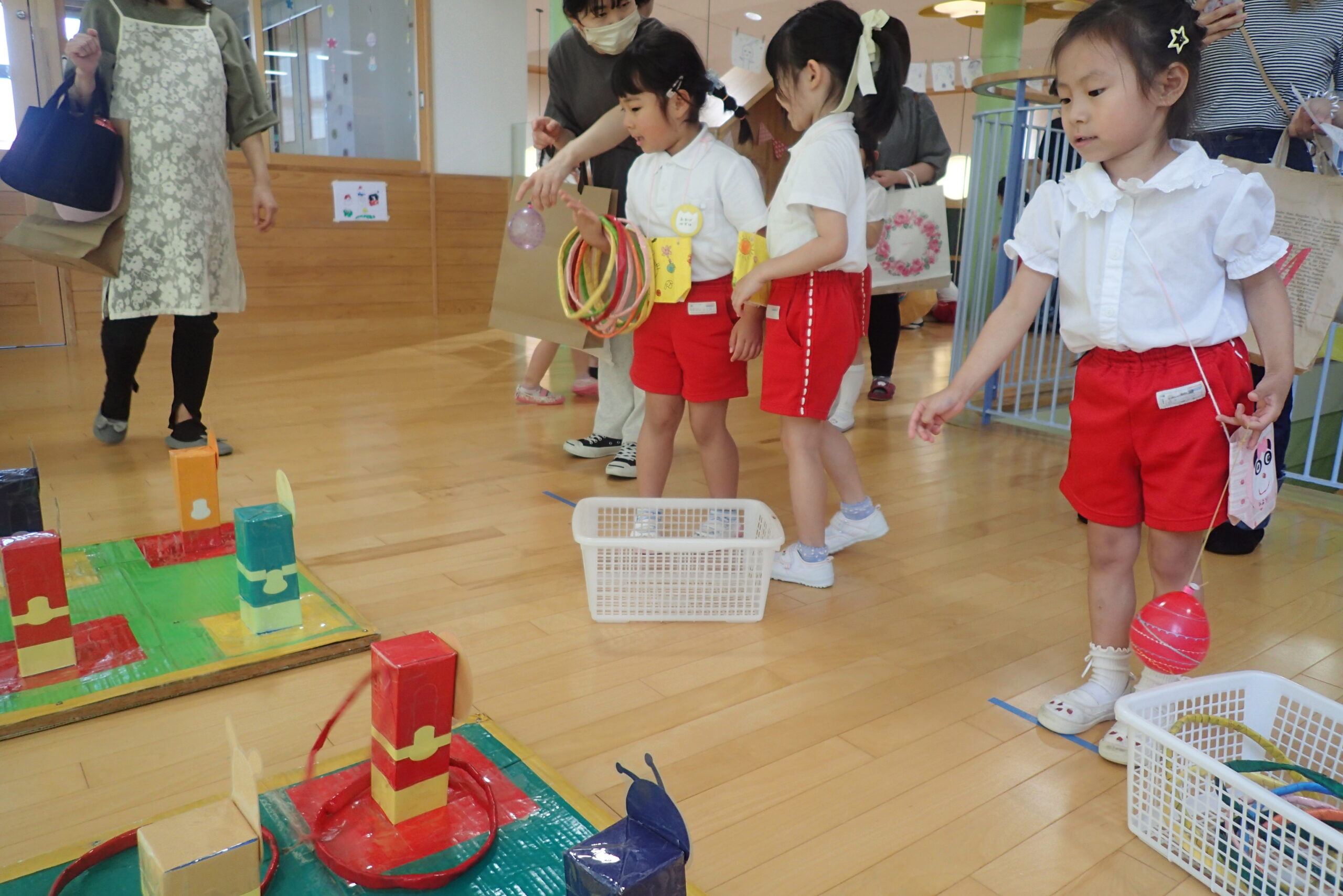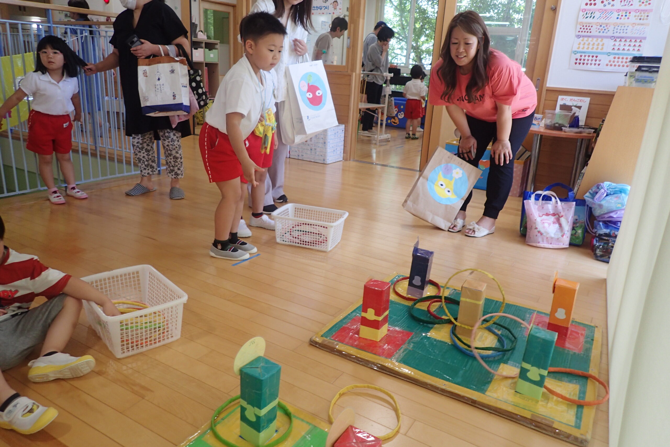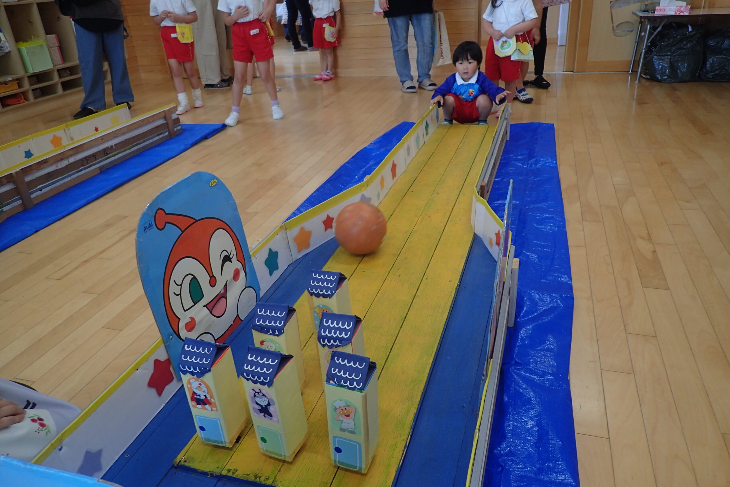 ボーリングや玉入れ、折り紙、輪投げ等々、たくさんのゲームコーナーもお家の人と一緒に楽しんでいましたね💓