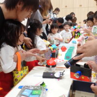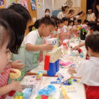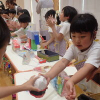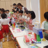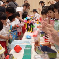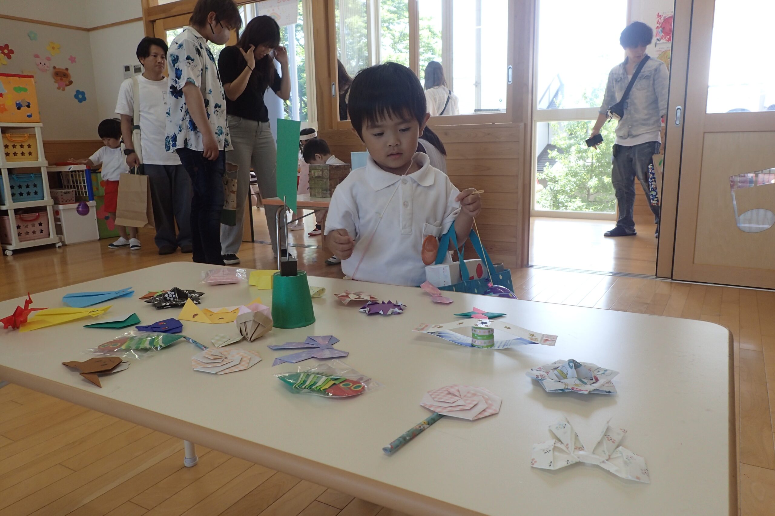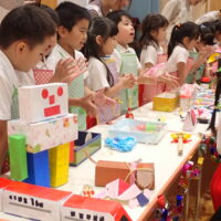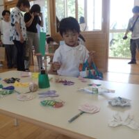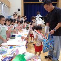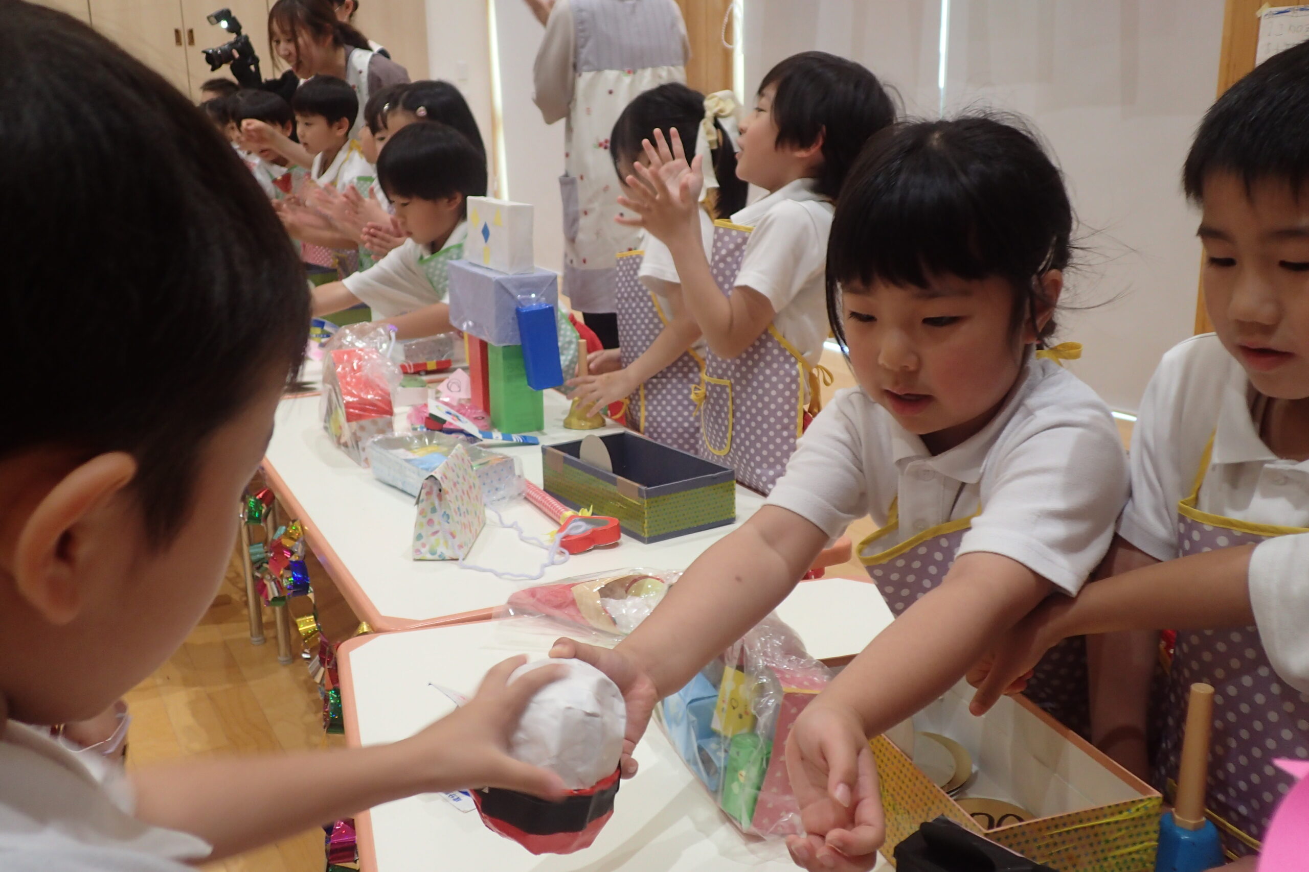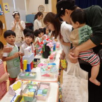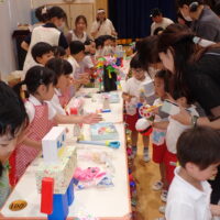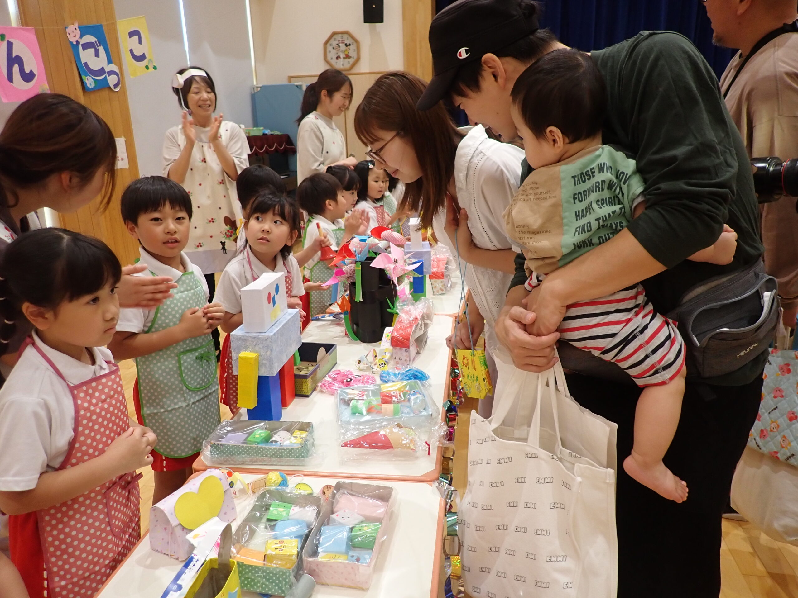 お店屋さんでは、年長さん店員さんに変身!素敵なおもちゃがたくさん並べられたテーブルを見て、お客さんもわくわく!