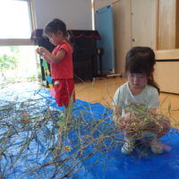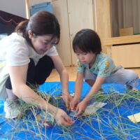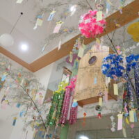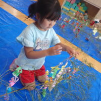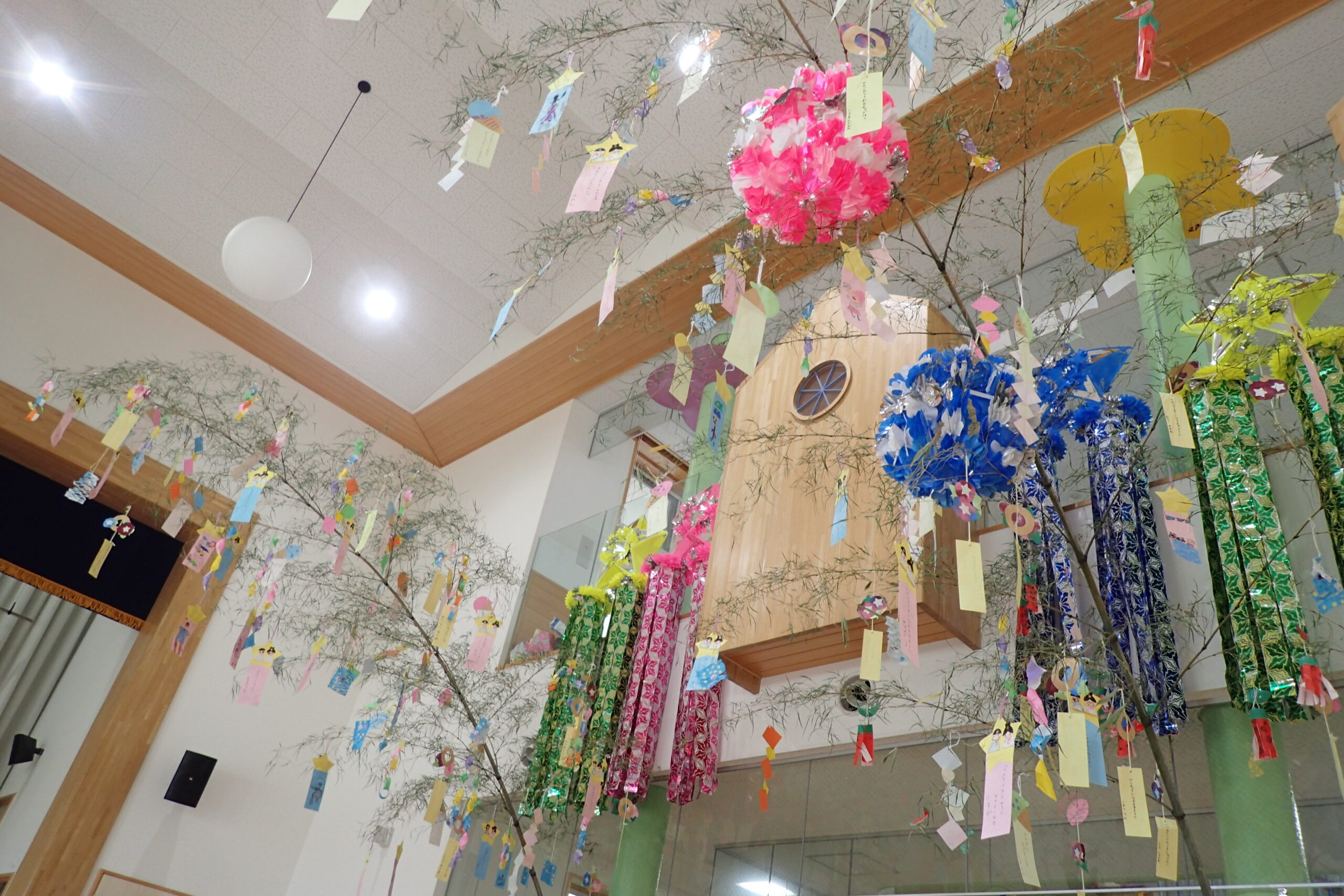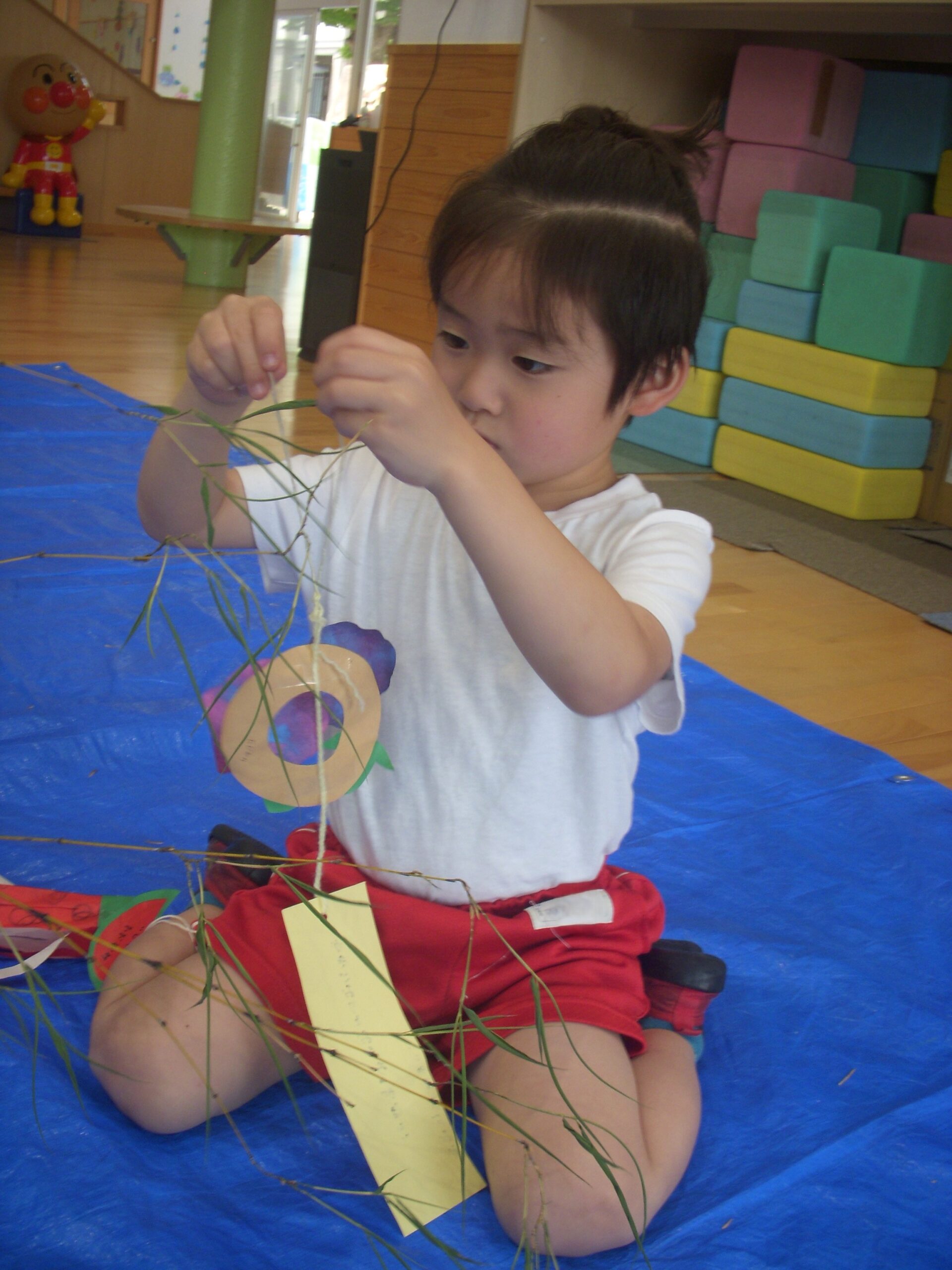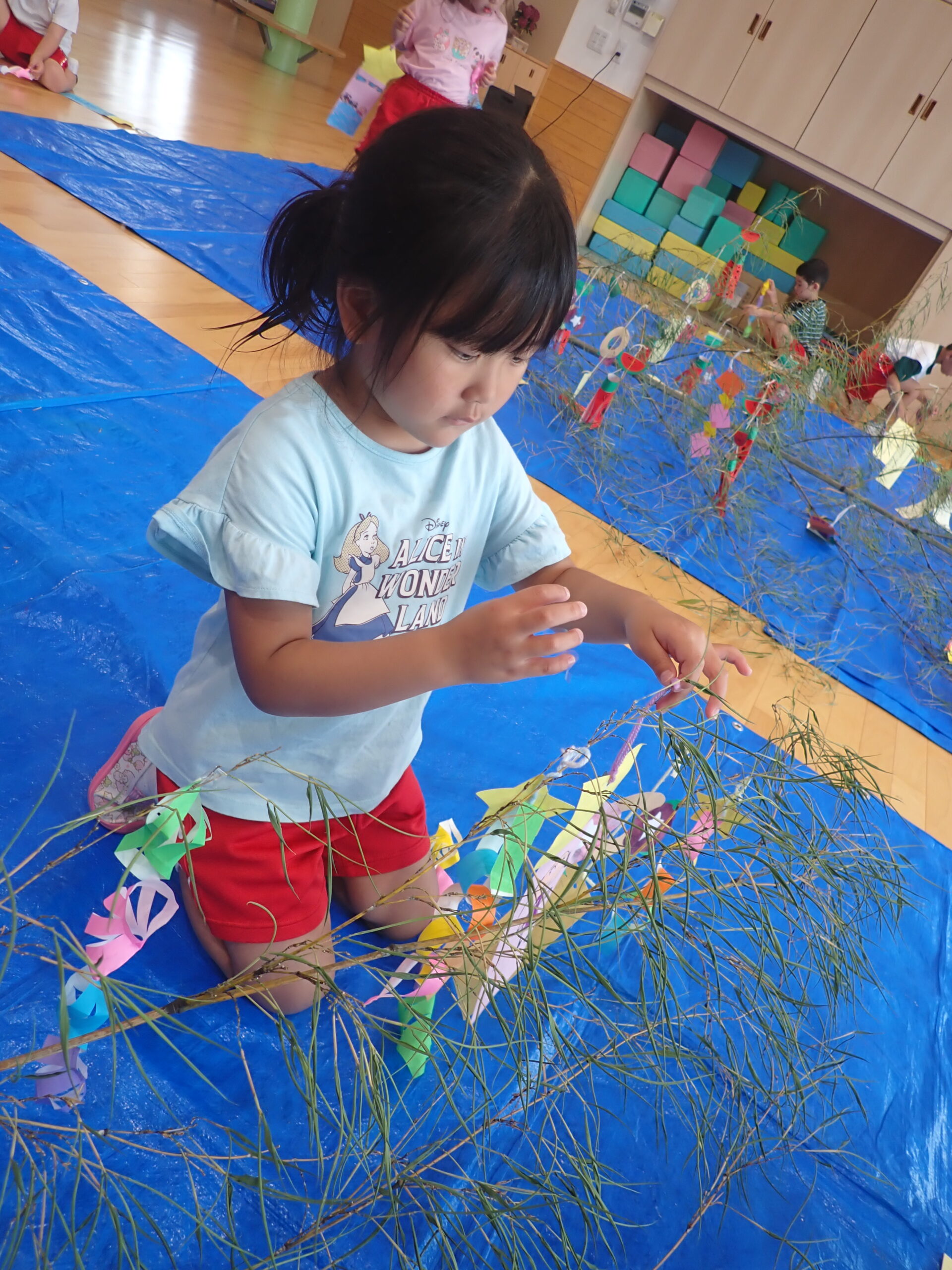 子ども達が作った短冊や笹飾りを先日、自分たちで笹竹に付けました!