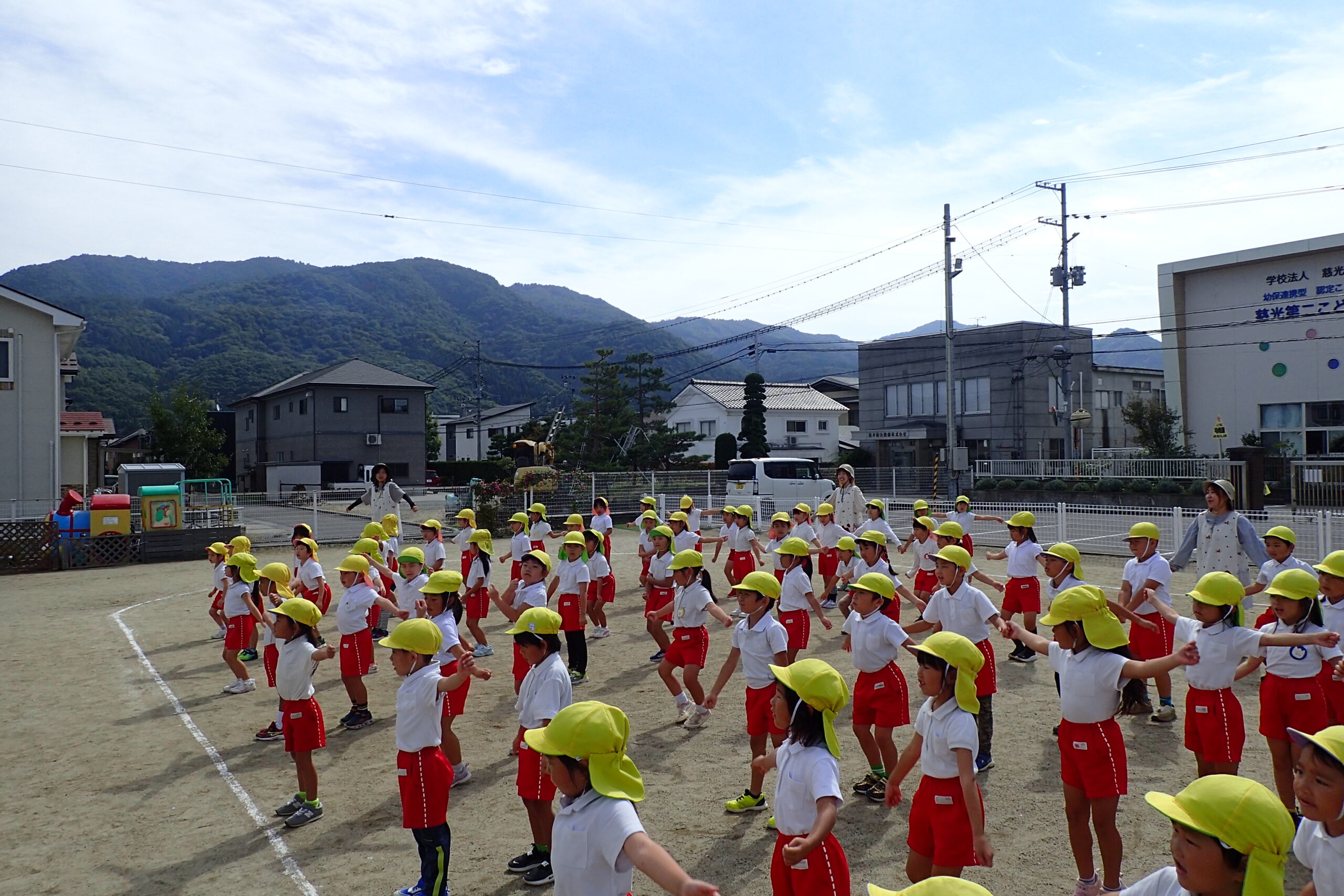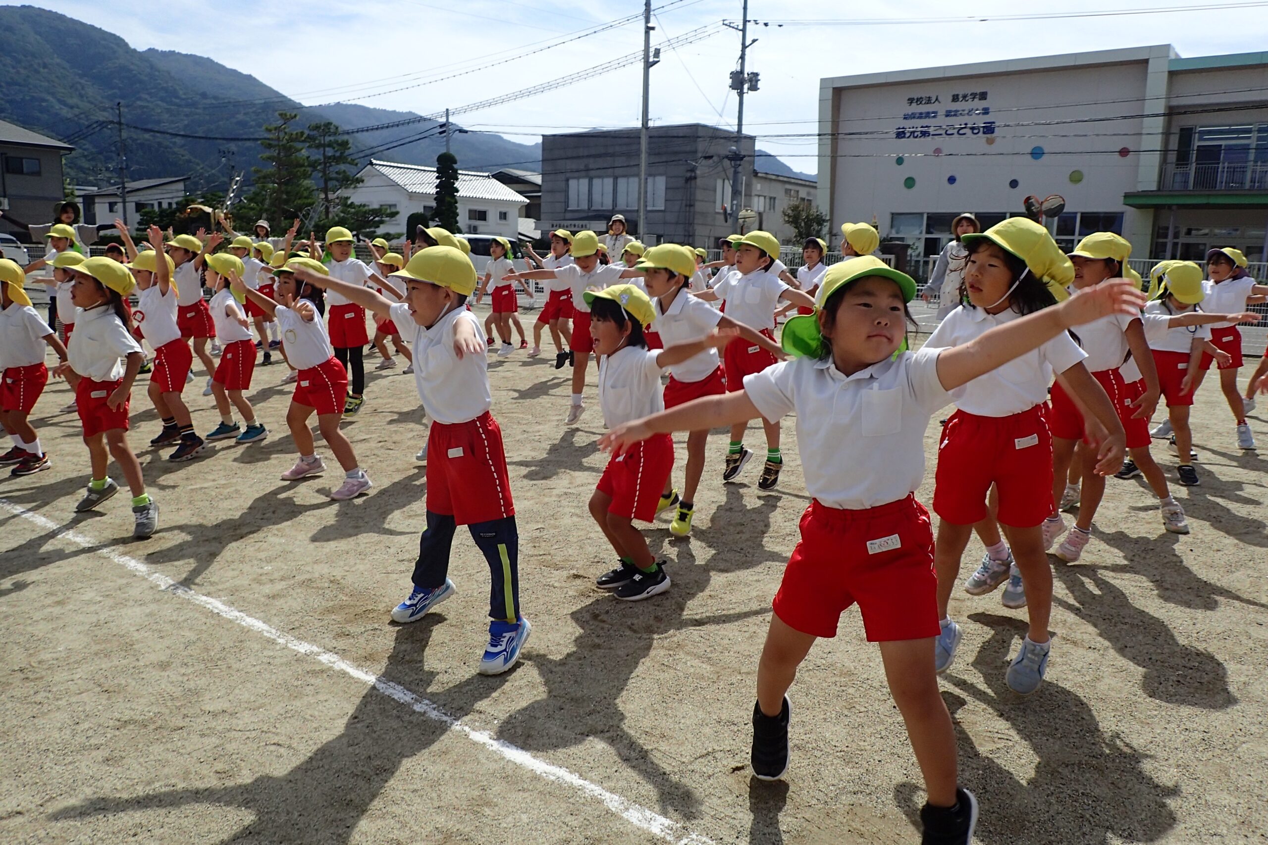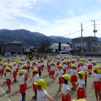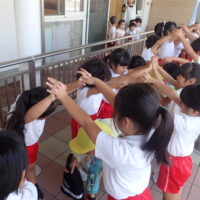 グラウンドで、元気にラジオ体操をした後は・・