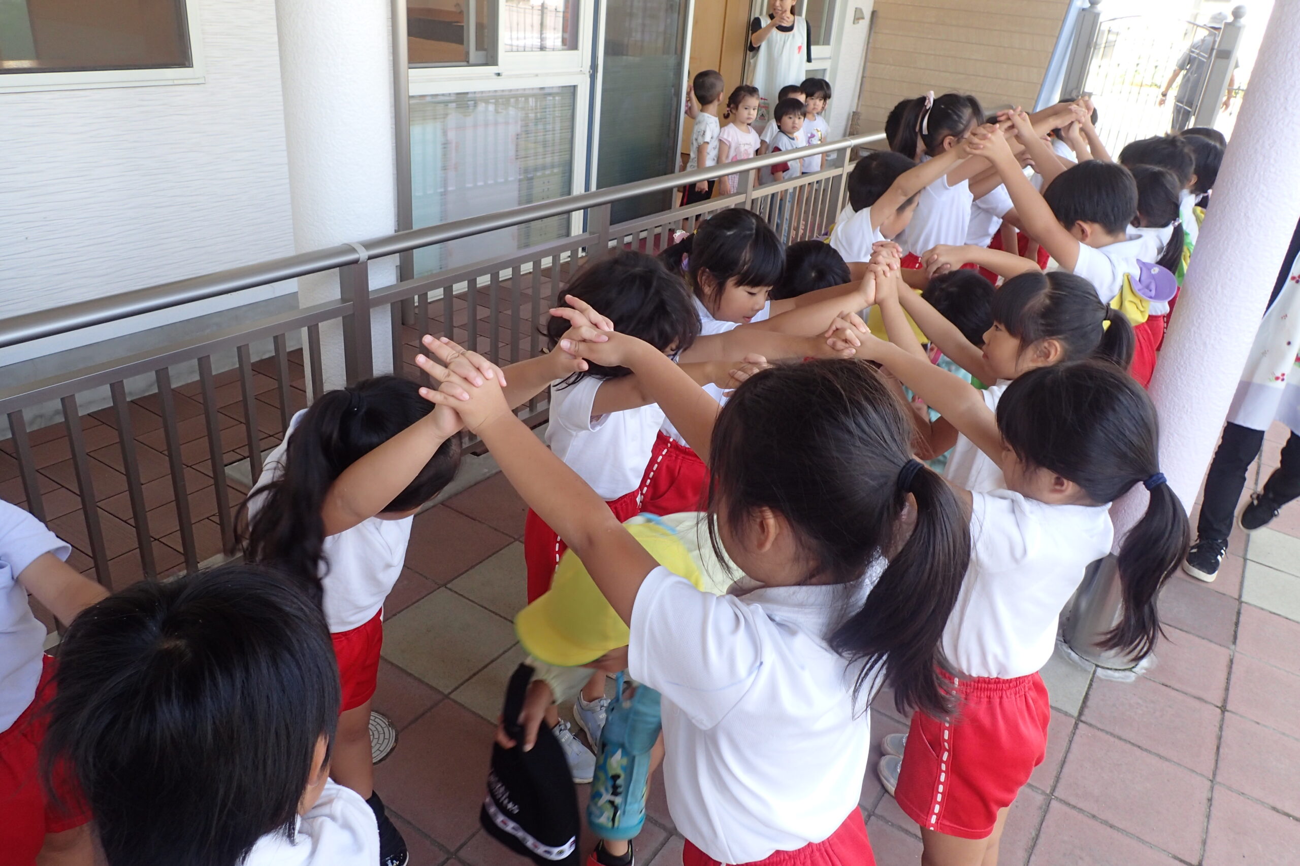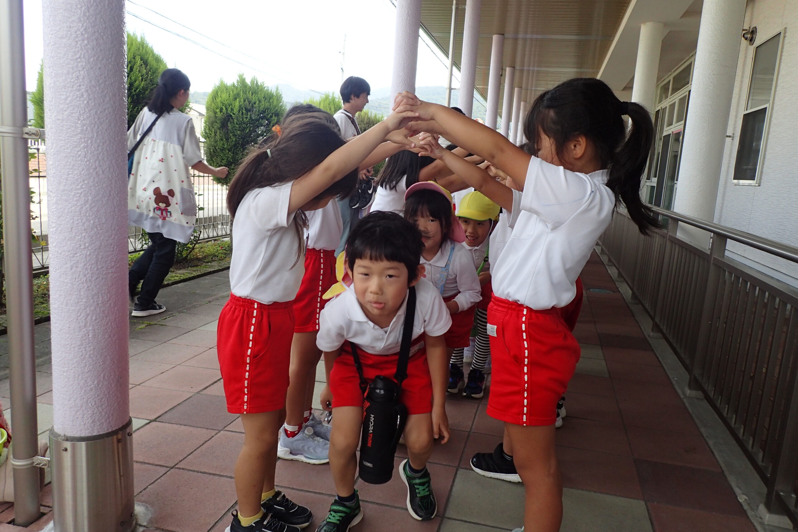 あっという間に運動会ごっこが終わり、最後にみんなでトンネルを作ってお見送りをしました。