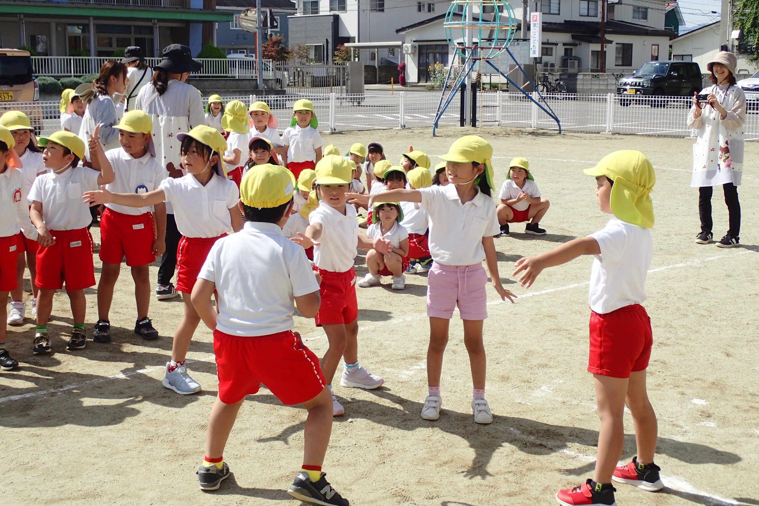 会津慈光こども園のお友達が到着すると、張り切ってトンネルを作り、お迎えすることができました☺