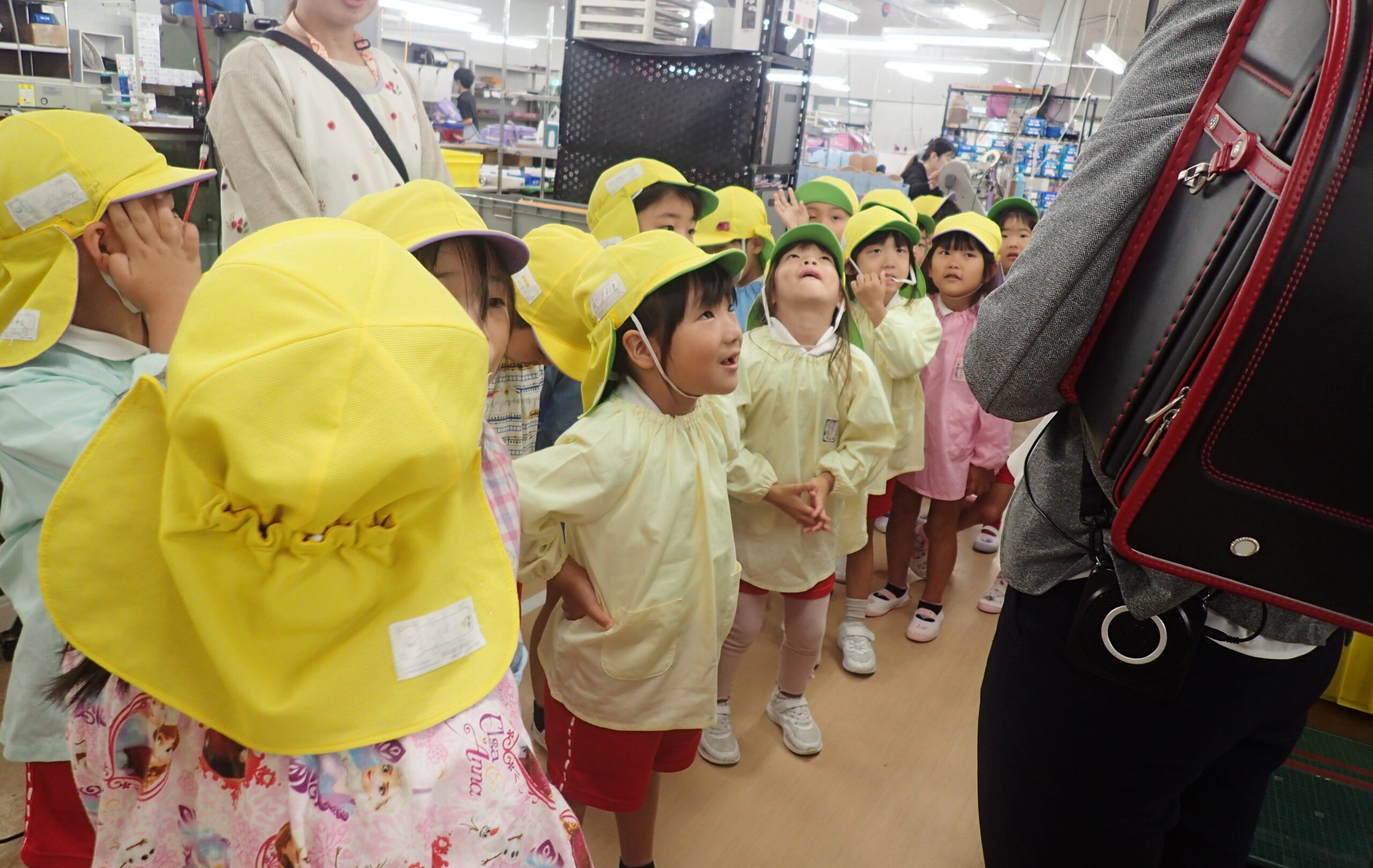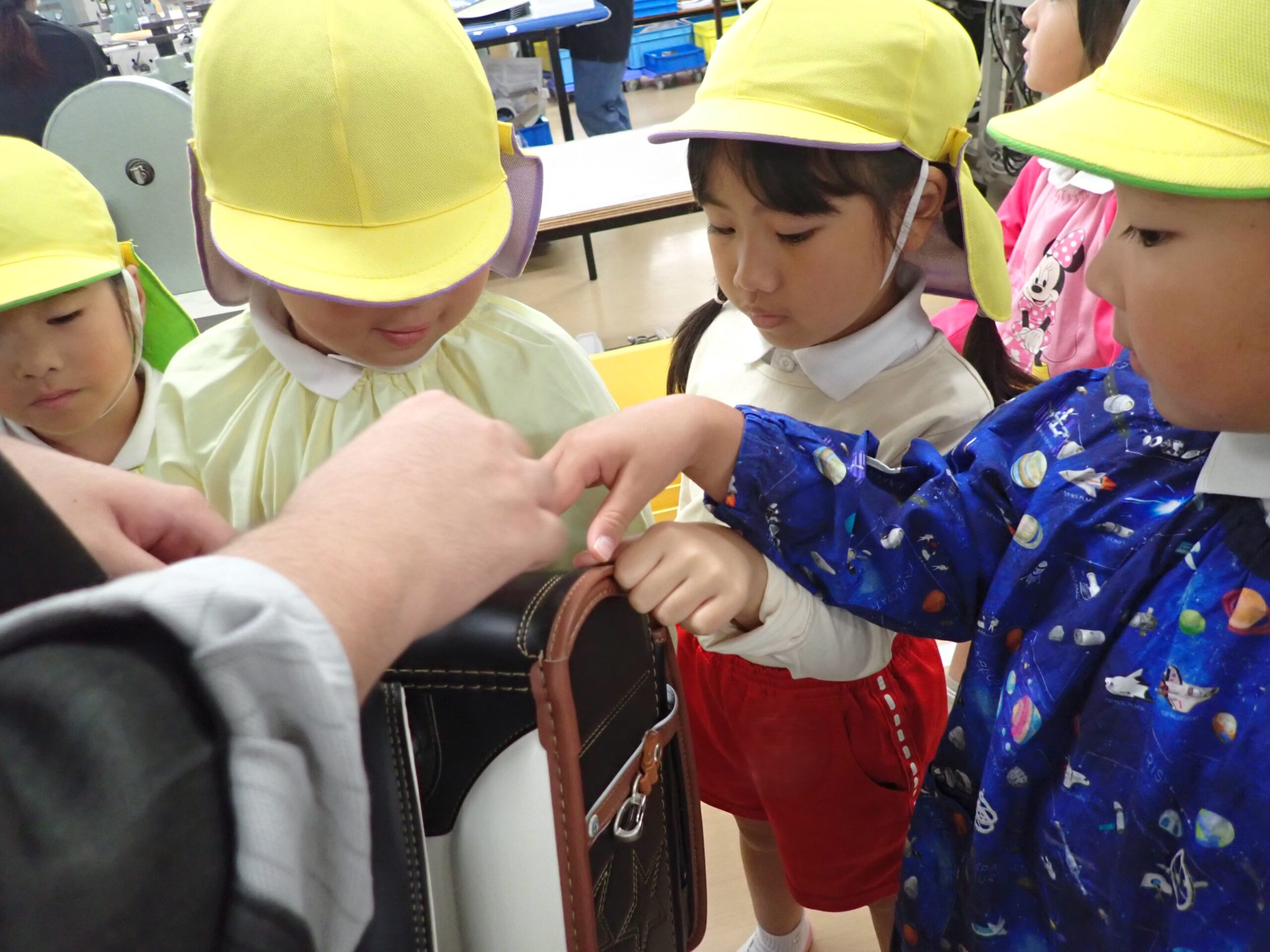 今日は年長組の子ども達が河東町にあるランドセル工場『羅羅屋』に工場見学に出掛けました。
