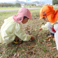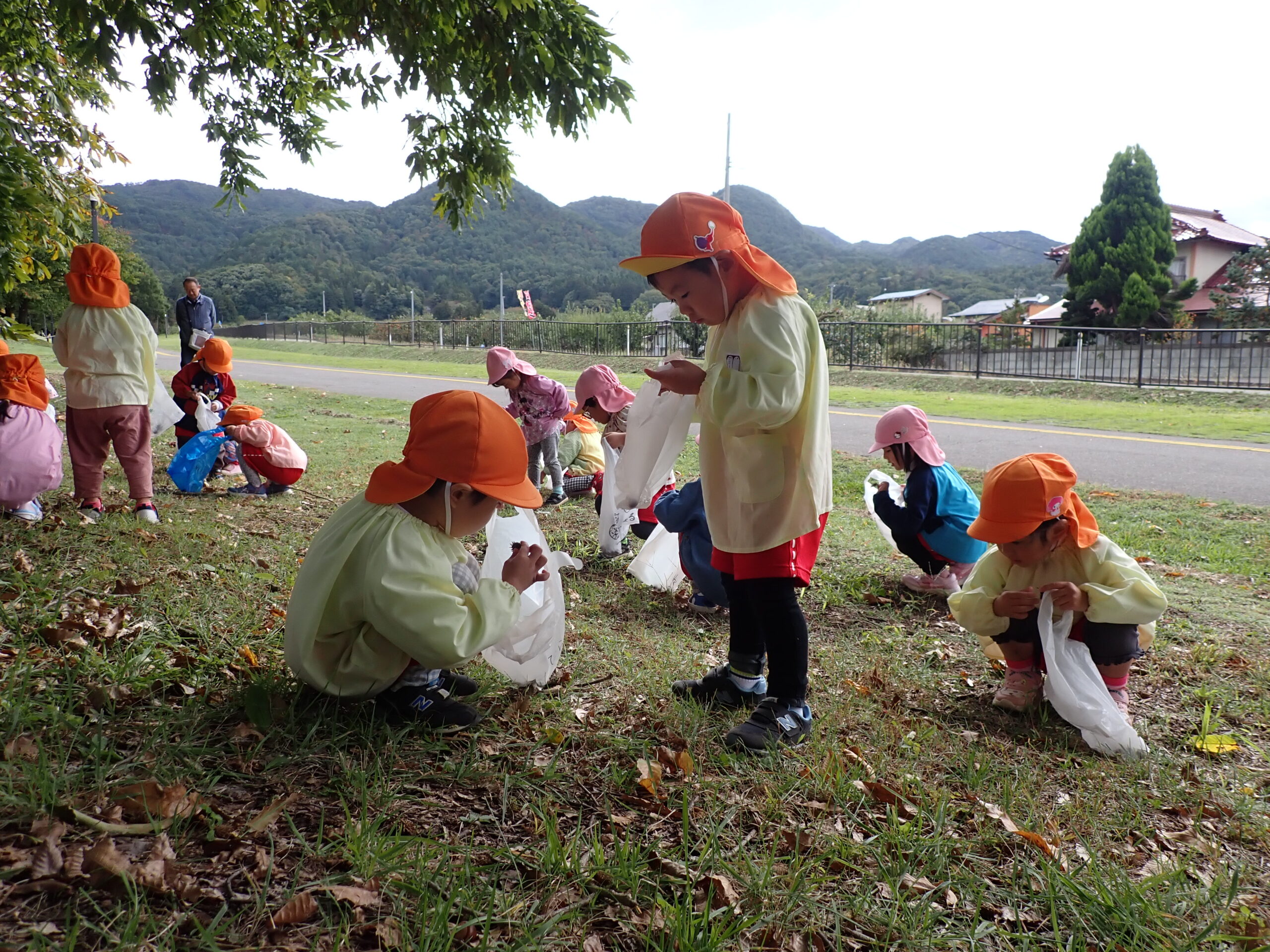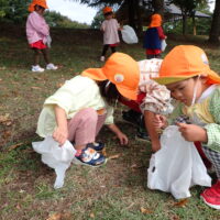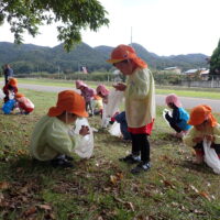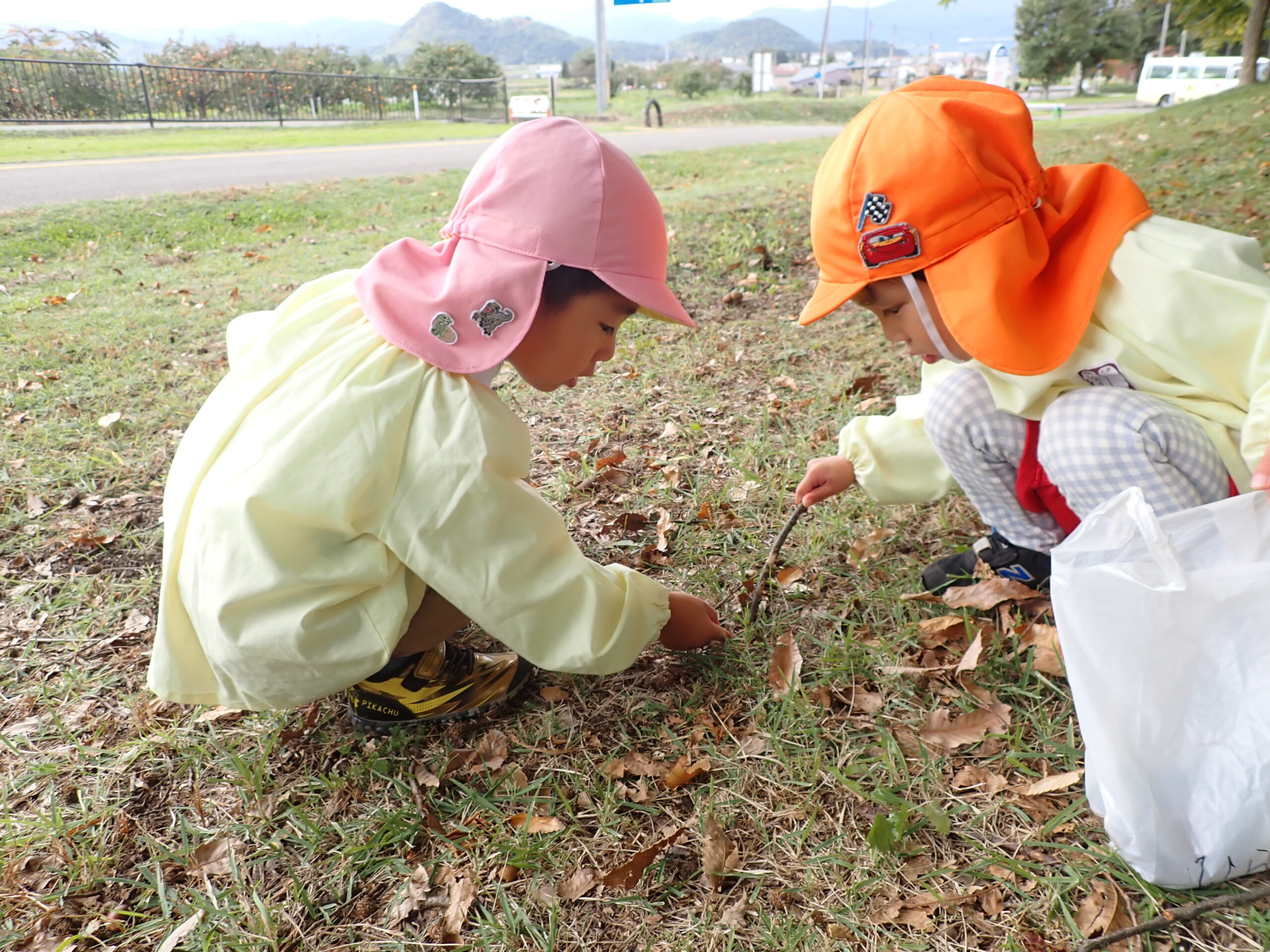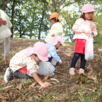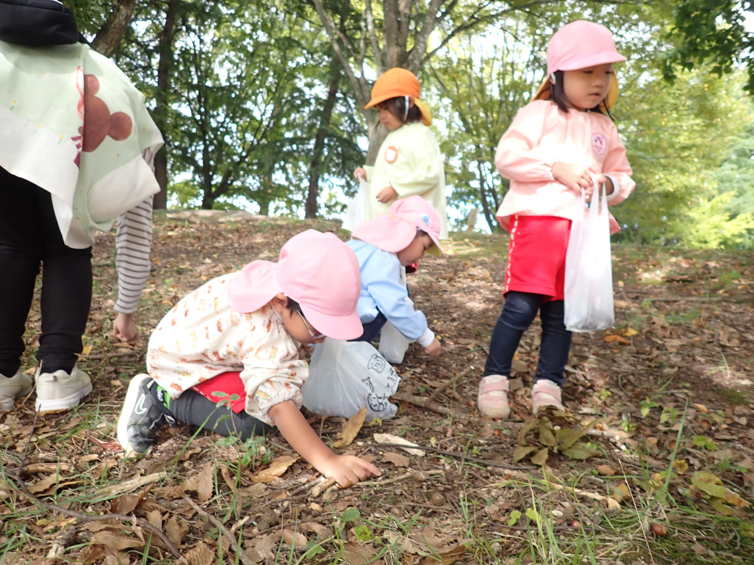 「あった!」「こっちにいっぱいあるー!」「帽子もあるよー!」と夢中になってどんぐりを拾い、手に持っていたビニール袋は、あっという間にどんぐりでいっぱいになりました☺️