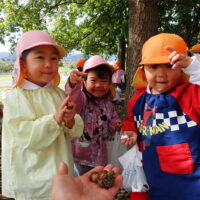 目的地に着くと、足元に転がっているどんぐりを見つけ、「あっ!どんぐりだー!」と、大興奮の子ども達😮