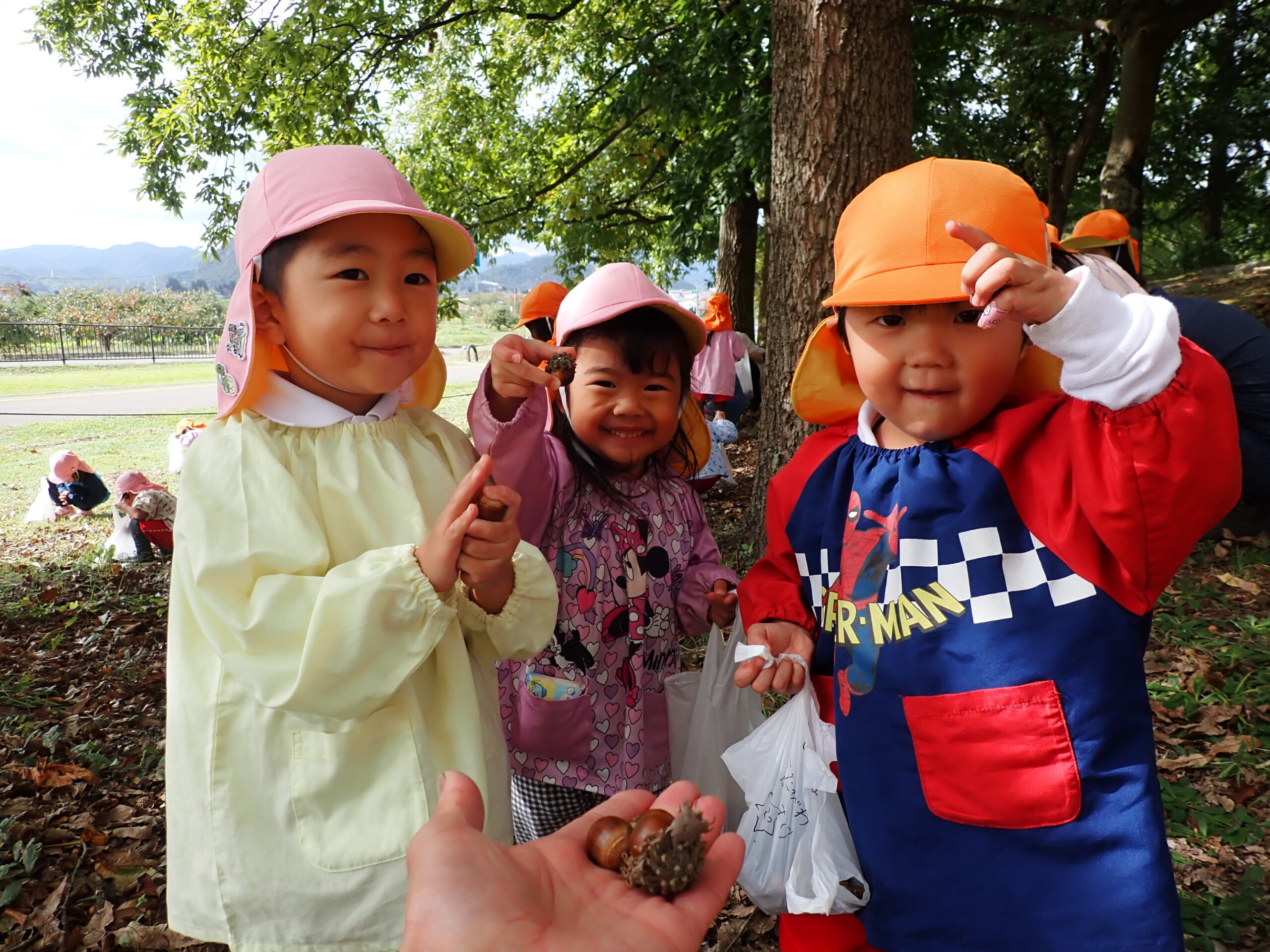 本日、年少組さんが、会津総合運動公園・わんぱく広場へ、どんぐり拾いに行ってきました。