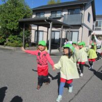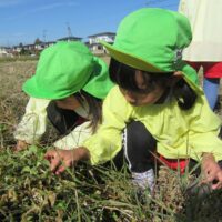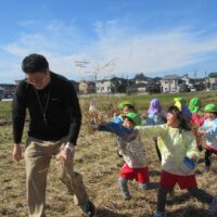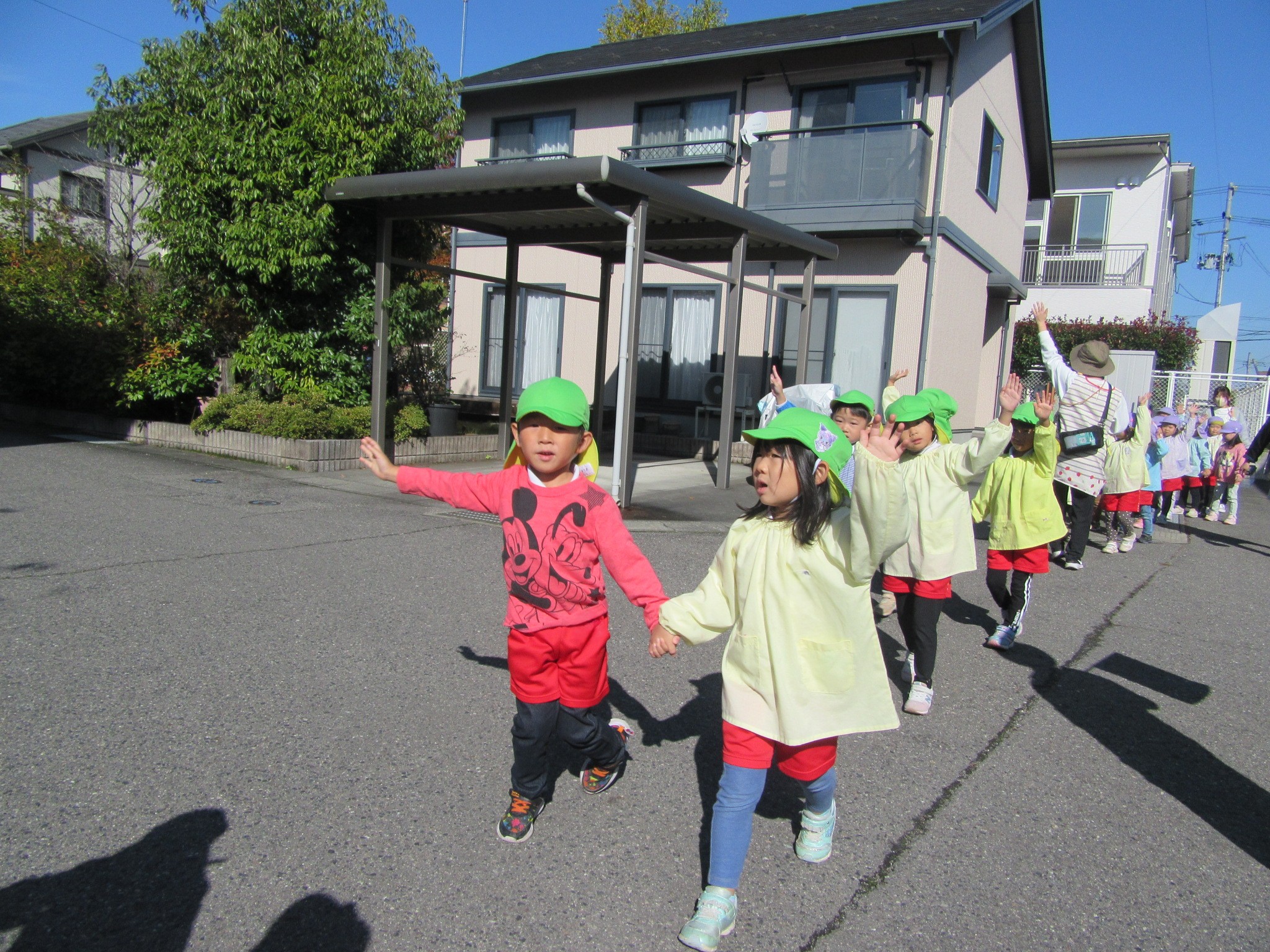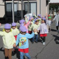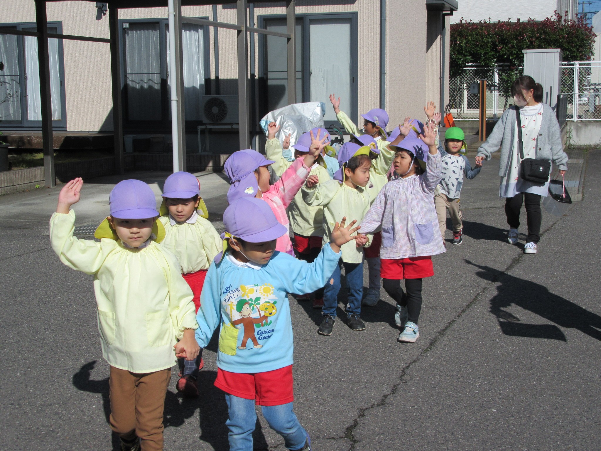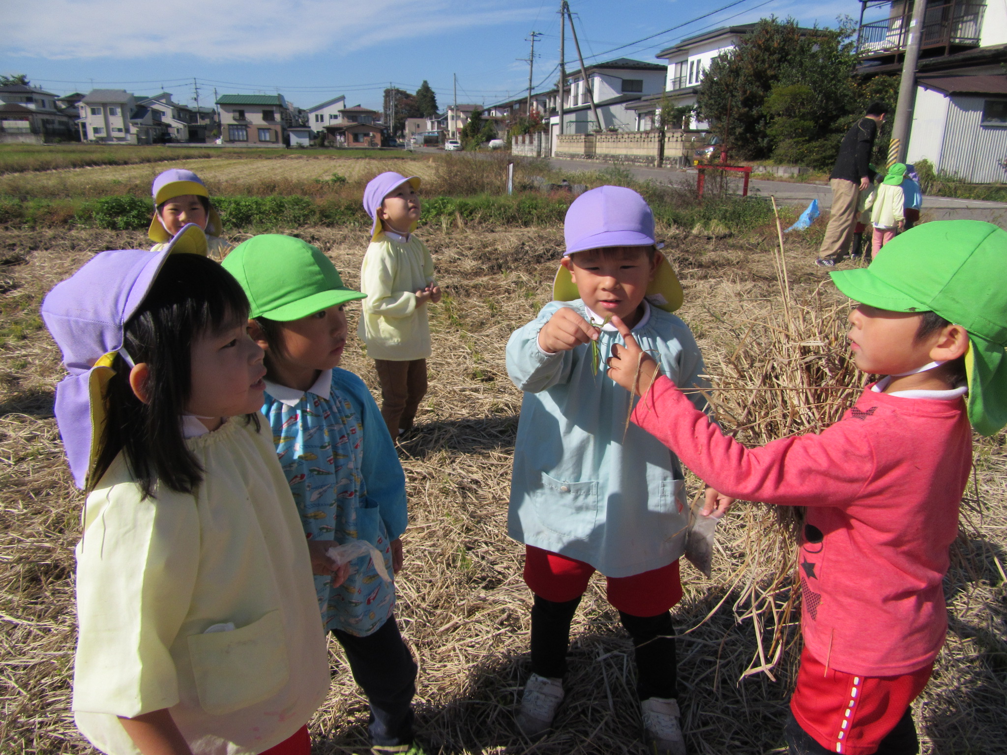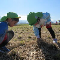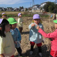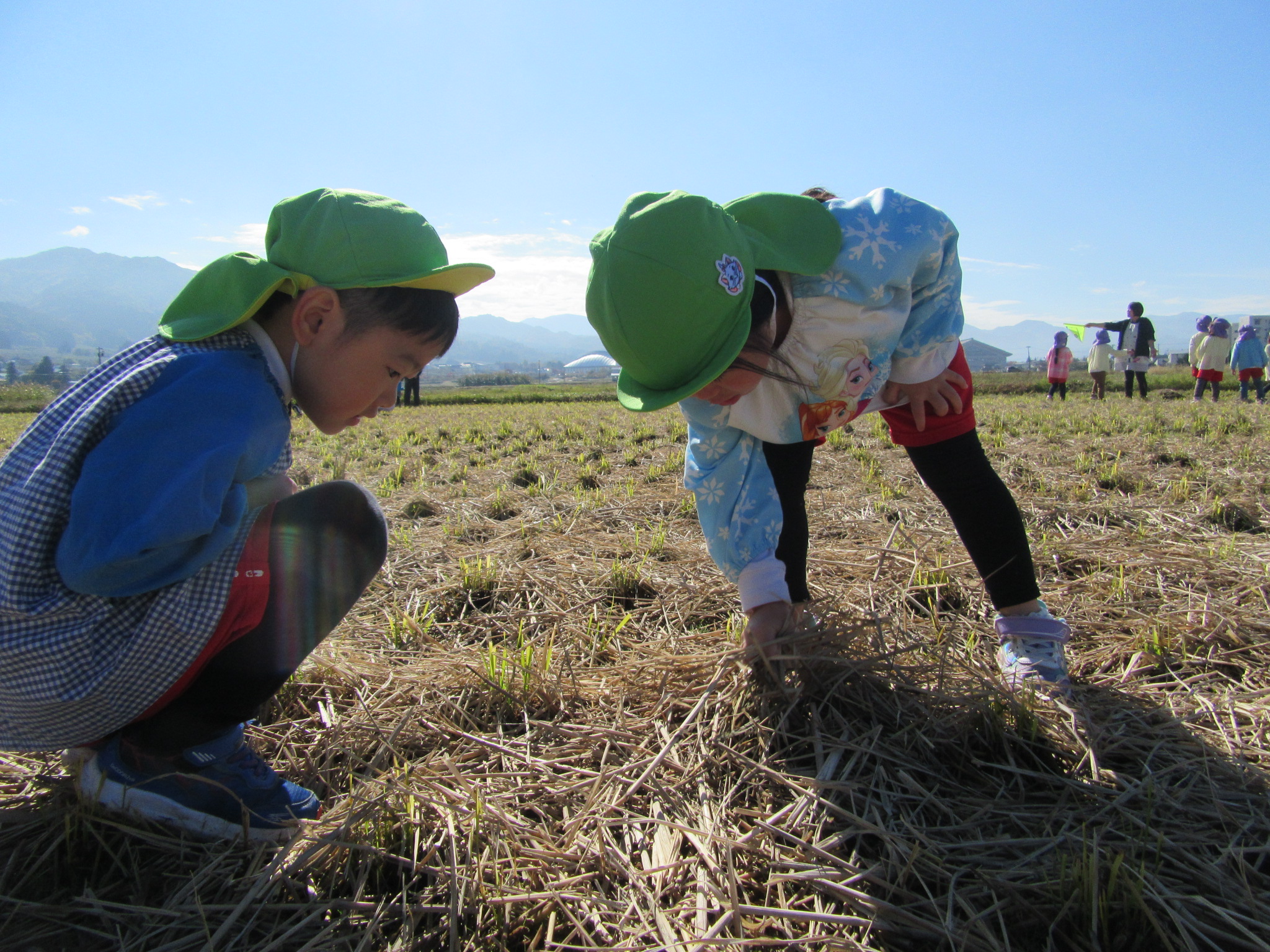 澄んだ青空の下、年中さんがこども園の近所にある田んぼへ遊びに行きました!
