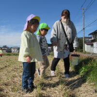 出掛ける前に田んぼではお米が育つことを教えてもらった子ども達は、さっそくお米を探し始めました。