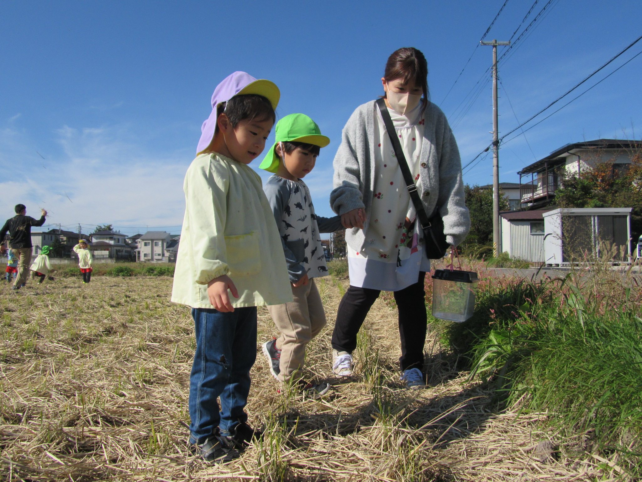 イナゴやコオロギ、カマキリを見つけ、田んぼでもむしむし探検隊が大活躍しました⭐