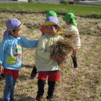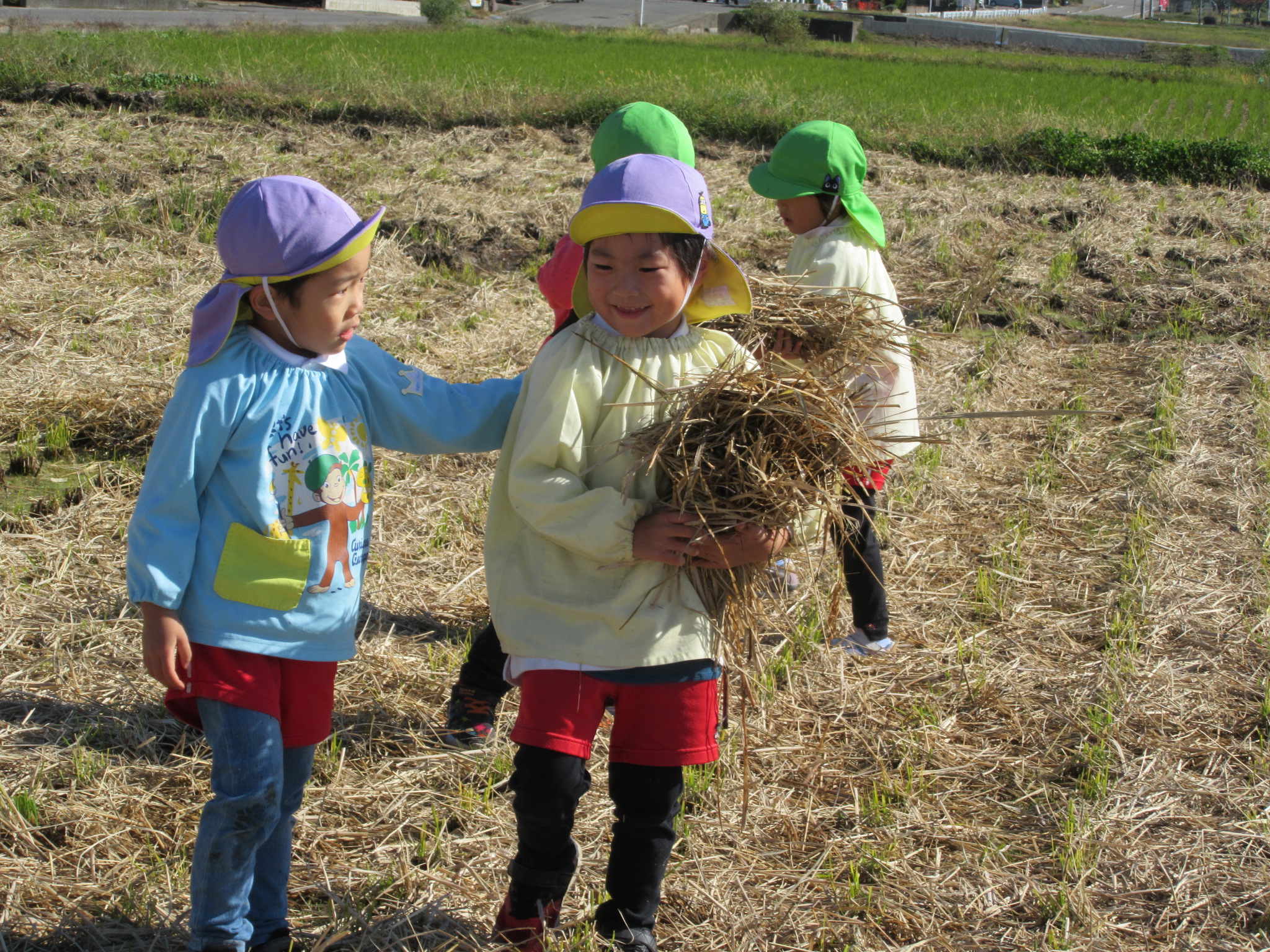 わらをかき集めて、お友達や先生とわらの掛け合いっこも楽しみました♪