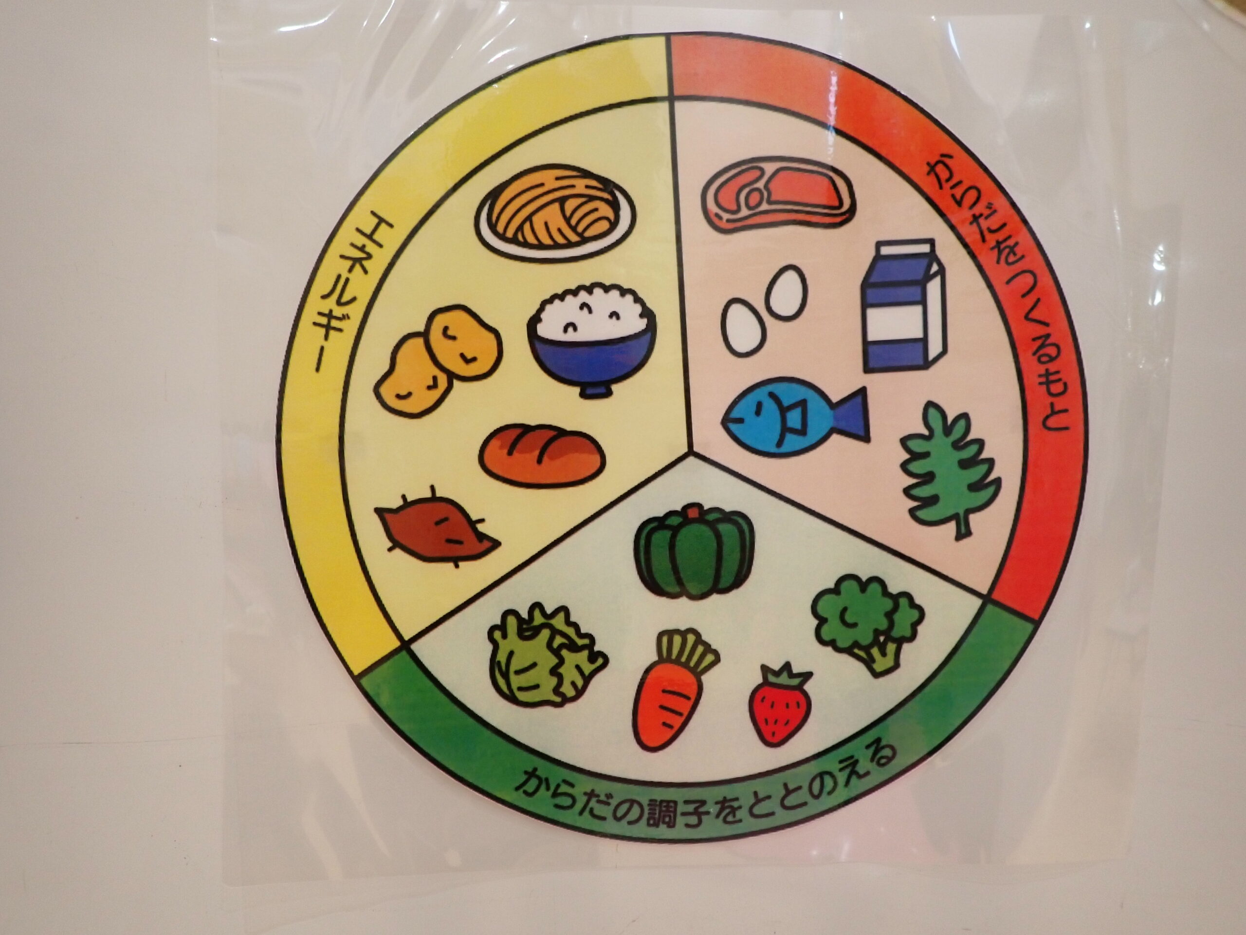 元気になる食べ物(黄)、体の調子を整える食べ物(緑)、体を作る食べ物(赤)の表を使ってバランスの良い食事をとることで元気になれることも教えてもらったり・・✨