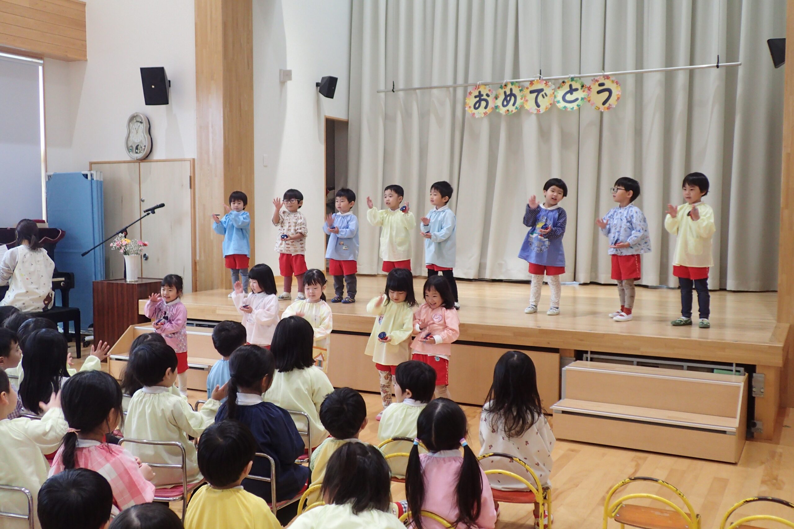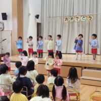 ステージに上るとドキドキ💓した様子でしたが、園長先生からお誕生カードのプレゼントをいただくとみんなにんまり笑顔😊でお誕生カードをみつめていましたよ💛