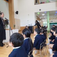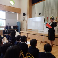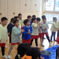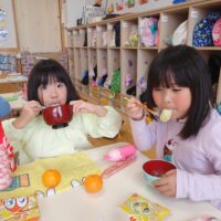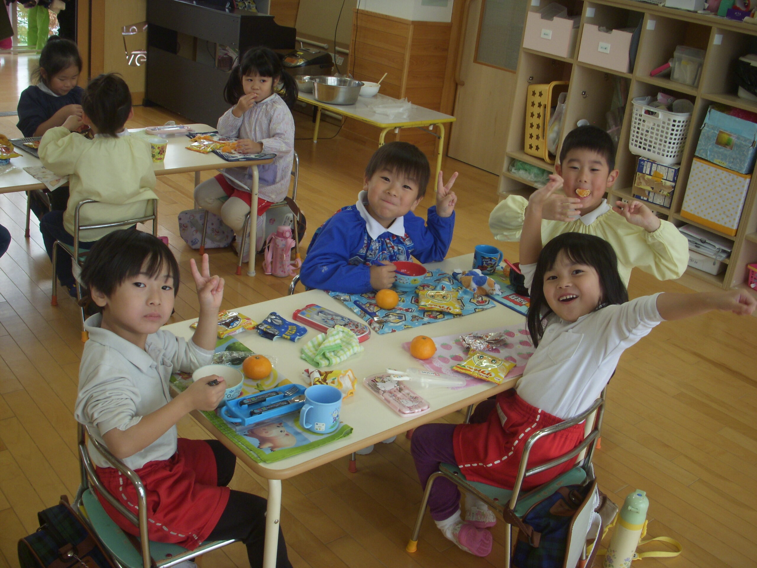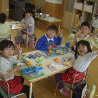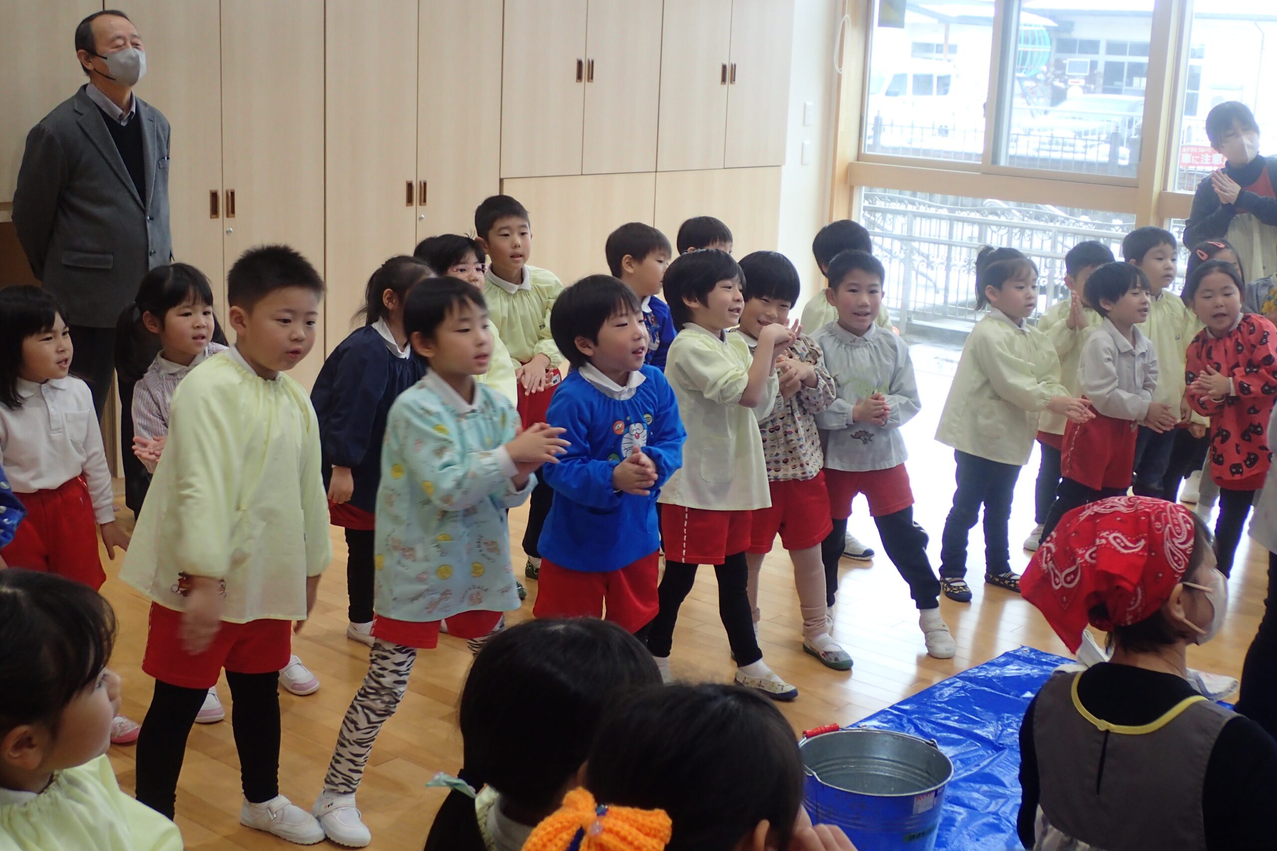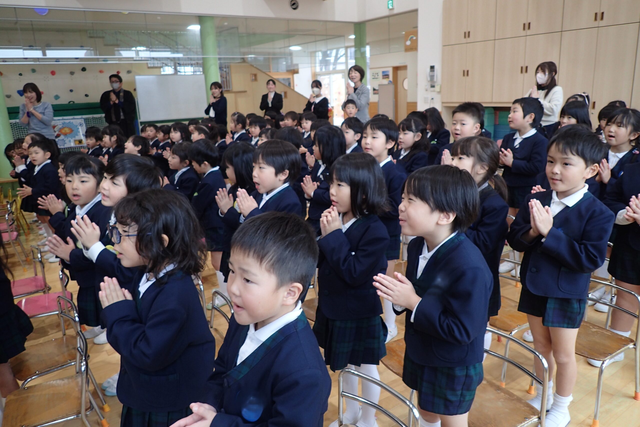 園長先生から「みんなは食べ物の命をいただいたり、お家の人にごはんを作ってもらったりして、周りの人のおかげで生きてるいるんだよ。目に見えない“お陰様”というありがとうの気持ちが大切なんだよ」というお話をいただきました。