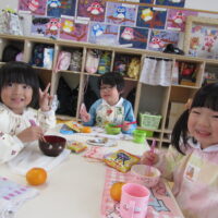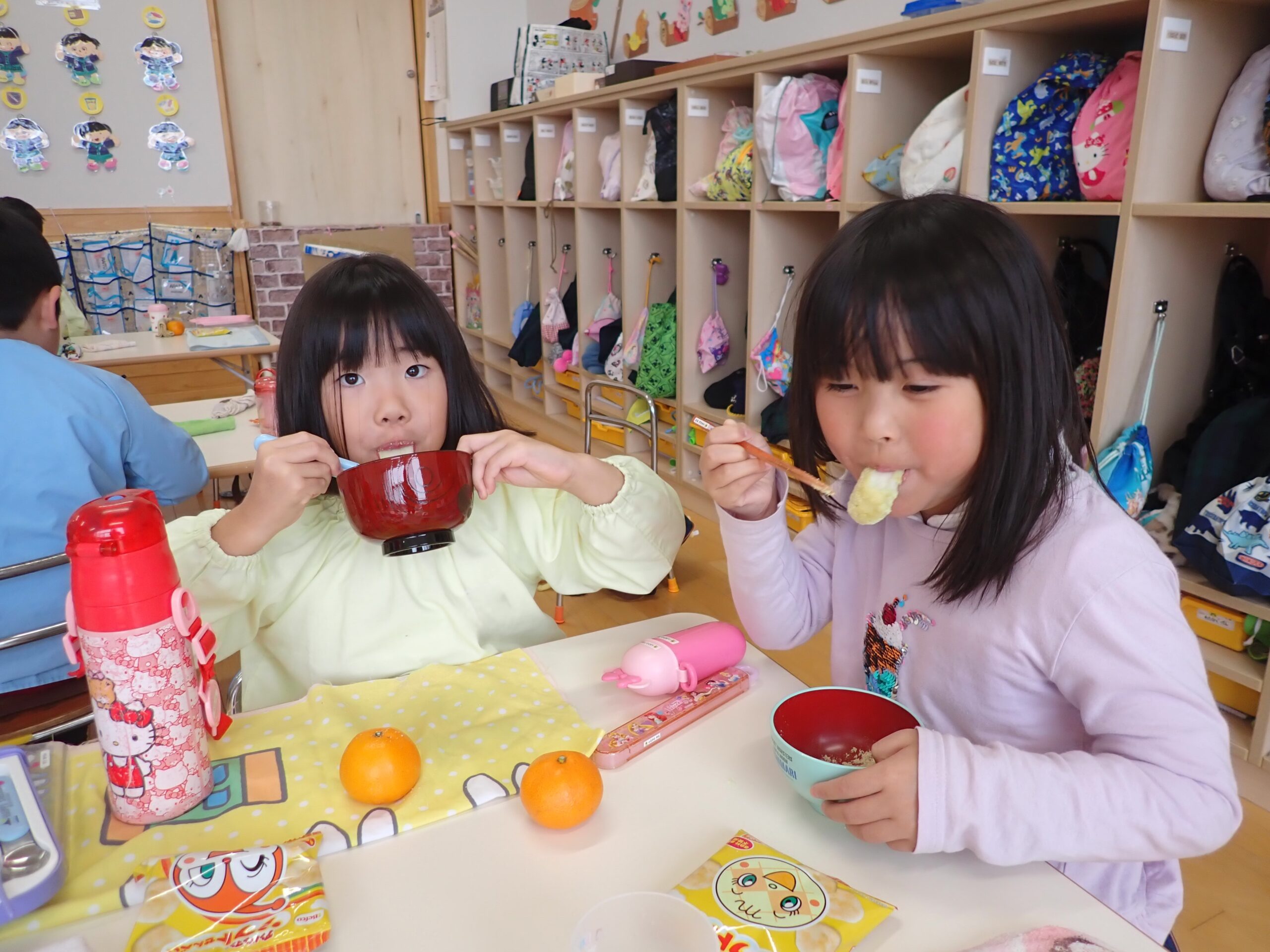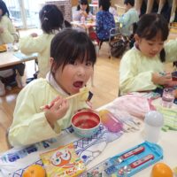 年長さん・年中さんは出来たてのきな粉餅をいただきました。「おいし~い🎵」