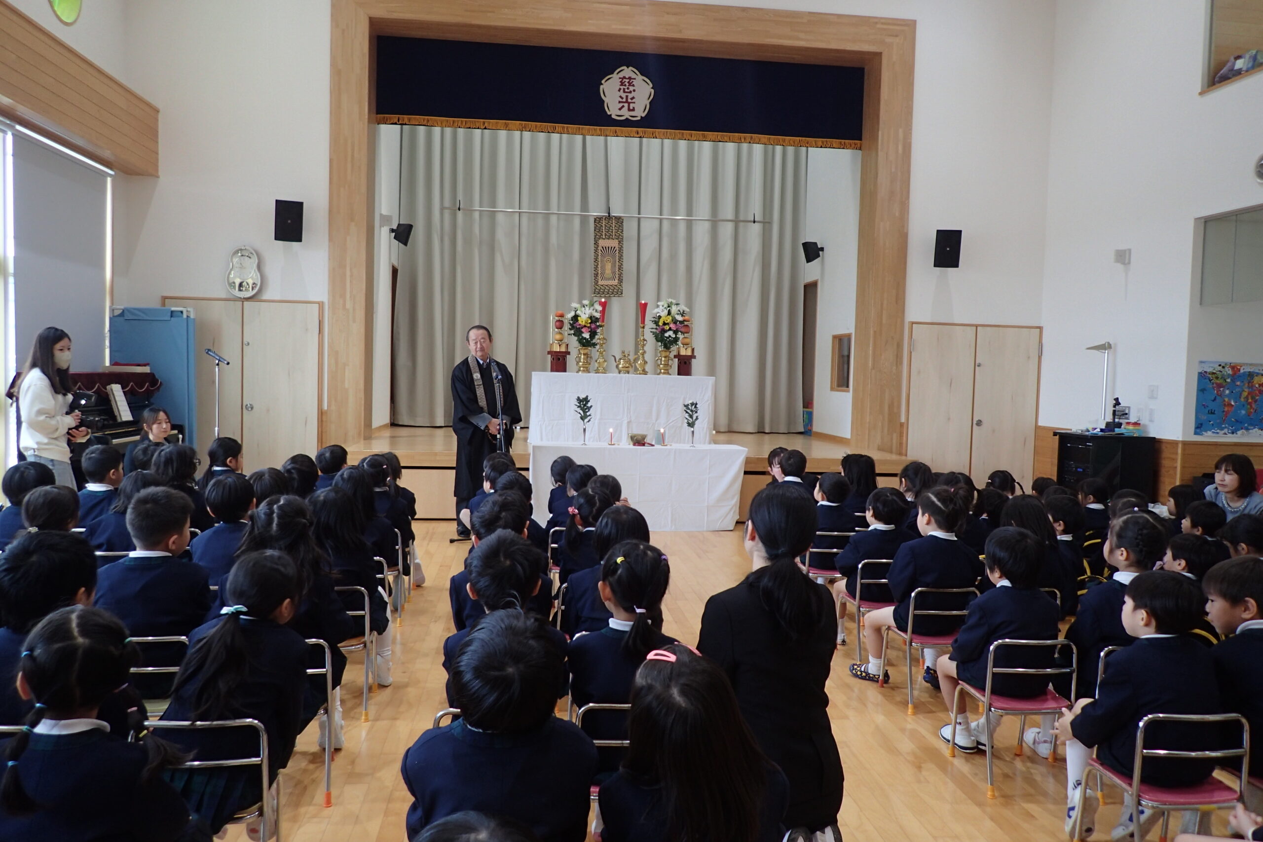 12月8日は、お釈迦様が「みんなが苦しんだり、心配したりせずに幸せに暮らすことはできないだろうか」とお考えになられ、世界中の人々が優しい心で幸せに暮らせるようにとお悟りを開いた日(成道会)です。その成道会の日をお祝いして、本日子ども報恩講を行いました。