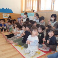 前回参加できなかったお友達を含め、計4名のお友達の誕生日をみんなでお祝いをしました☆みんなの前に座る事に緊張している子もいましたが、「おめでと~!」と言われるとちょっぴり照れながらも嬉しそうな表情が見られましたよ😊