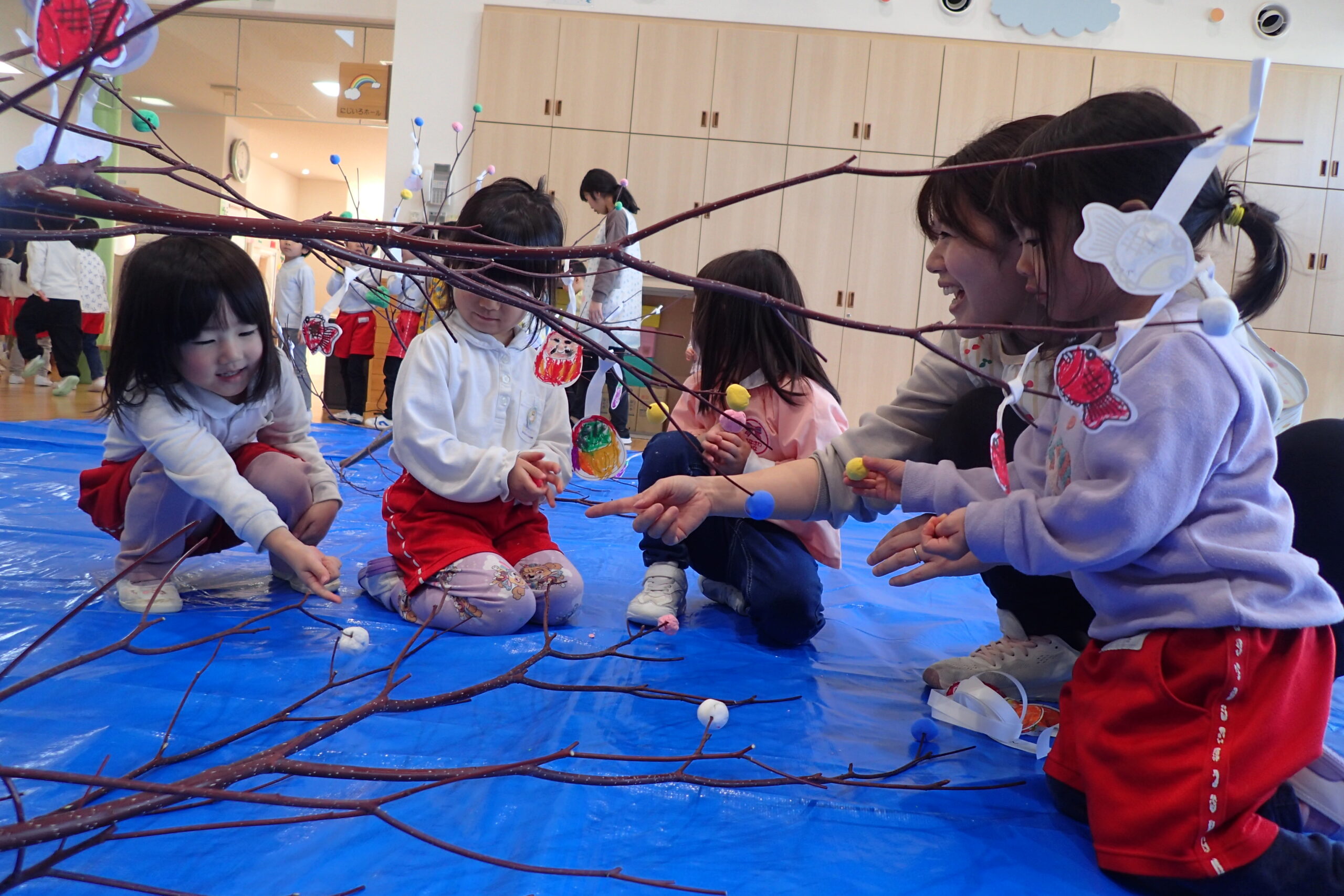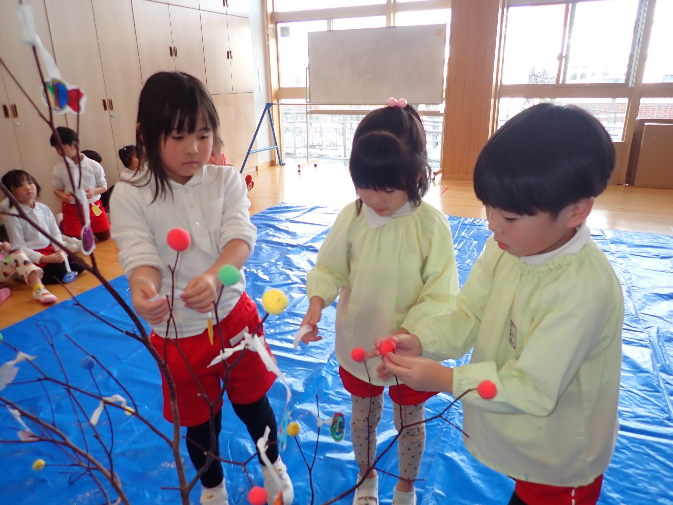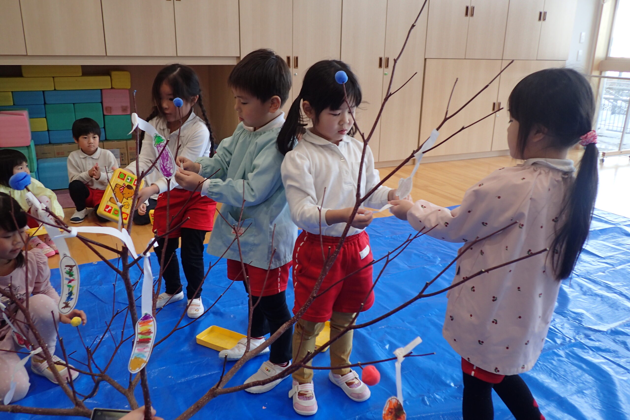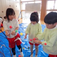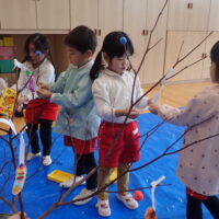 2026.01.13 年中年少年長 だんごさし 今年一年 みんなが元気に笑顔で過ごせるよう願いをこめながら 団子や食べ物、鯛、だるま、小判などの飾りを作り、ミズキの木に飾りました☺️ いろとりどりのみずきの木に「うわ~!きれい✨」 こども園が華やかな雰囲気になりました。 慈光第二こども園のお友達、 ご家族の皆さんが健康で幸せにあふれる一年となりますように😌 一覧へ戻る