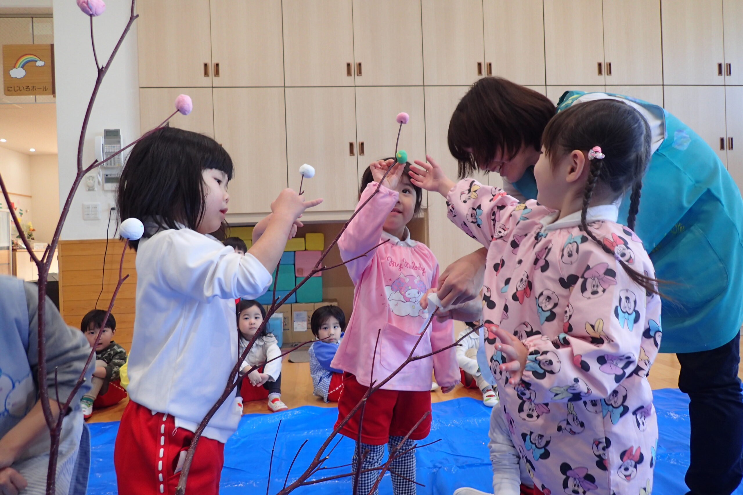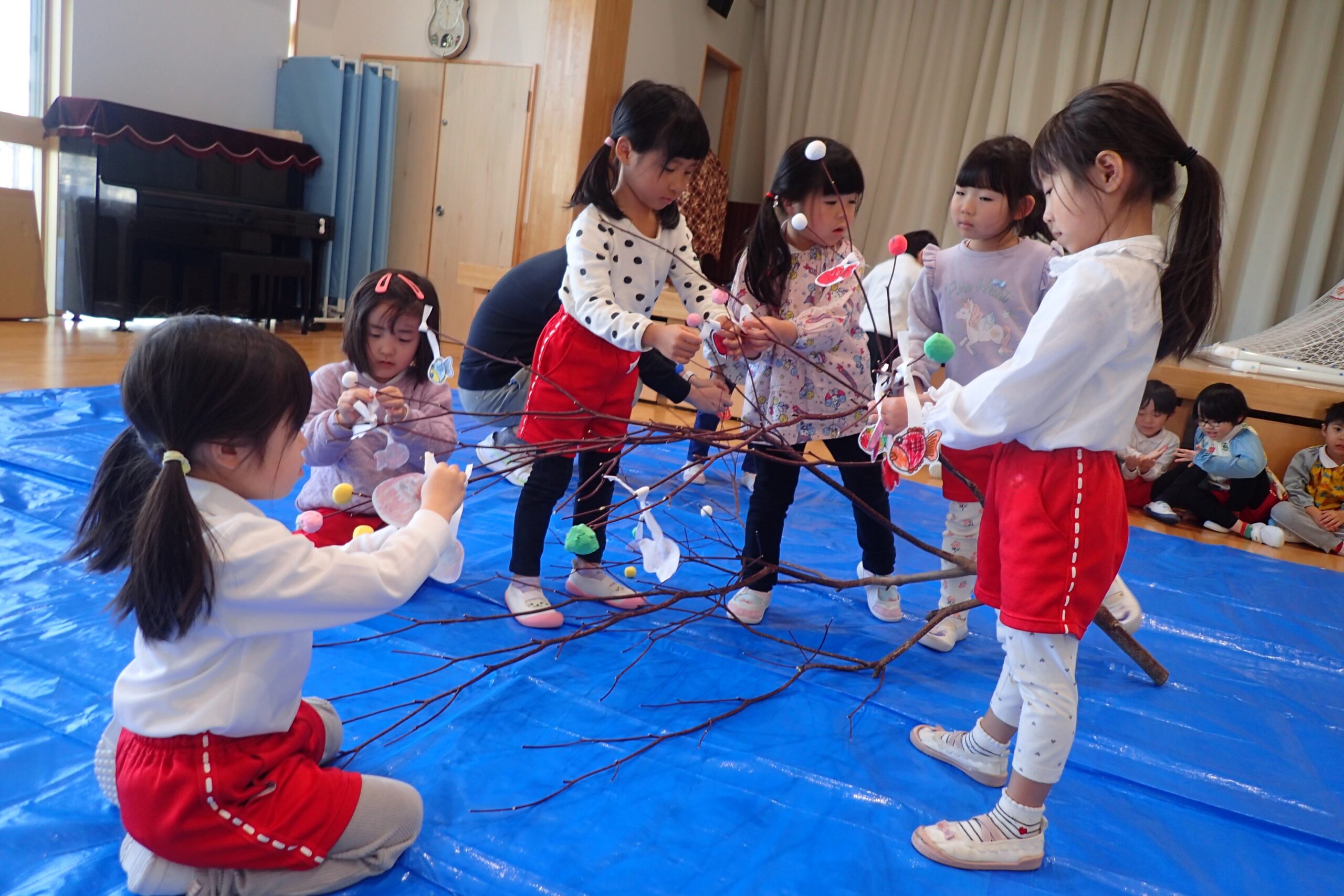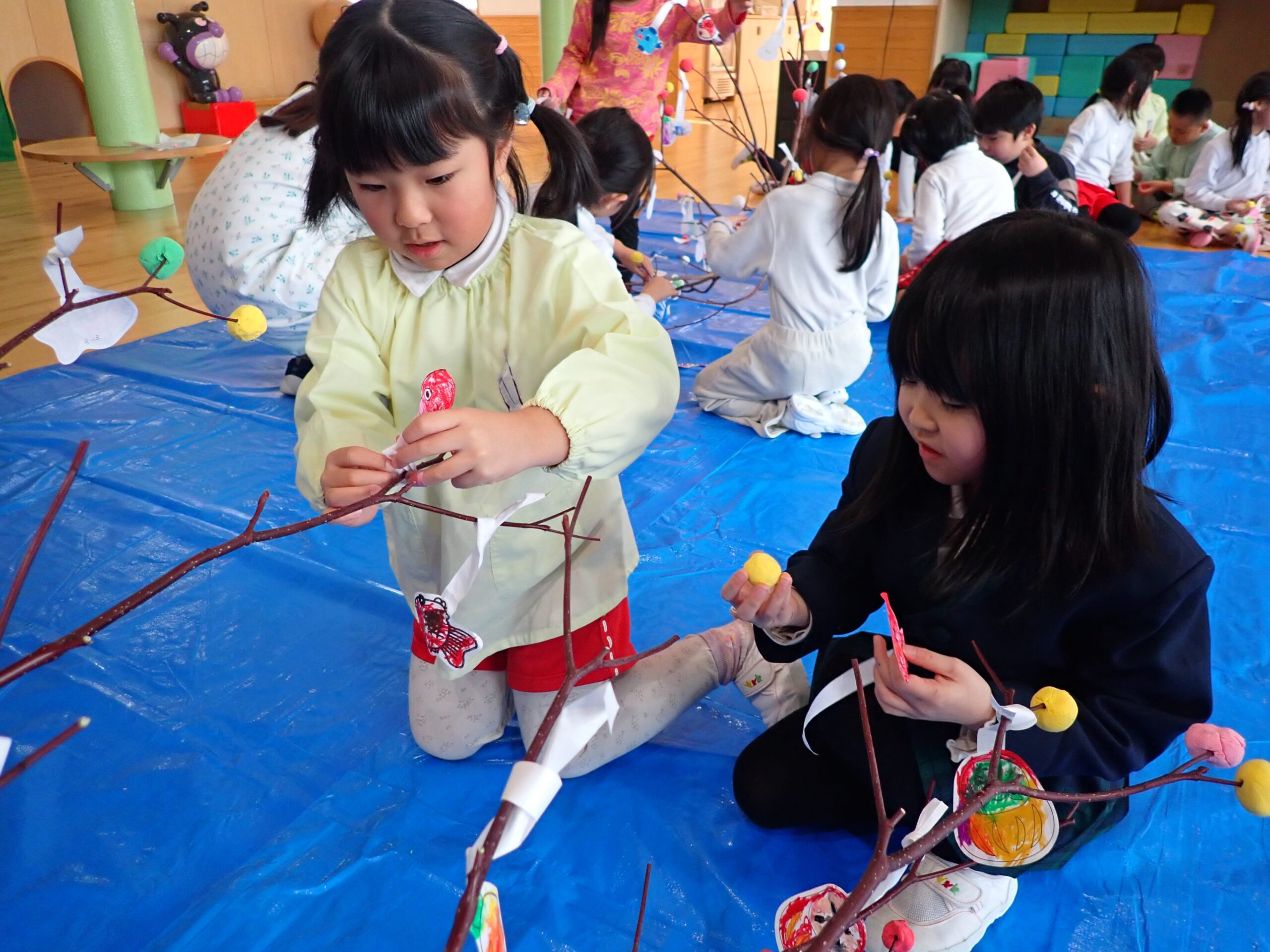 2026.01.13 年中年少年長 だんごさし 今年一年 みんなが元気に笑顔で過ごせるよう願いをこめながら 団子や食べ物、鯛、だるま、小判などの飾りを作り、ミズキの木に飾りました☺️ いろとりどりのみずきの木に「うわ~!きれい✨」 こども園が華やかな雰囲気になりました。 慈光第二こども園のお友達、 ご家族の皆さんが健康で幸せにあふれる一年となりますように😌 一覧へ戻る