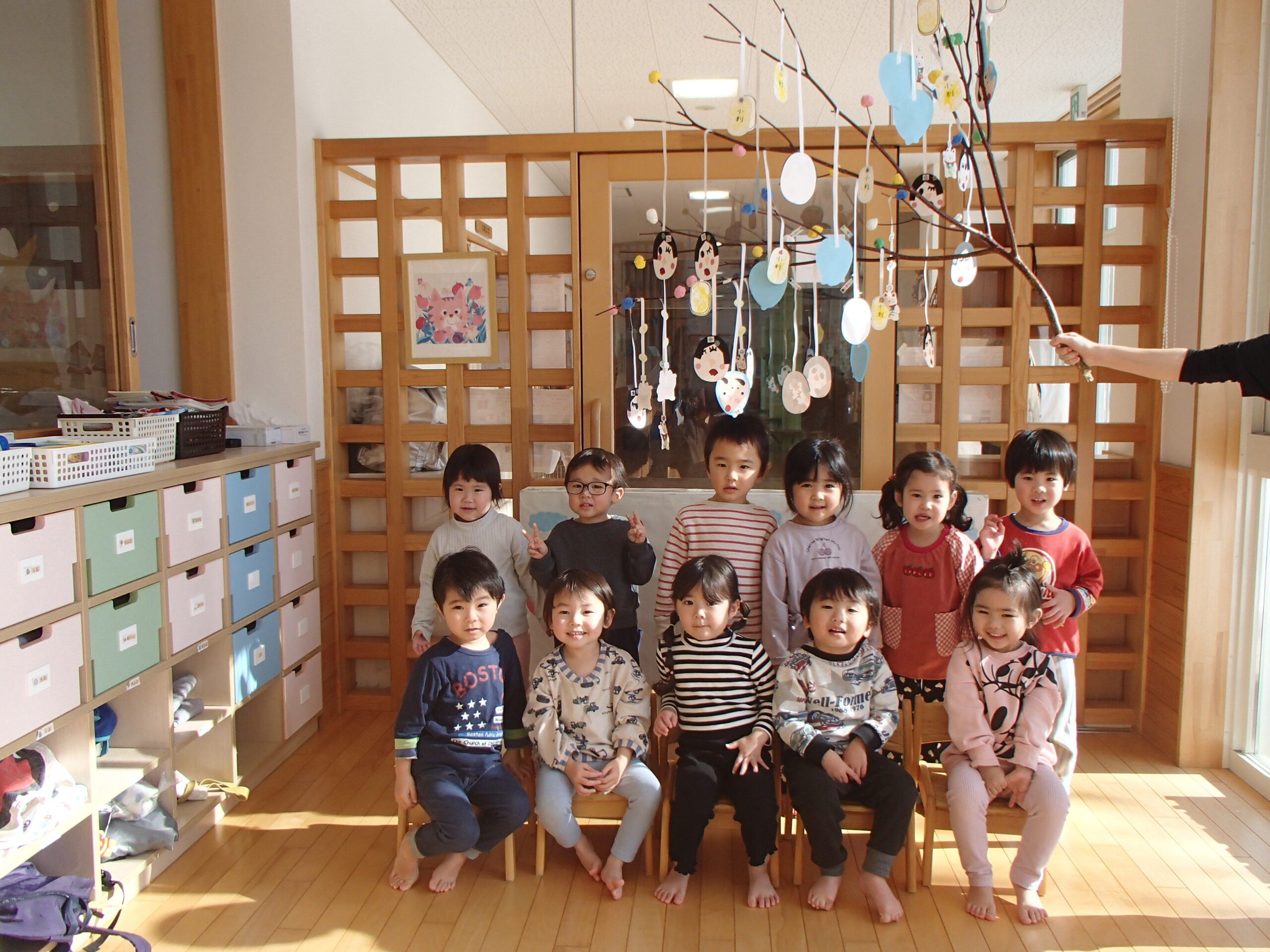 2026.01.13 保育園部 だんごさし 今日は、だんごさしが行われました。「健康に過ごせますように」と願いを込めながら、赤や黄色、青や緑など色とりどりの団子を作りました。作った団子は各クラスで作った, ひょっとこやおかめ、小判や招き猫などの飾りと一緒に、ミズキの木に飾り付けました! 今年もみんなが元気に過ごせますように✨ ※後日、制作の様子をアルバムに掲載するのでお楽しみに☆ 一覧へ戻る