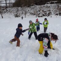 雪合戦を楽しんだ後は、お手伝いのお父さん、お母さんに「ありがとうございました」と挨拶をして園に帰ってきました。帰ってきてからも「楽しかった~💓」「また行きたいね✨」と会話を弾ませていた子ども達でした。