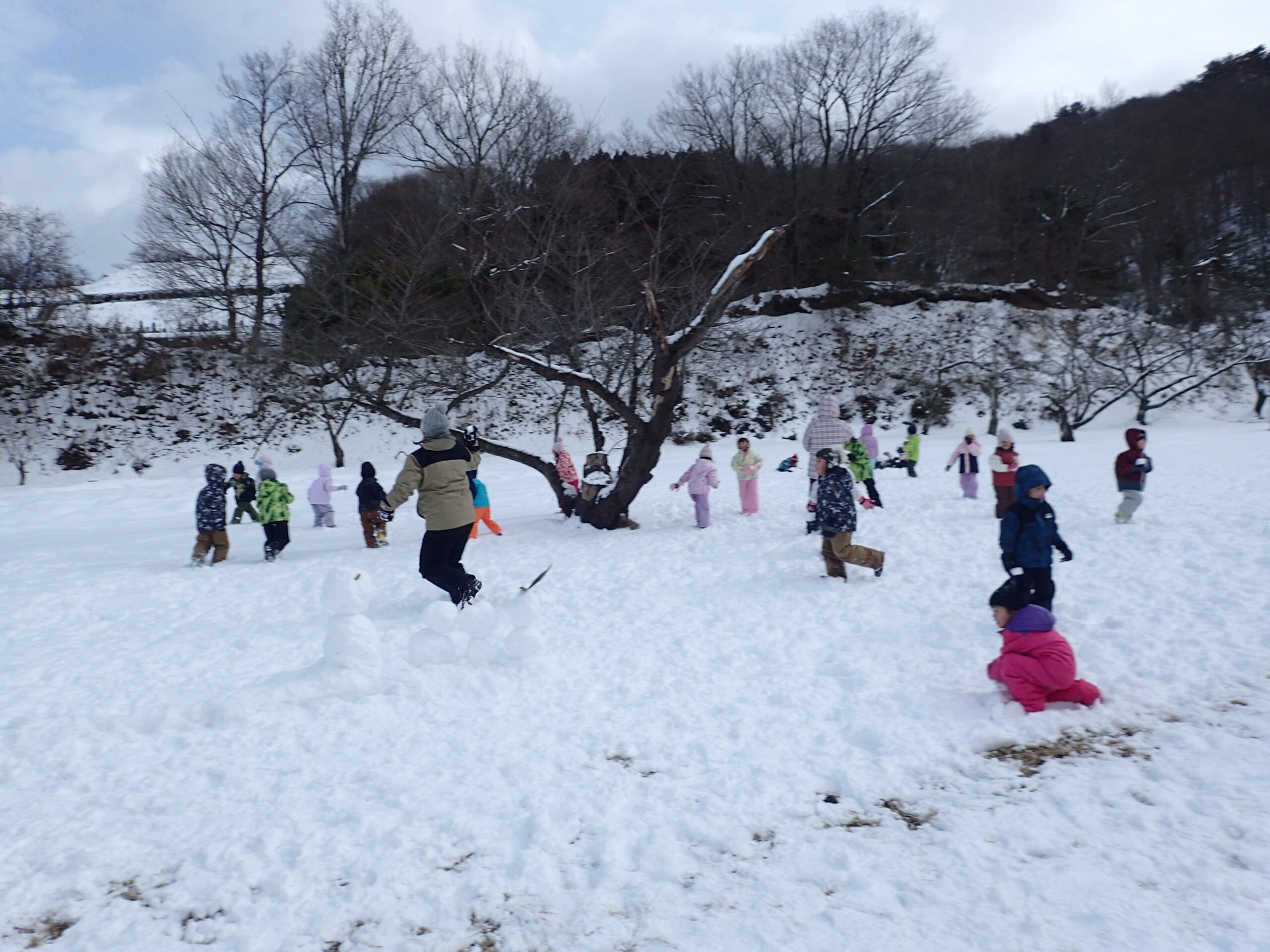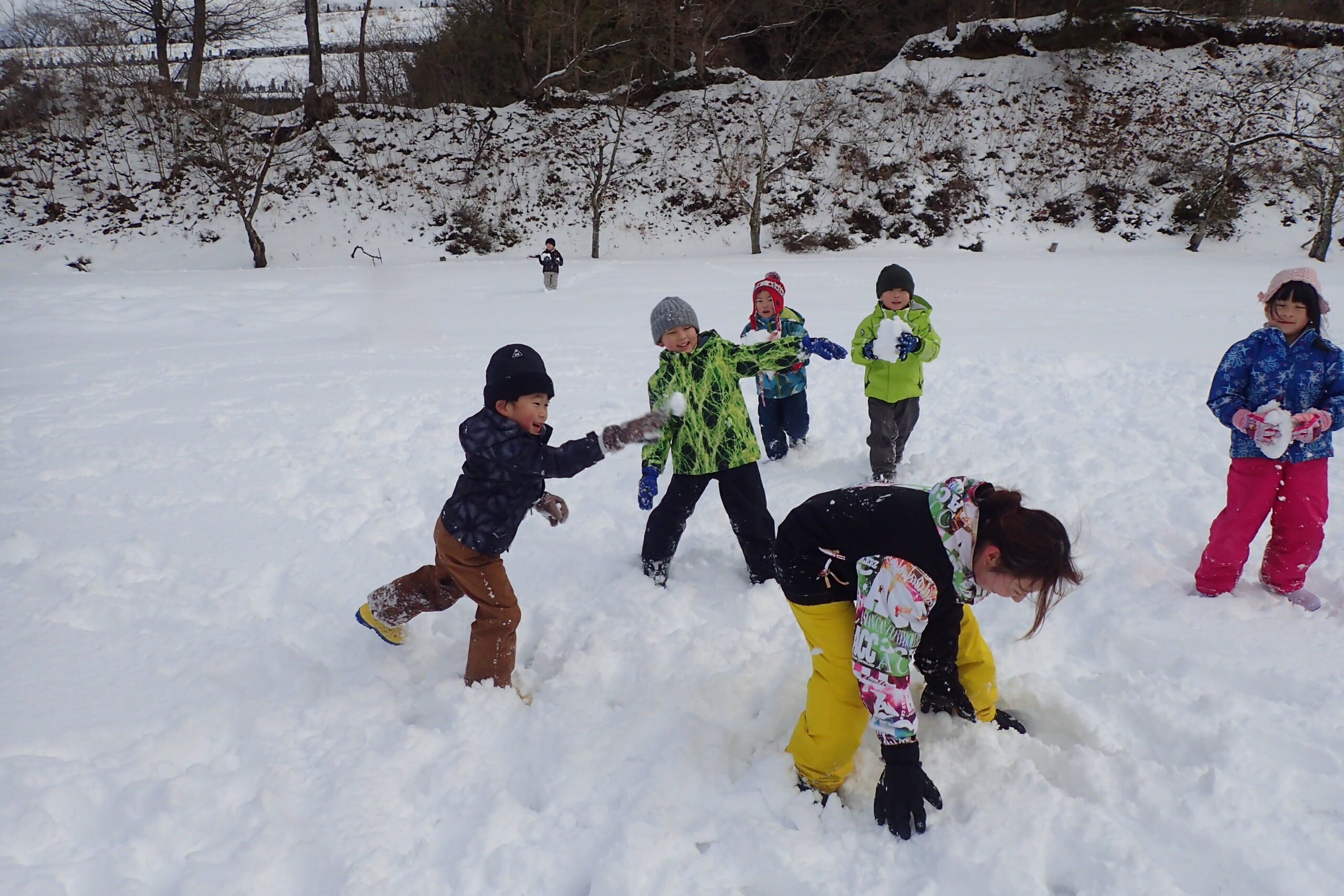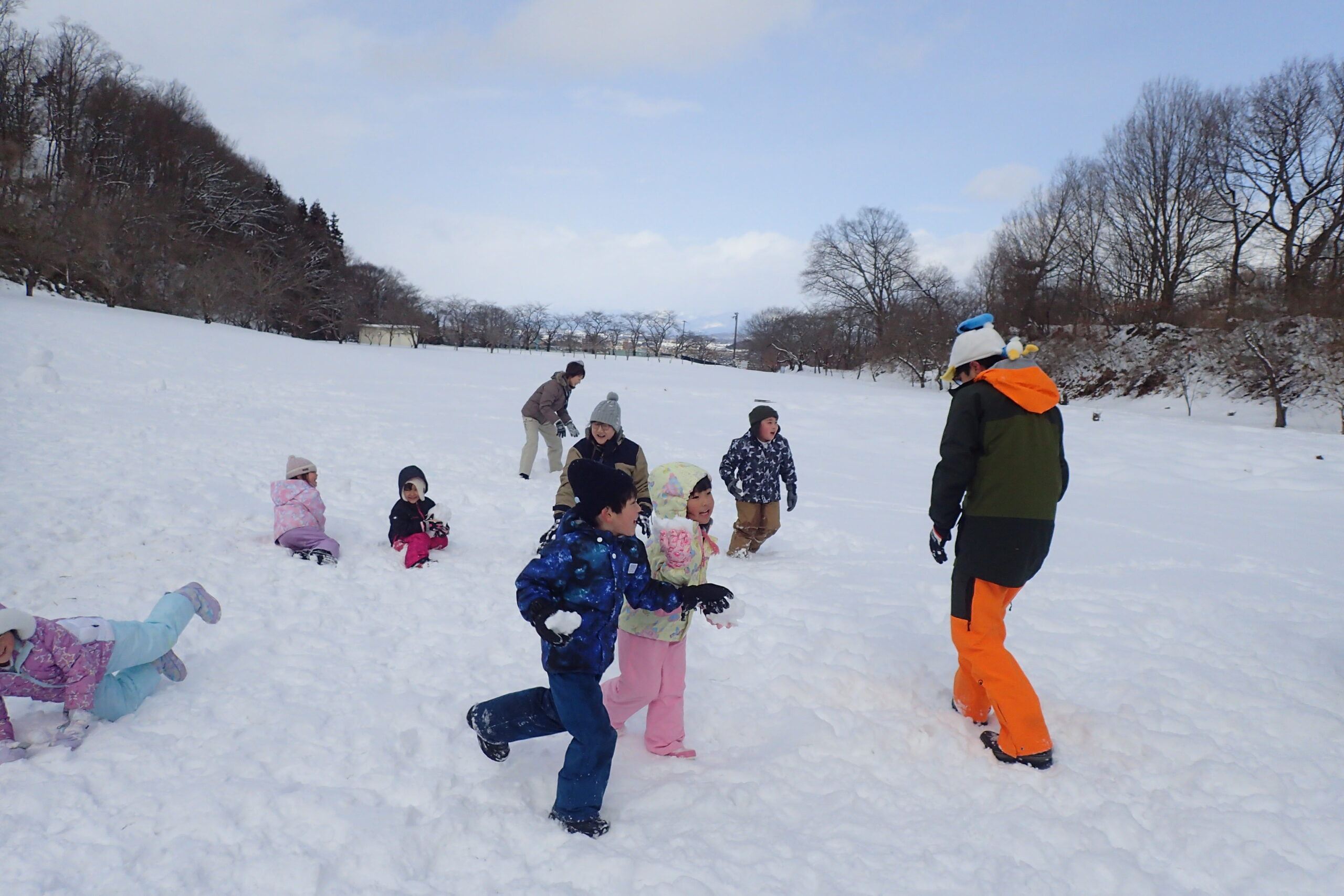最後は皆で雪玉を作り、大人vs年長さん全員で雪合戦です!!⛄