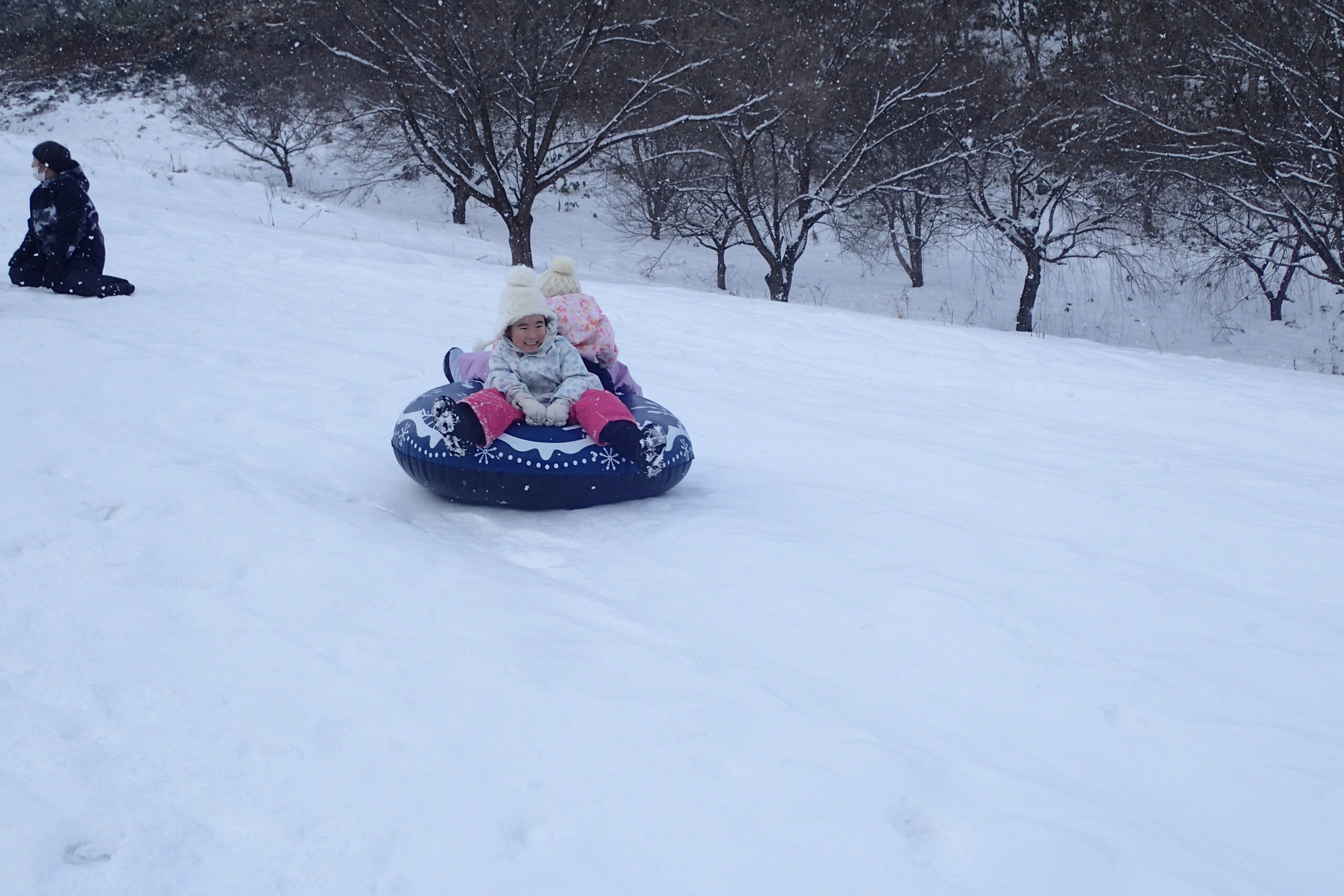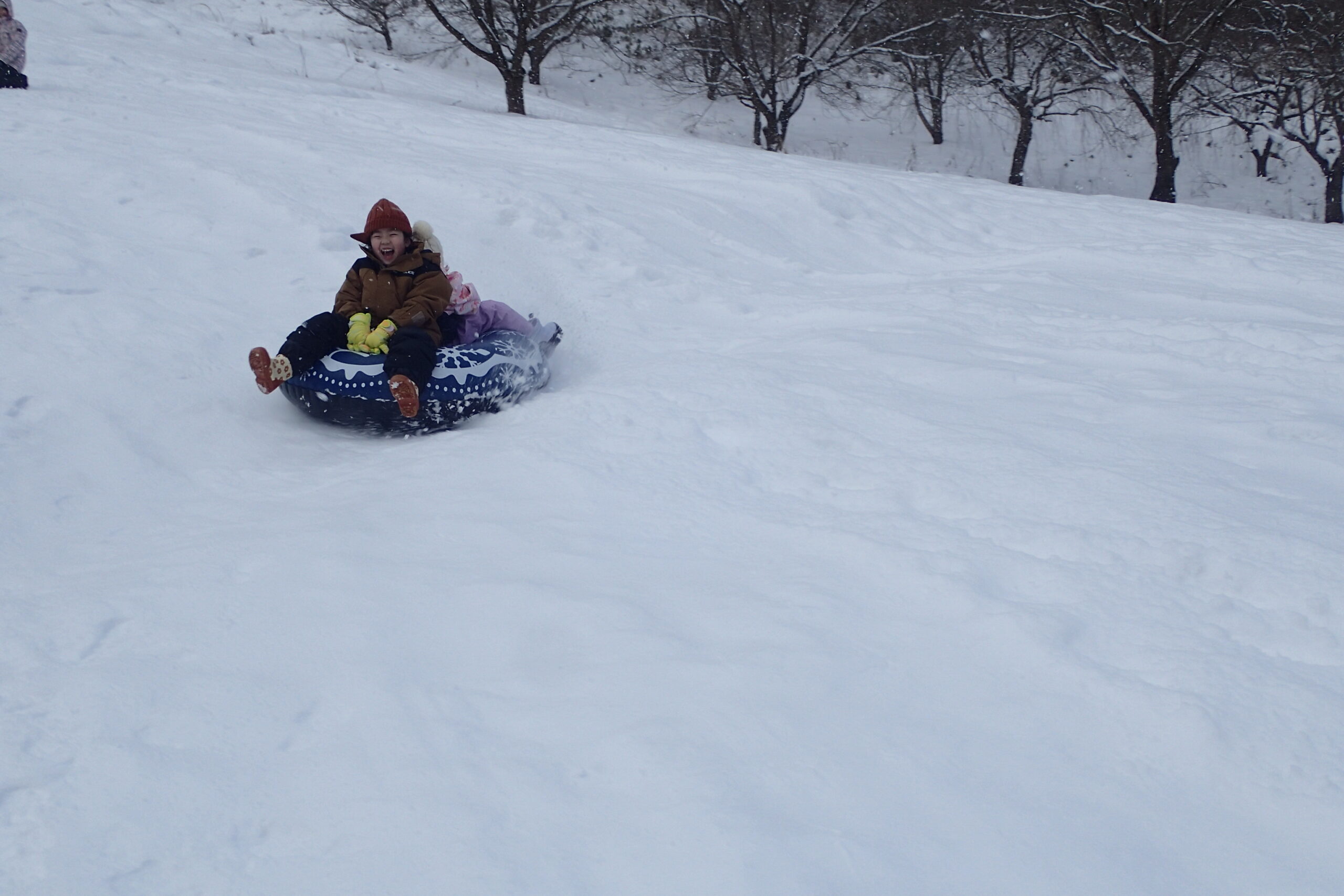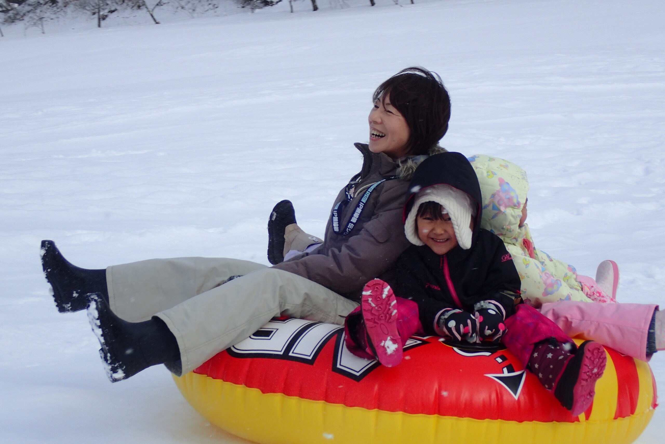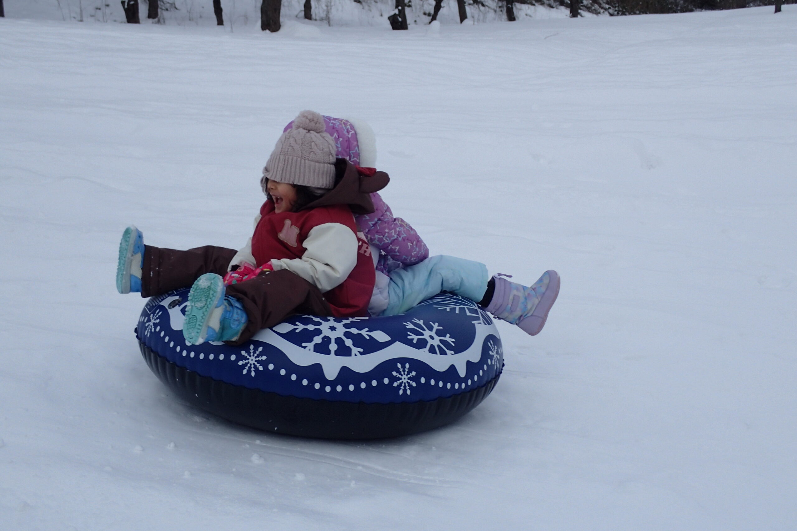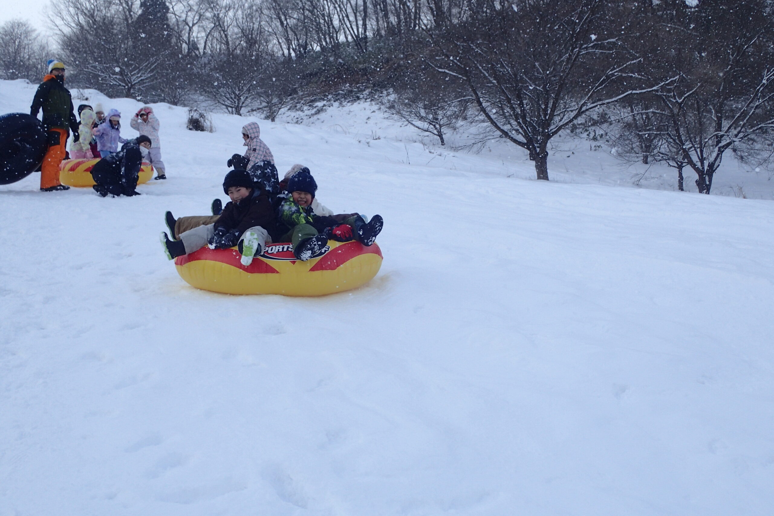 チューブそりは数が限られているため長い列ができましたが、スピードが出ても安定感があり、ジェットコースターのように一気に下まで滑り、友達と2人乗り4人乗りで楽しんでいました。