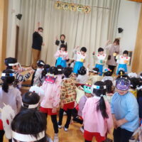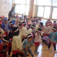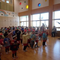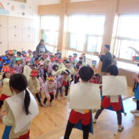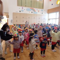 「みんなが健康でしあわせにすごせますように」と願いを込めて、園でも豆まき集会を行いました。
