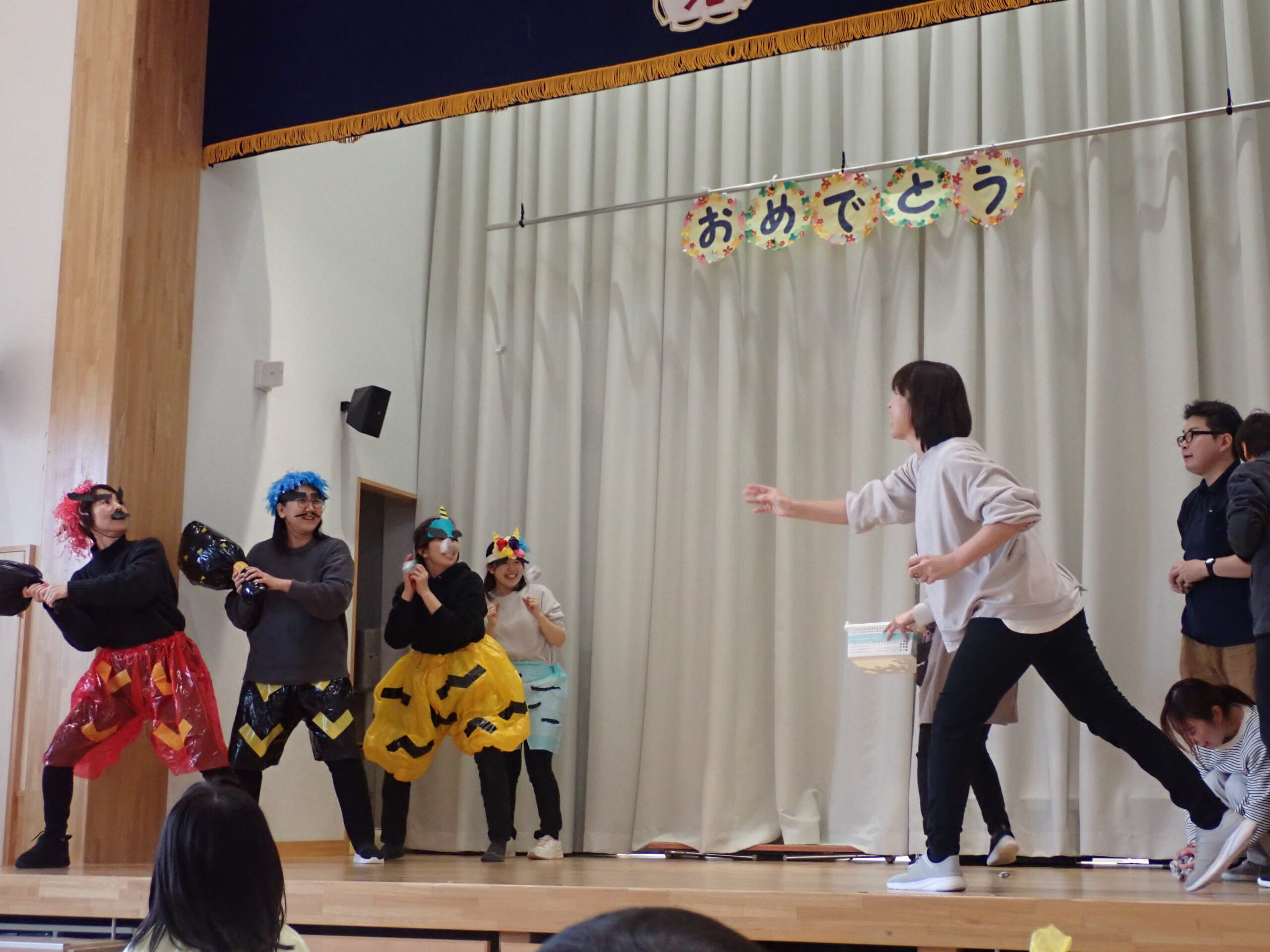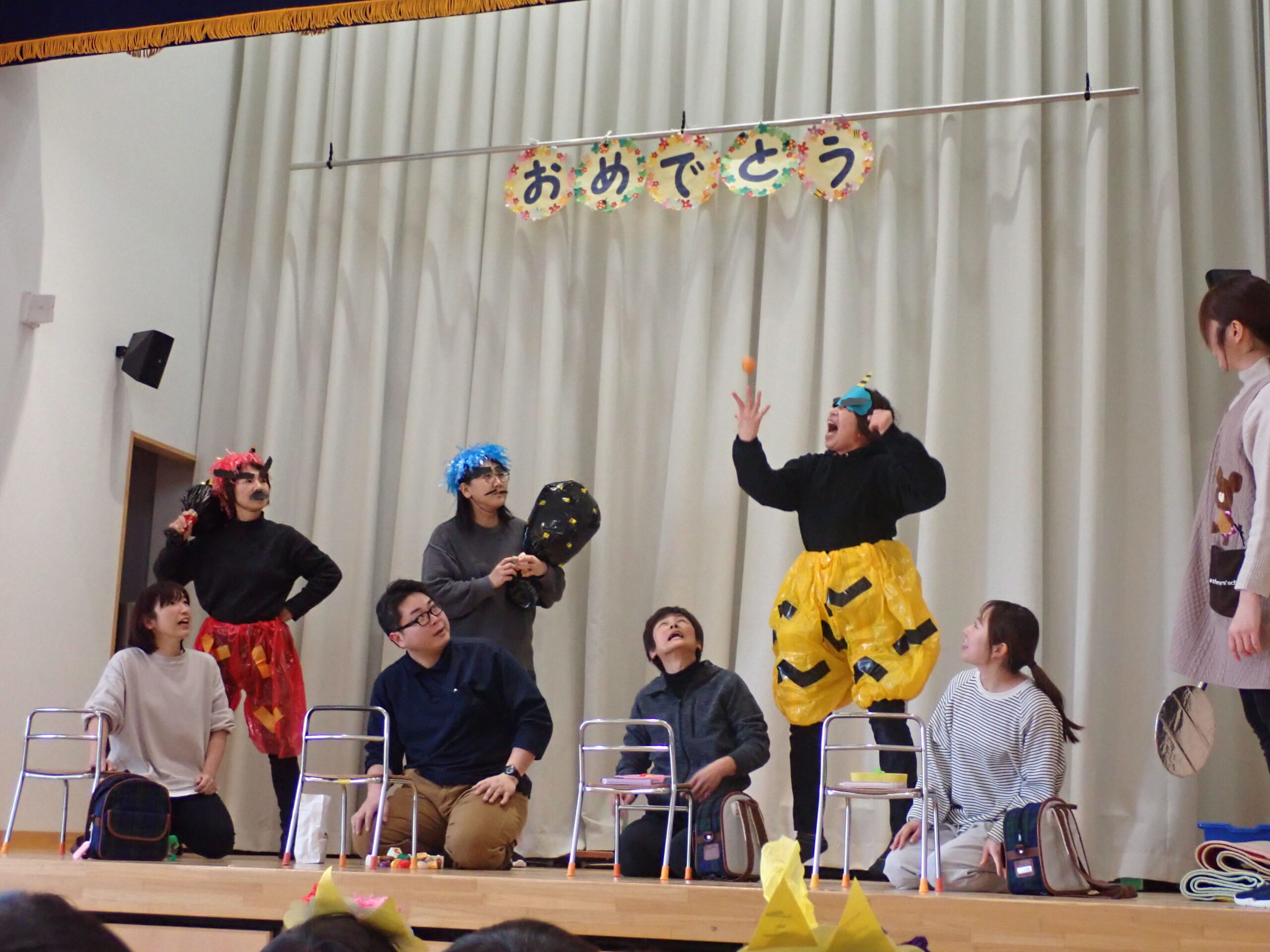 鬼たちが!!!最後は豆まきをしてお腹の中にいる鬼を追い出すという劇でした。