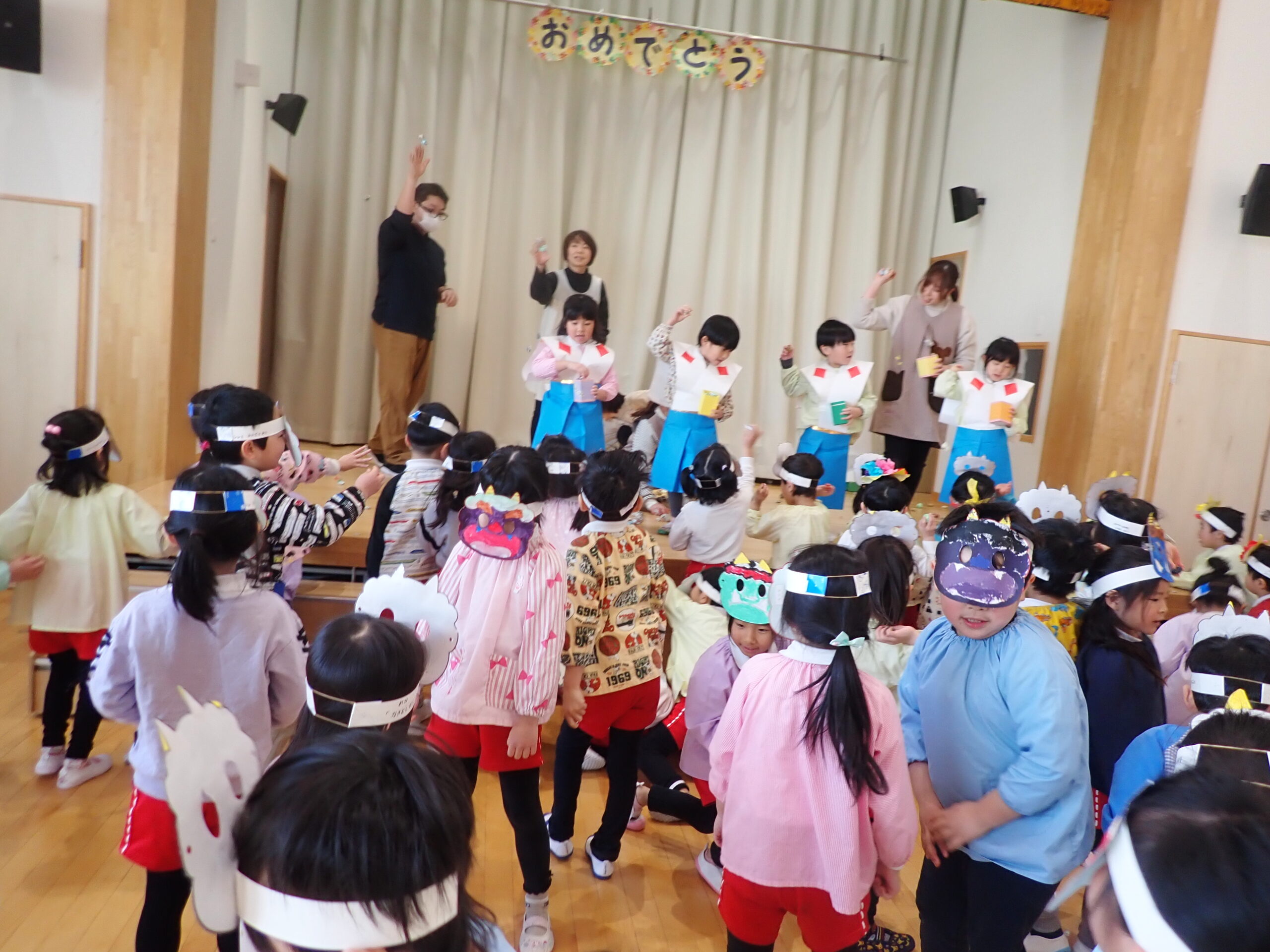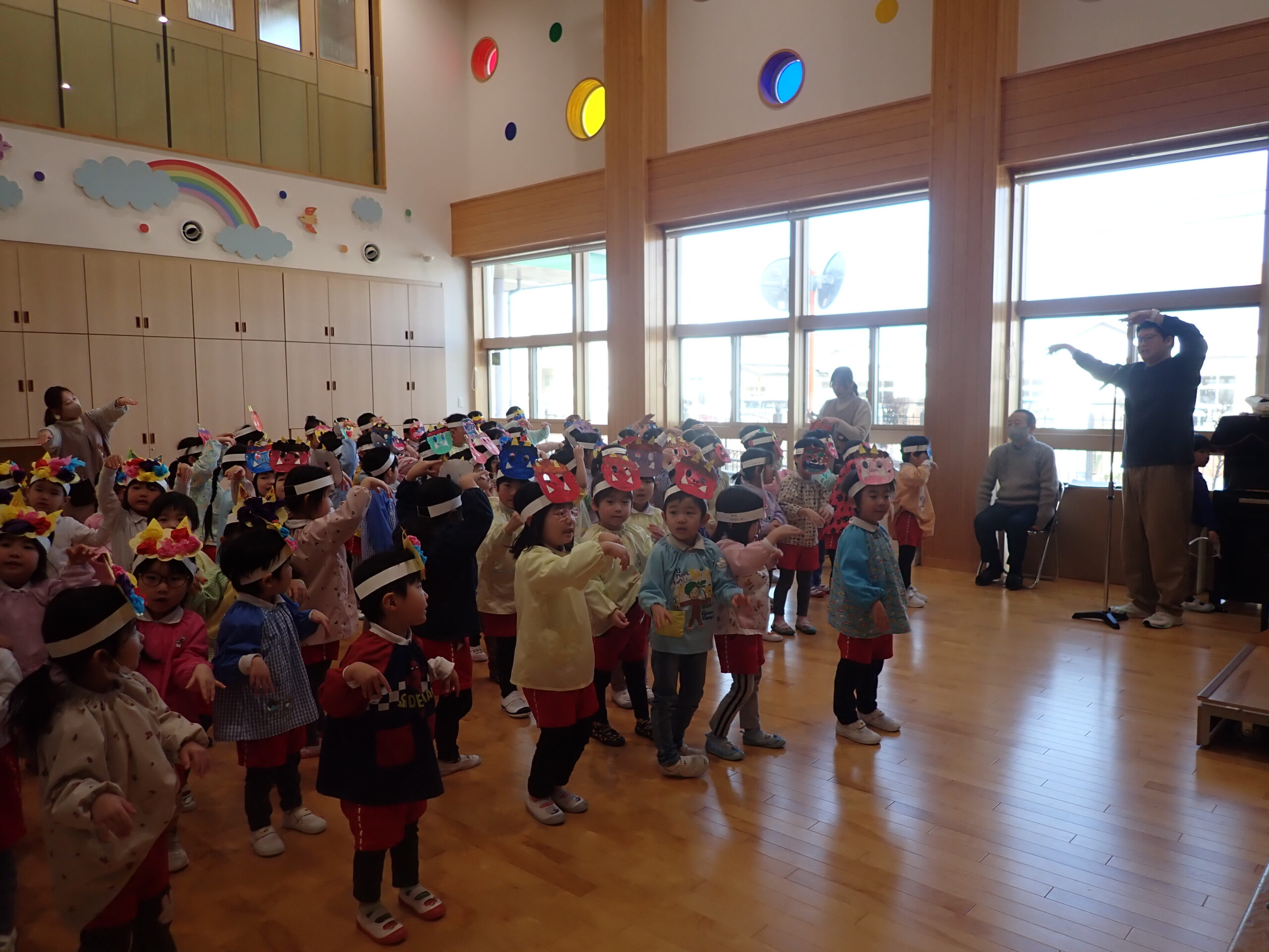 みんなで「豆まきの歌」を元気いっぱい歌い🎵