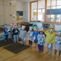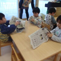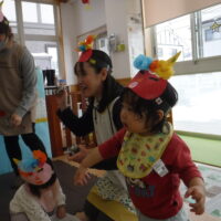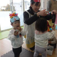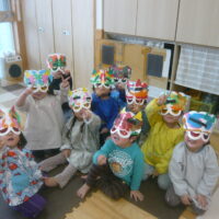 節分に向けて各クラスで鬼のお面の制作をしたり、遊びの中で「おにはそとー!ふくはうちー!」と豆まきを楽しんで過ごしていました♪