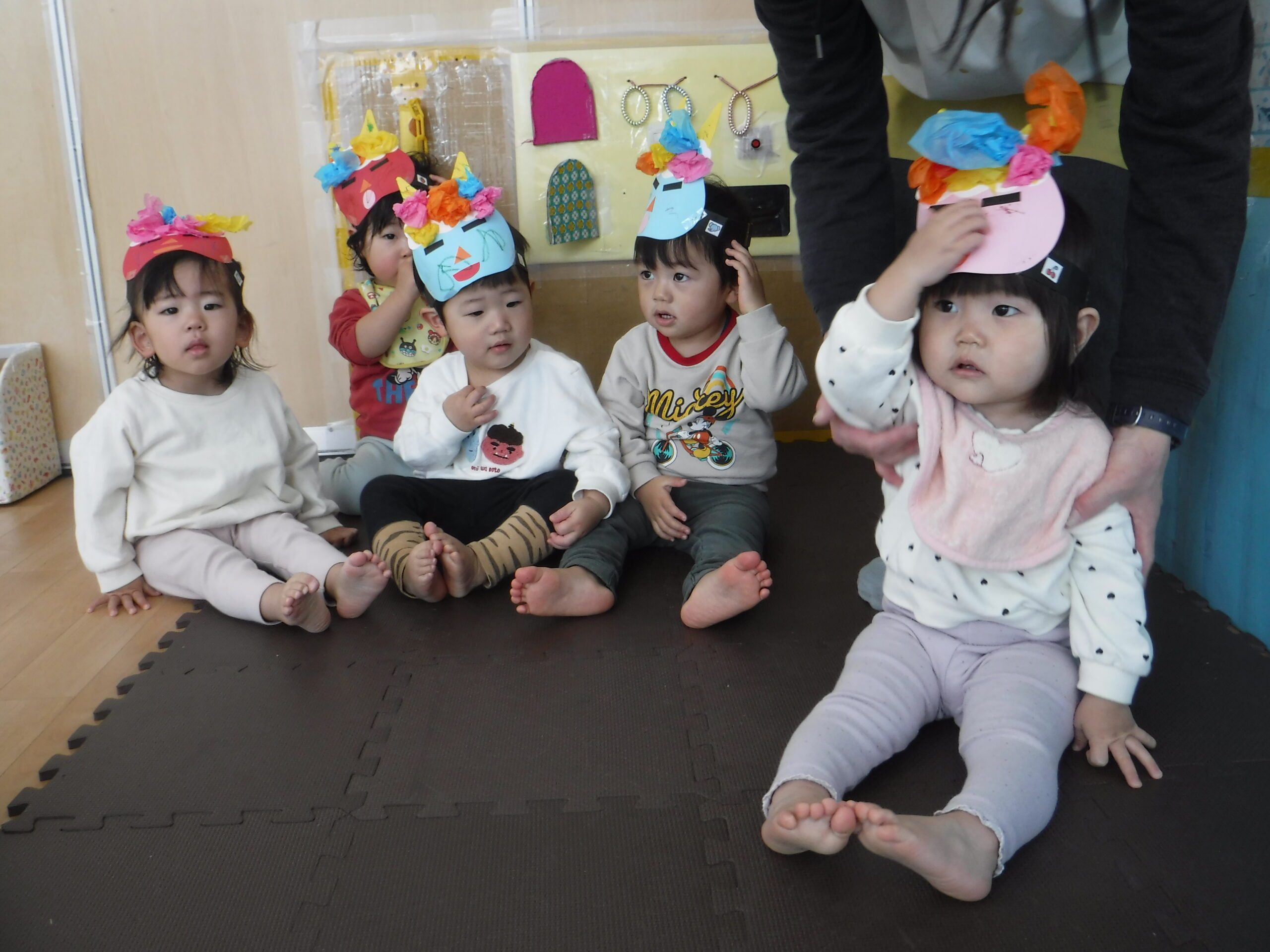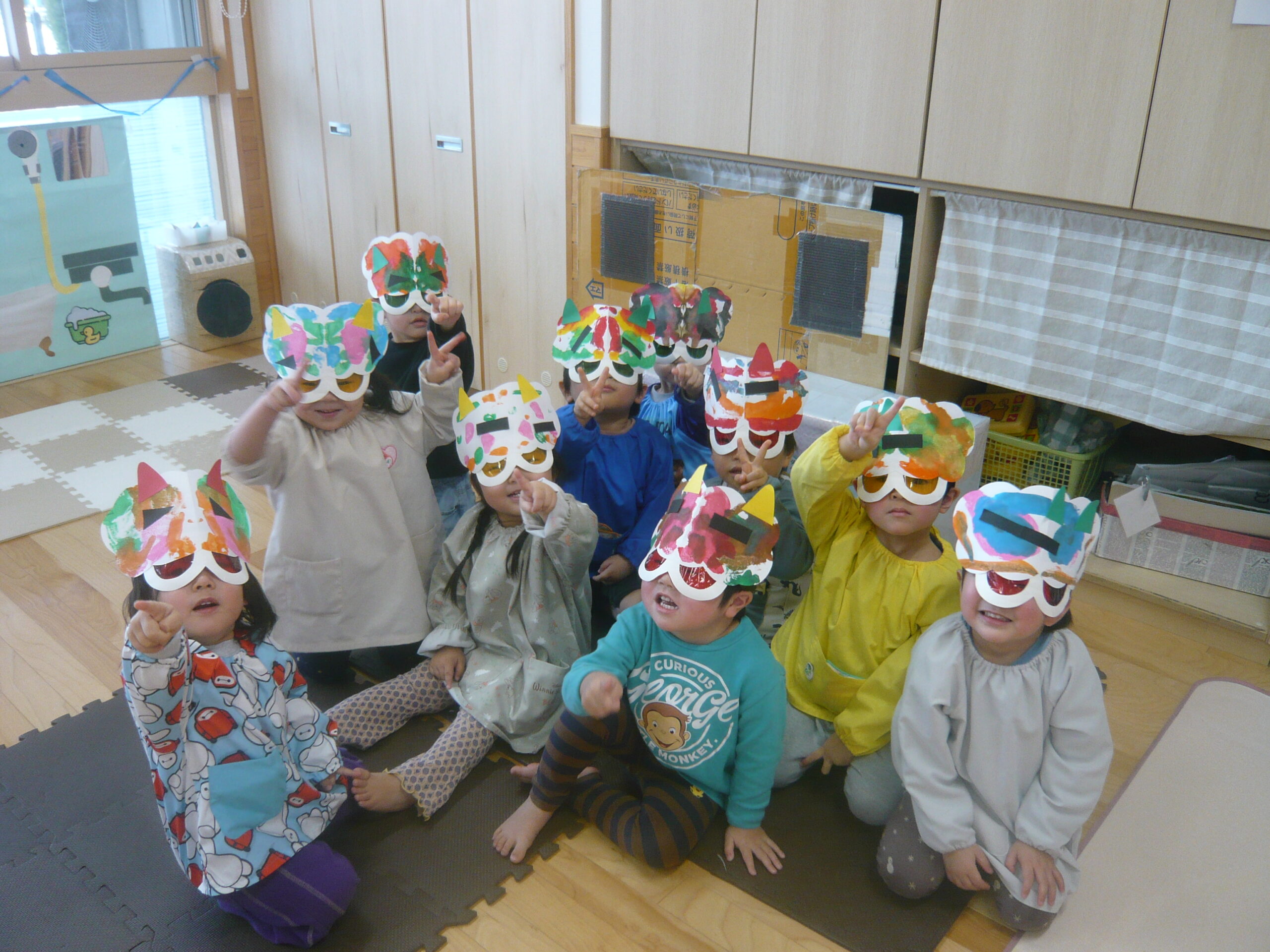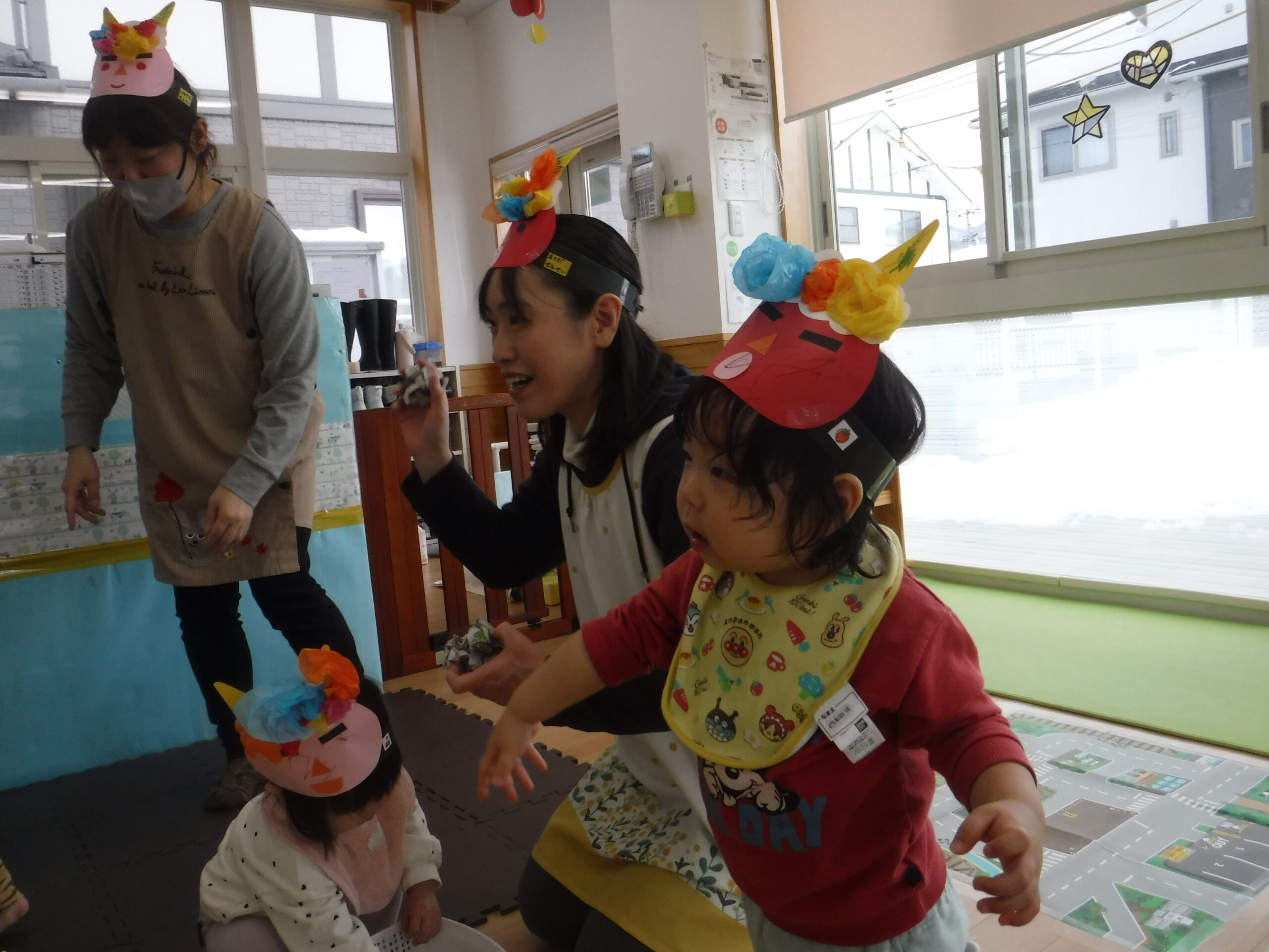 節分に向けて各クラスで鬼のお面の制作をしたり、遊びの中で「おにはそとー!ふくはうちー!」と豆まきを楽しんで過ごしていました♪
