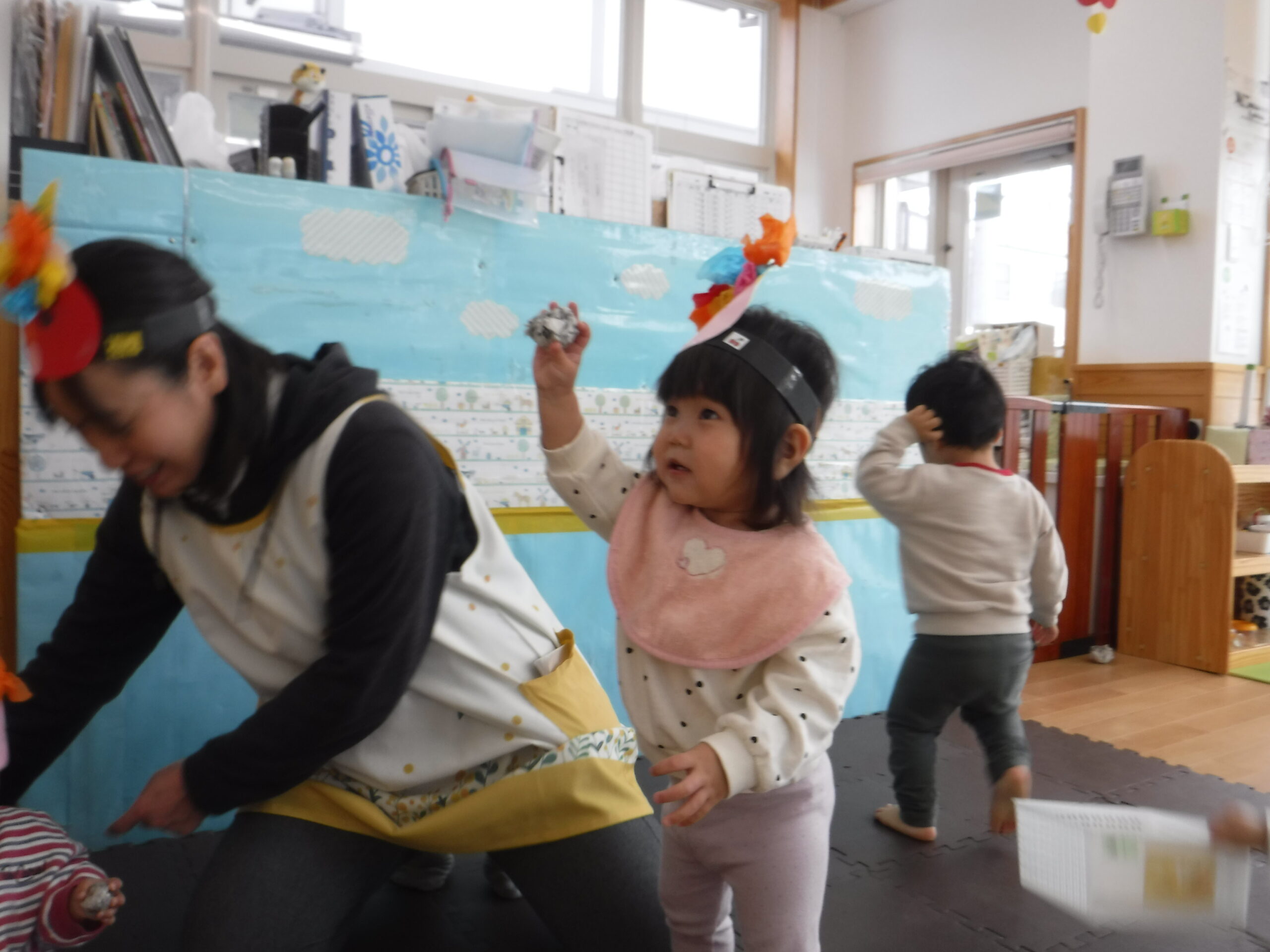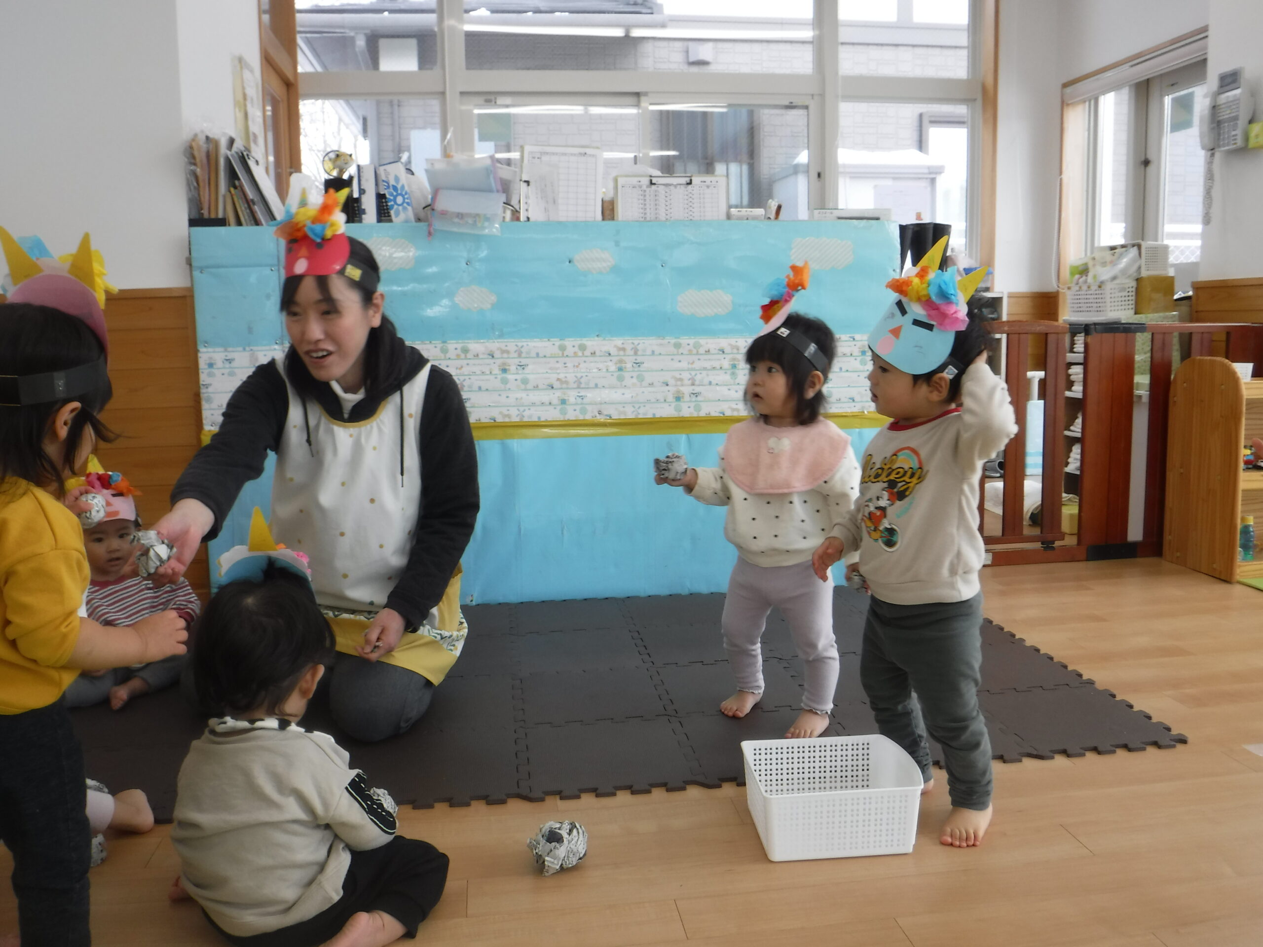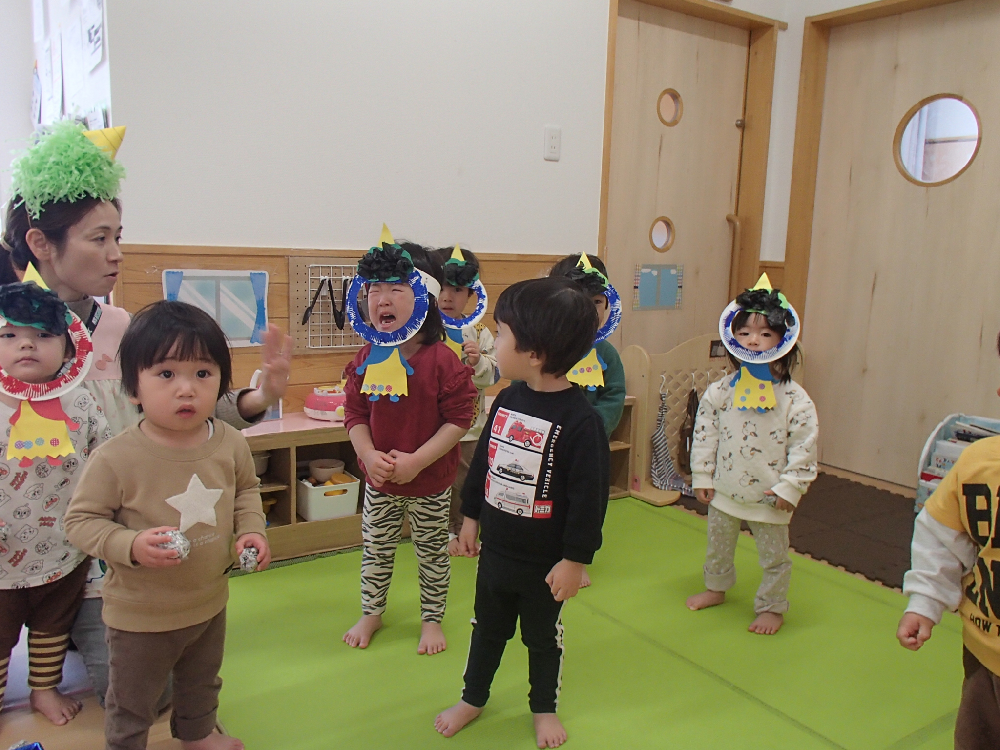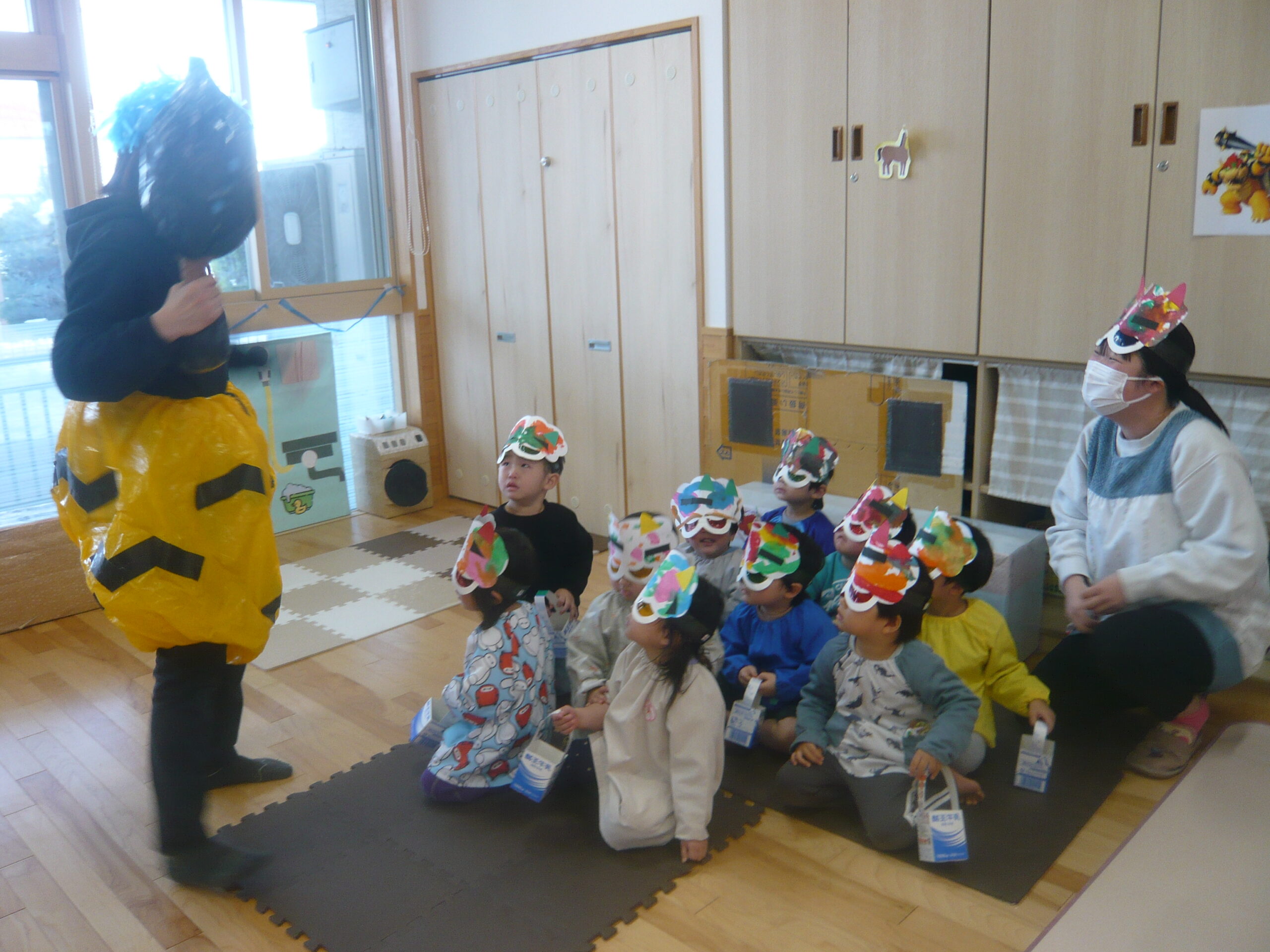 節分に向けて各クラスで鬼のお面の制作をしたり、遊びの中で「おにはそとー!ふくはうちー!」と豆まきを楽しんで過ごしていました♪