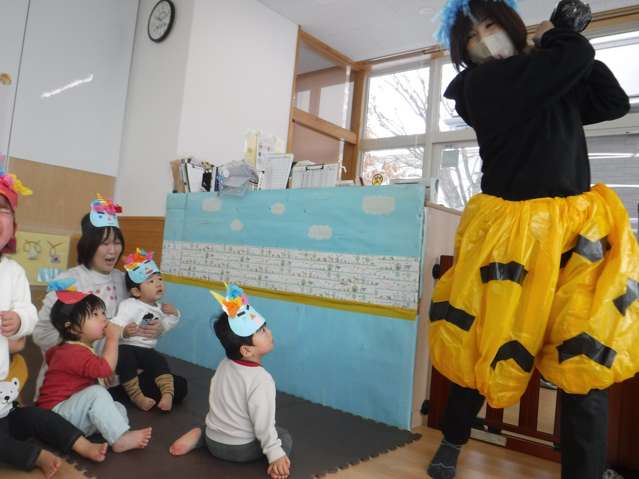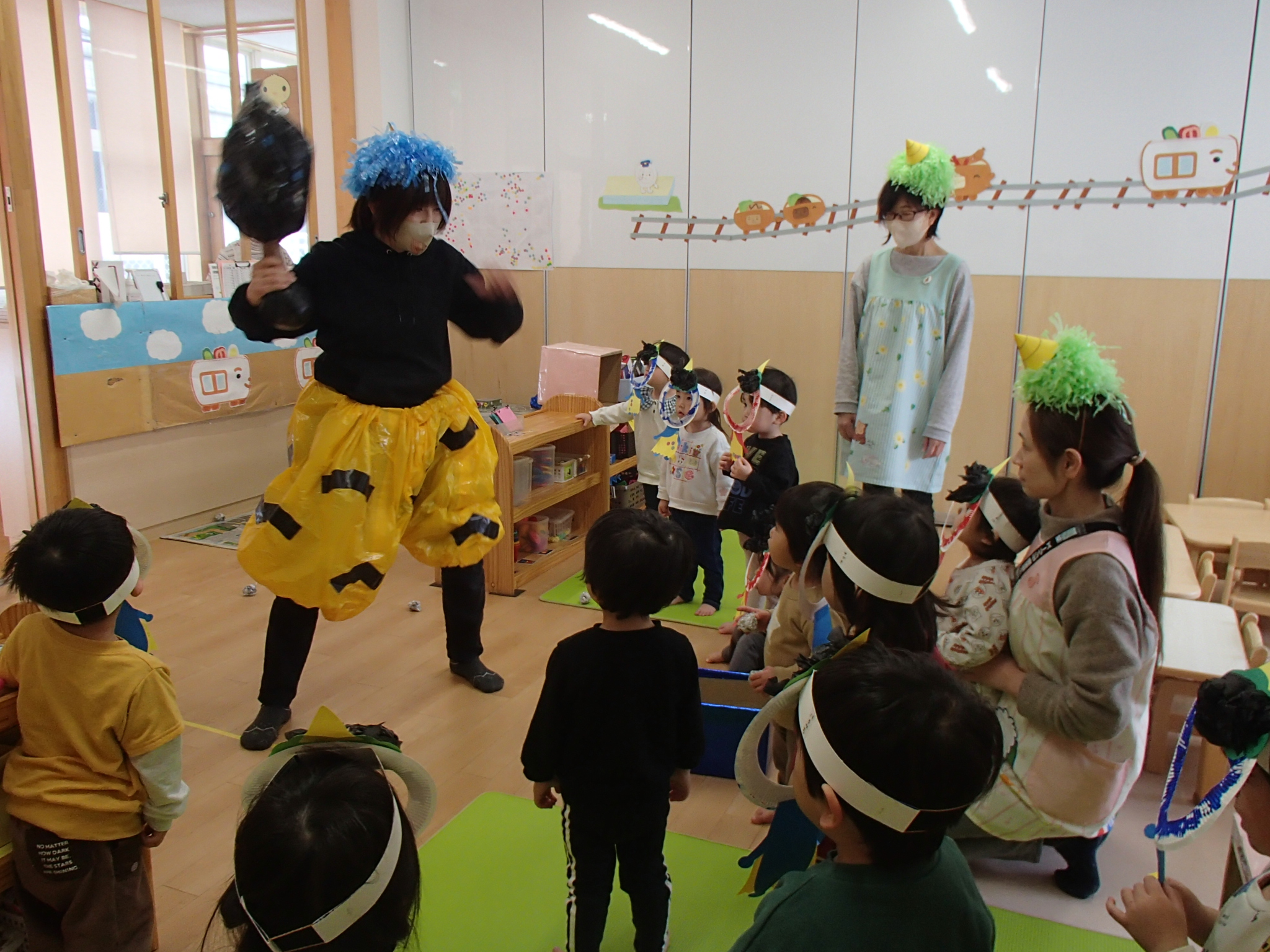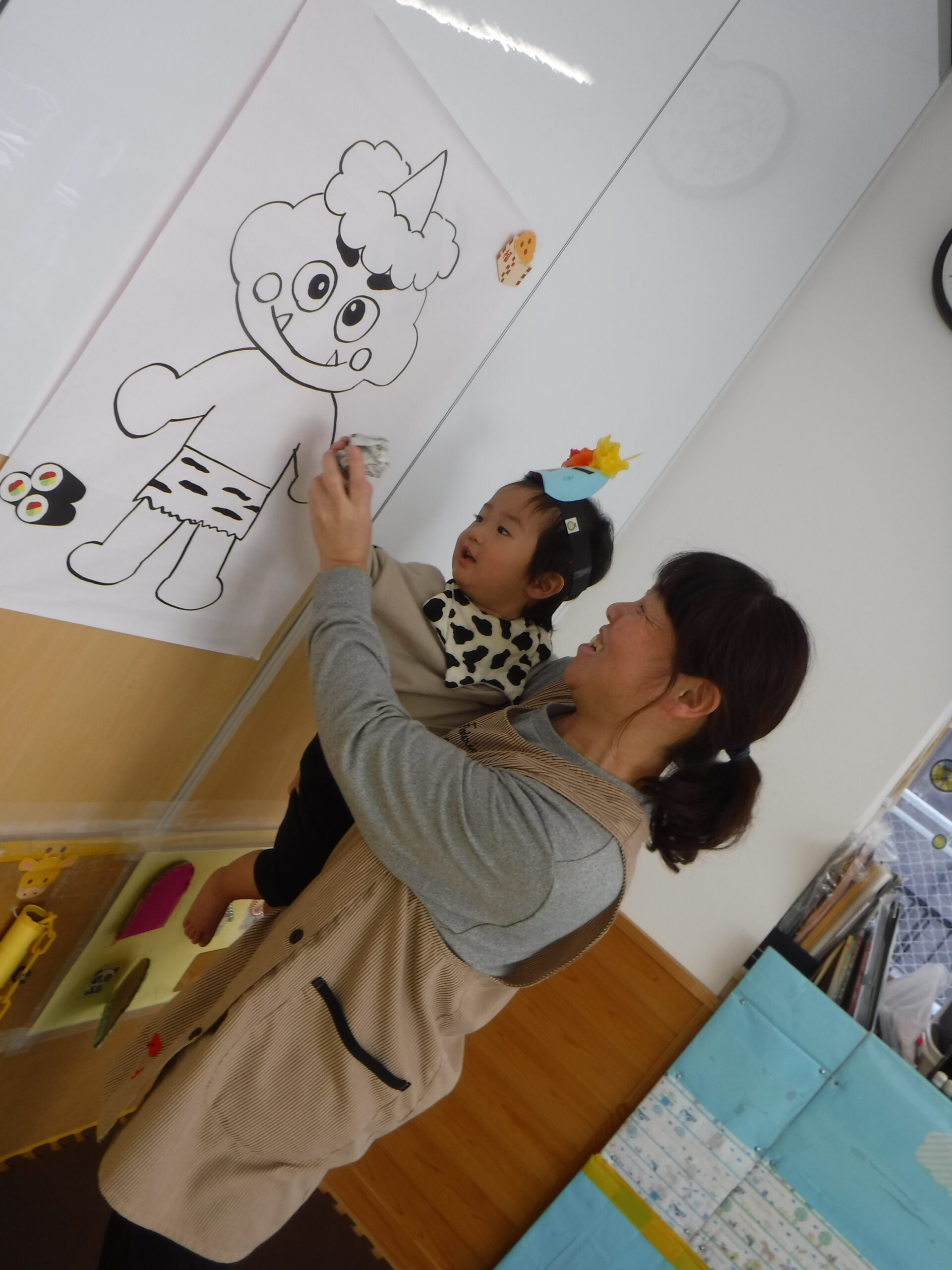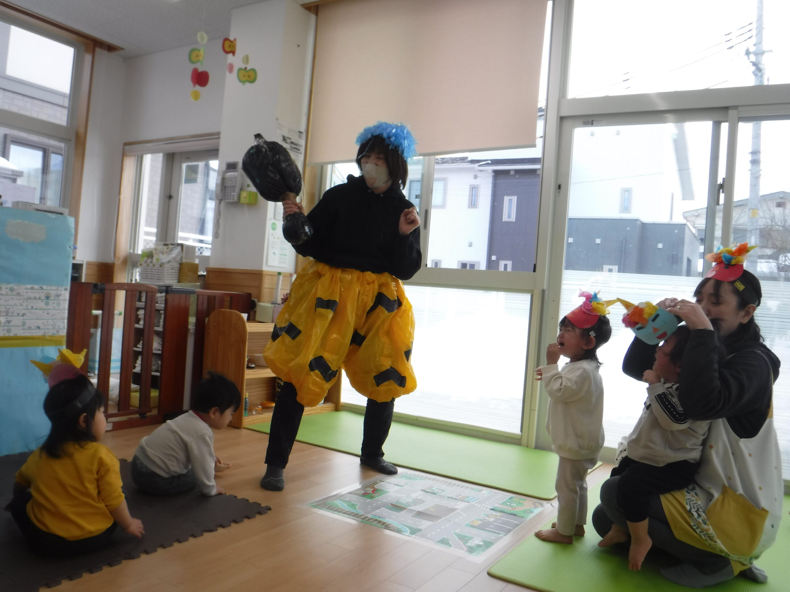 そんな子ども達のところに、ドシン!!ドシン!!と鬼がやってきました💦