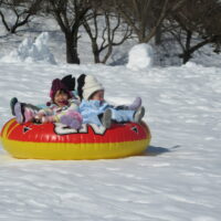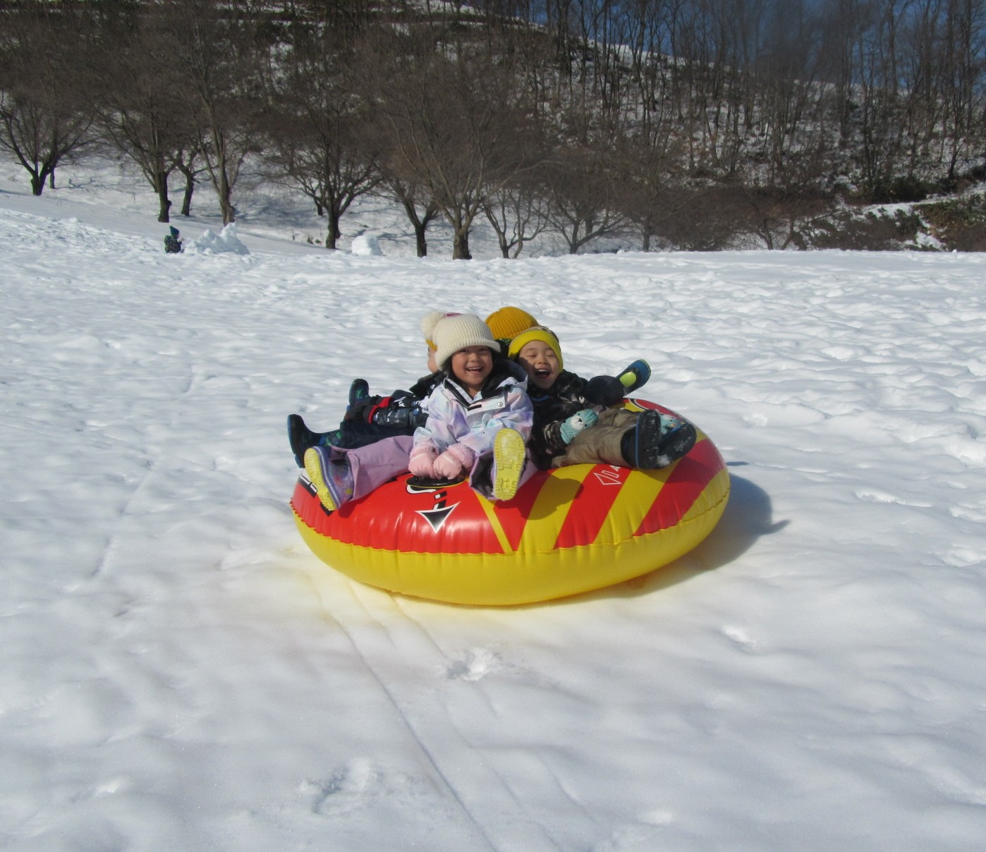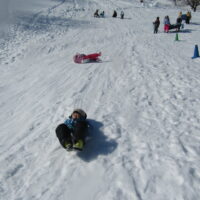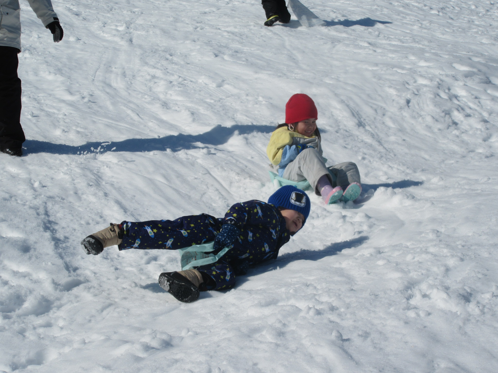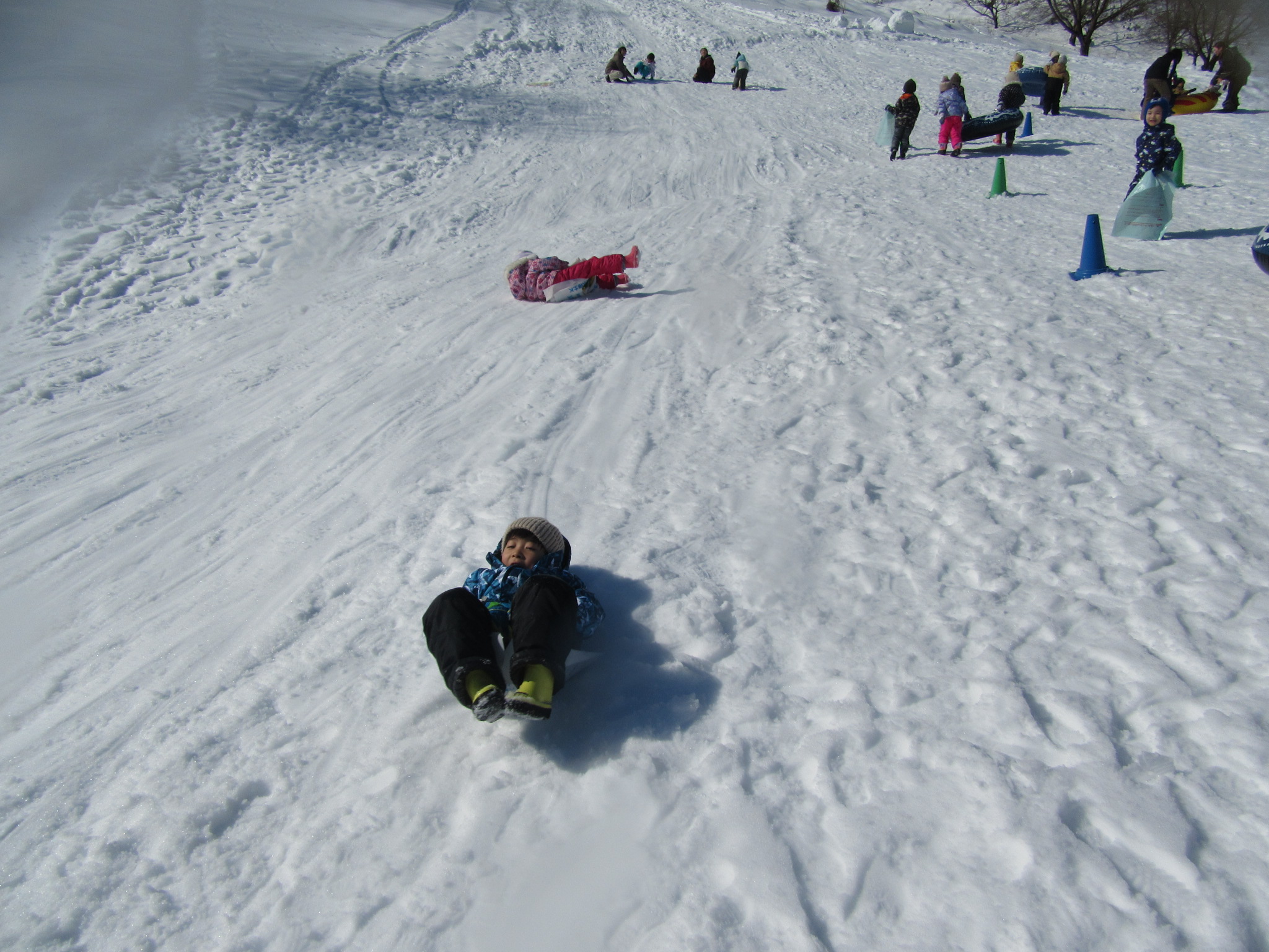 勢いよく坂を登ると、ビニールシートやチューブそり🛷で滑り、歓声をあげながら楽しみました。