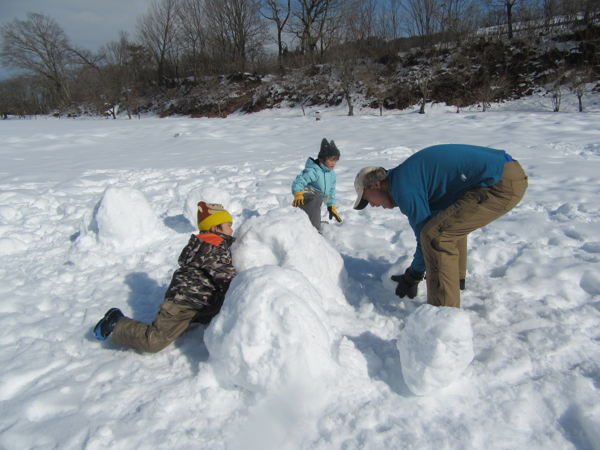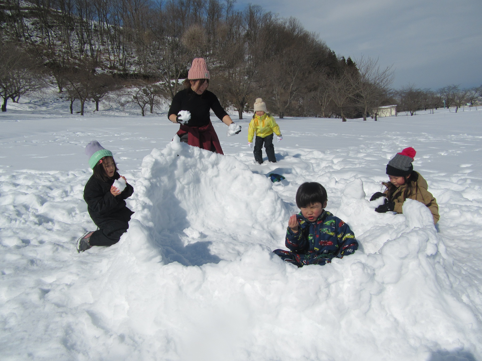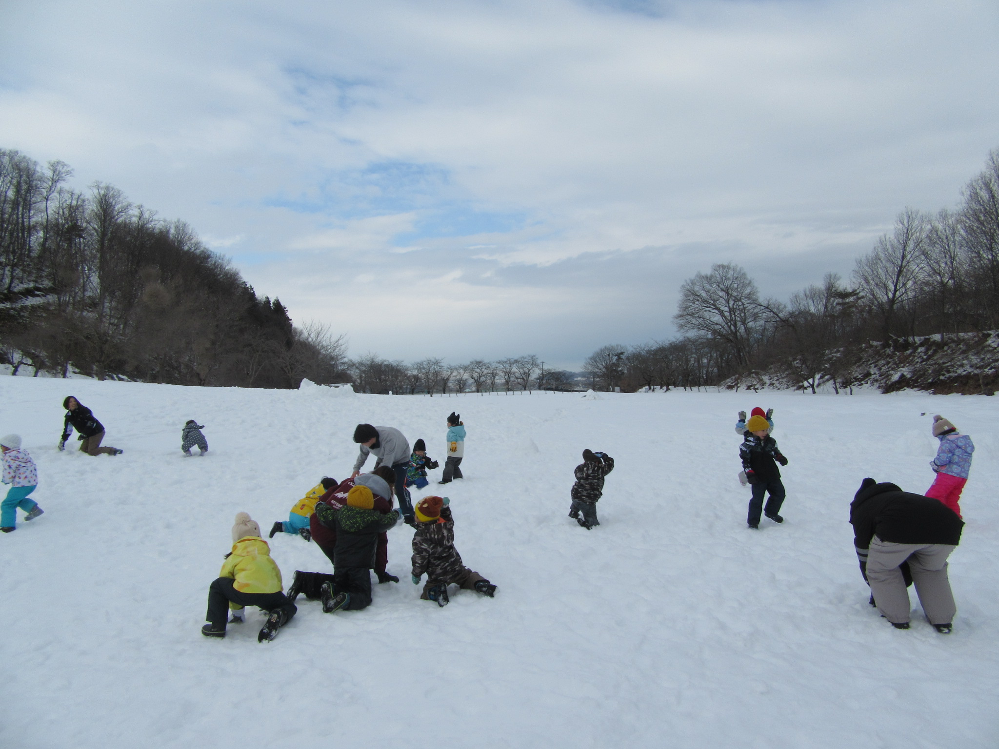 坂の下では、雪の壁を作り、お友達と雪合戦をしたり、大きな雪玉❄を作ったりしていましたよ