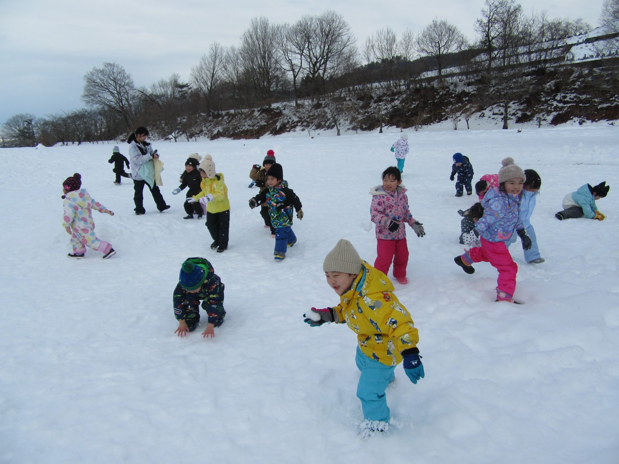 2月5日(木)、年中組さんが子どもの森に坂すべりに行ってきました。