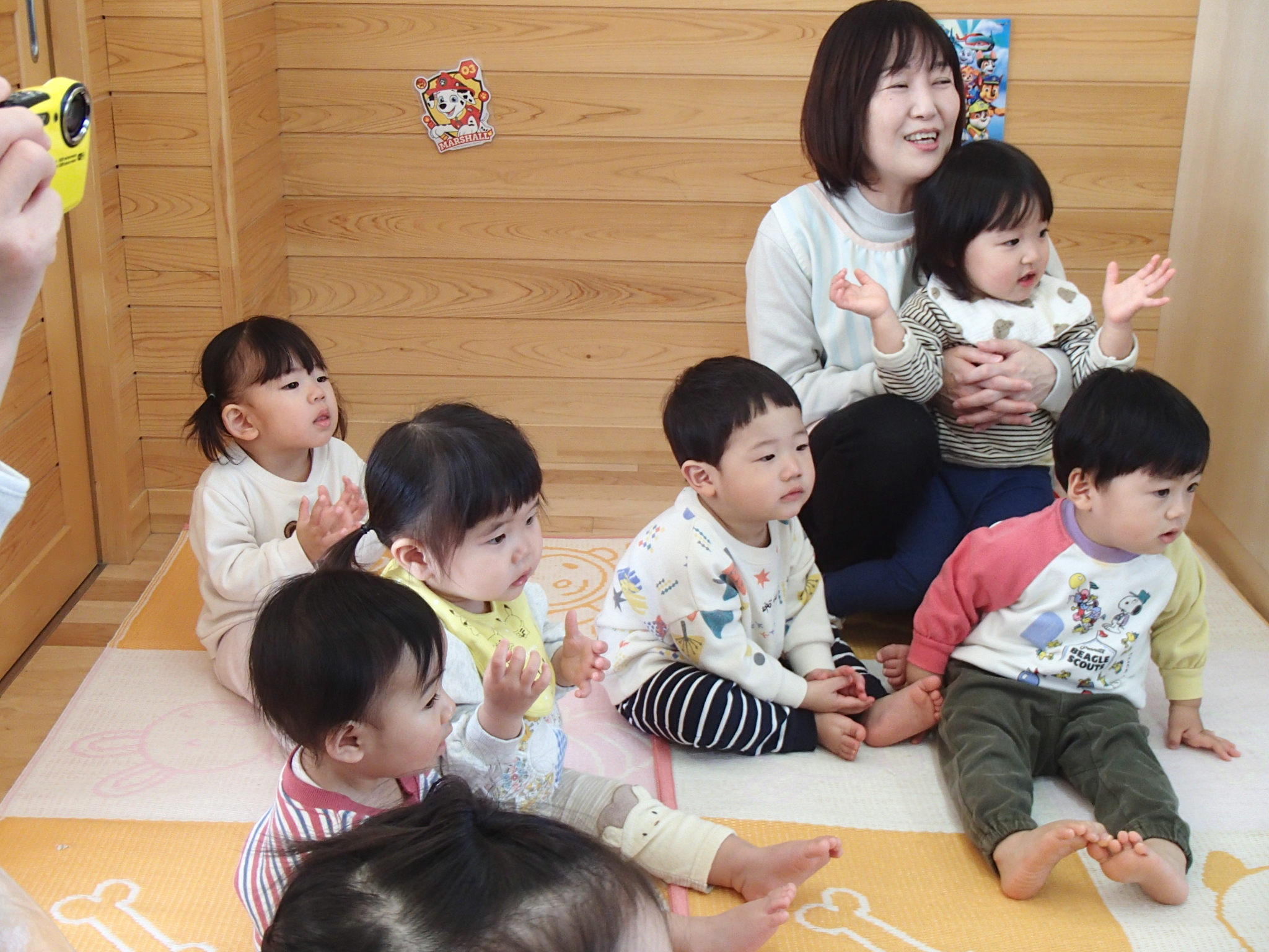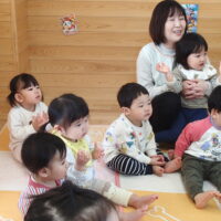 お集まりでは、みんなが大好きな“ミックスジュース”の手遊びをして、手をぐるぐる混ぜながら、元気いっぱいに参加する子ども達の姿がとってもかわいらしかったです♡