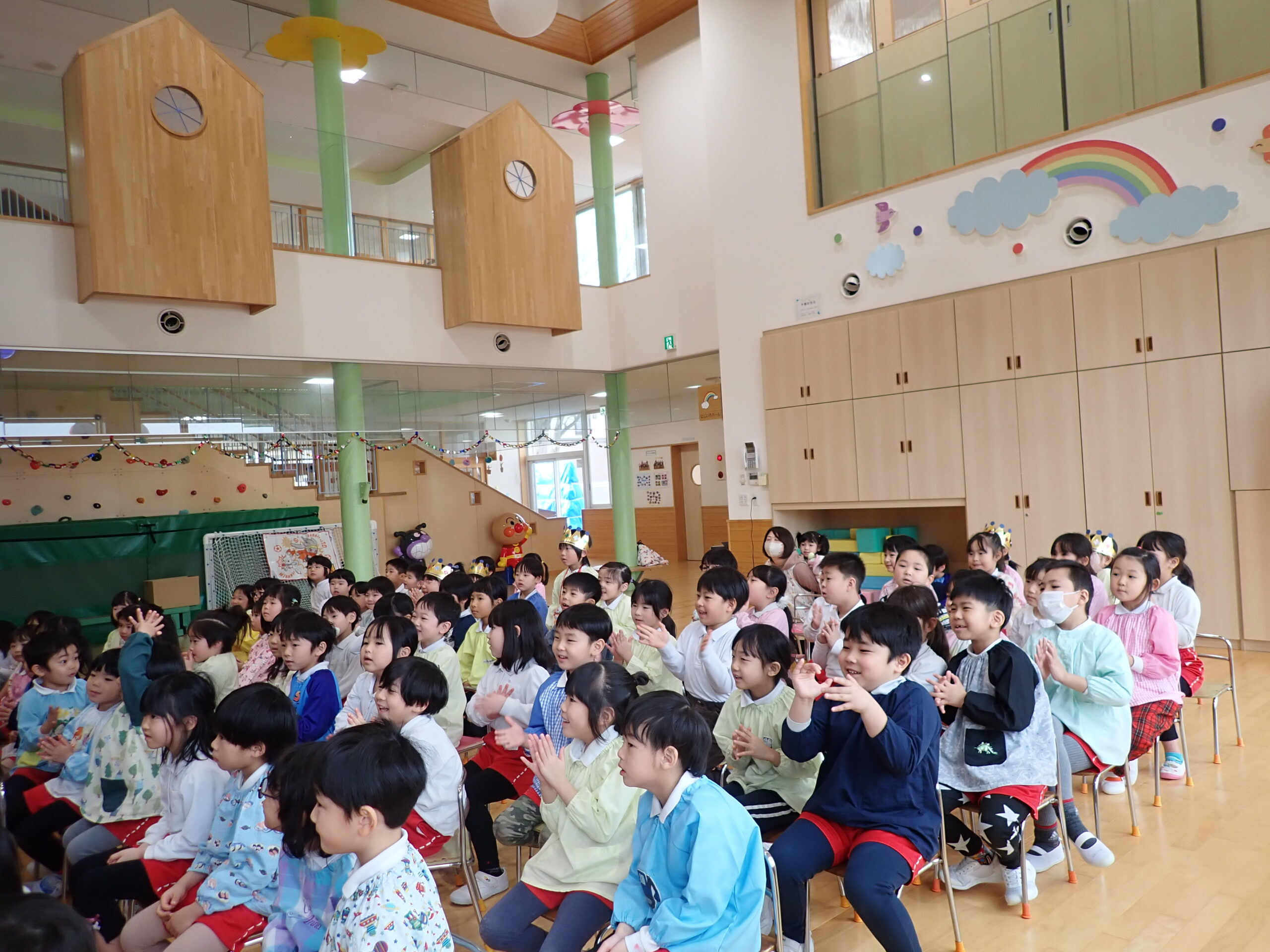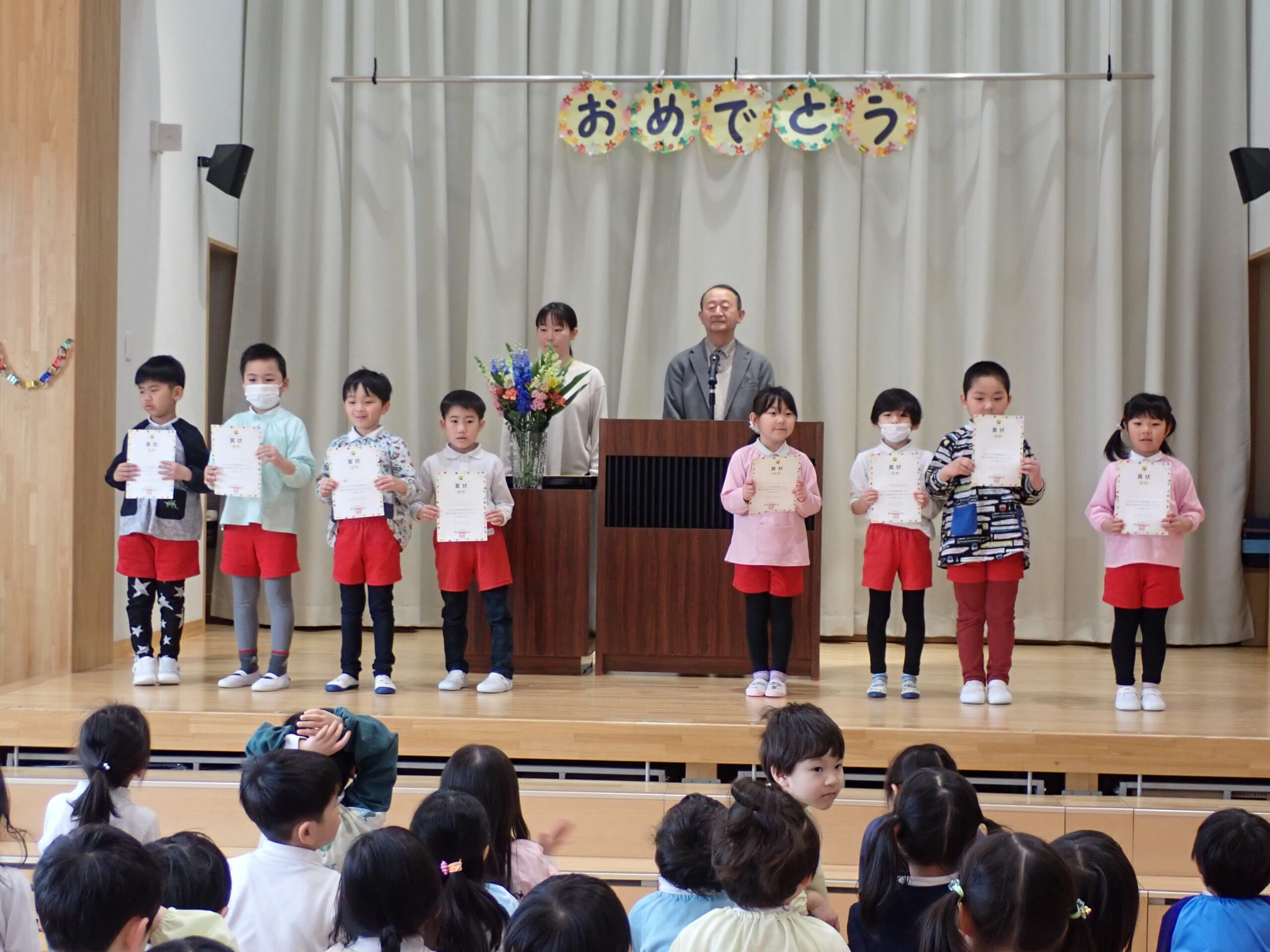 表彰式の後は、3月に生まれたお友達と2月のお誕生会でお休みだったお友達のお誕生会を行いました🎂