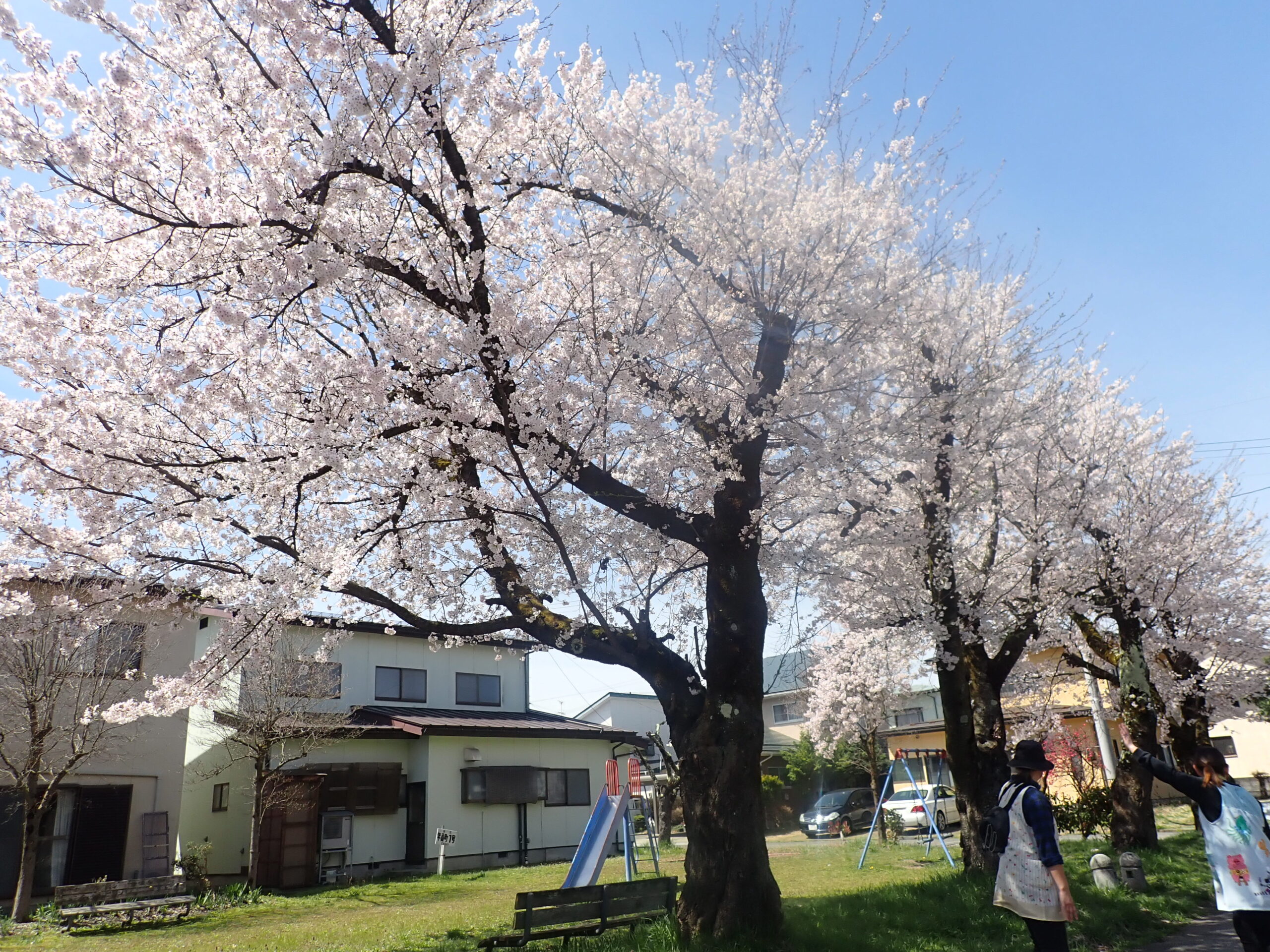 公園に着くと、満開の桜🌸が見えて「きれ~い!」と大喜び😆